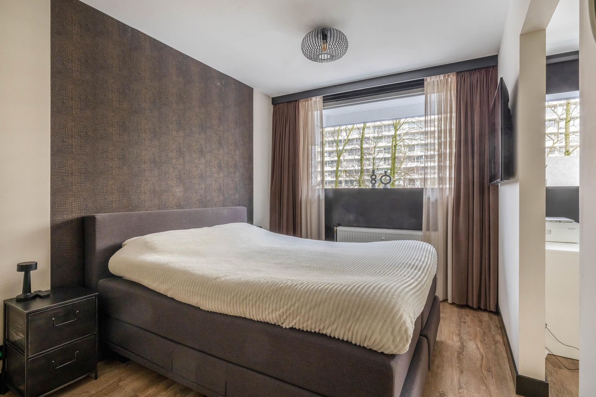 Entree met de meterkast en direct toegang tot de vernieuwde open keuken welke is voorzien van diverse inbouwapparatuur. Middels een ruim tussenportaal is er toegang tot de woonkamer, badkamer, 2 slaapkamers en een vaste kast. De masterslaapkamer ligt aan de voorzijde van het complex en is voorzien van een ruime inloopkast. Het is eventueel mogelijk om hier een 3e slaapkamer te realiseren. De badkamer is centraal gelegen en is volledig betegeld. Deze is vernieuwd in 2023 en is voorzien van een ruime inloopdouche, een dubbele wastafel met meubel en de opstelling voor de wasmachine en droger. Hier kom je dus niets tekort. Aan de achterzijde van het complex ligt de 2e slaapkamer en de woonkamer. Bij het betreden van de woonkamer valt direct het vrije zicht op! Het appartement grenst namelijk aan de binnentuin van het complex. Gegarandeerd dat dit nooit gaat vervelen. Vanuit de woonkamer is er toegang tot het balkon. Het balkon is gelegen op het zuidwesten, wat het mogelijk maakt om de hele middag en avond van de zon te kunnen genieten.