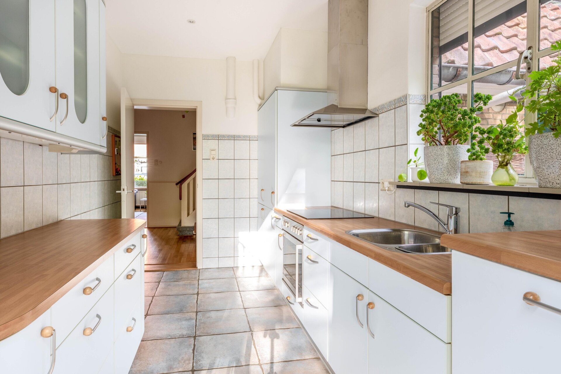 Via de ruime entree met hal, toilet en trapopgang betreedt u de woning. De sfeervolle woonkamer met hoge plafonds (2.82 m) en veel lichtinval biedt een fijne plek om te ontspannen. Dit een fijne woonkamer waar u kan ontspannen en in de winter heerlijk kan genieten van het haardvuur. Aan de achterzijde vindt u de eetkamer met zicht op de tuin en aansluitend de gesloten keuken. Vanuit hier heeft u via de tuin toegang tot de bergingen en de inpandige garage – ideaal voor extra opslag of een klusruimte.