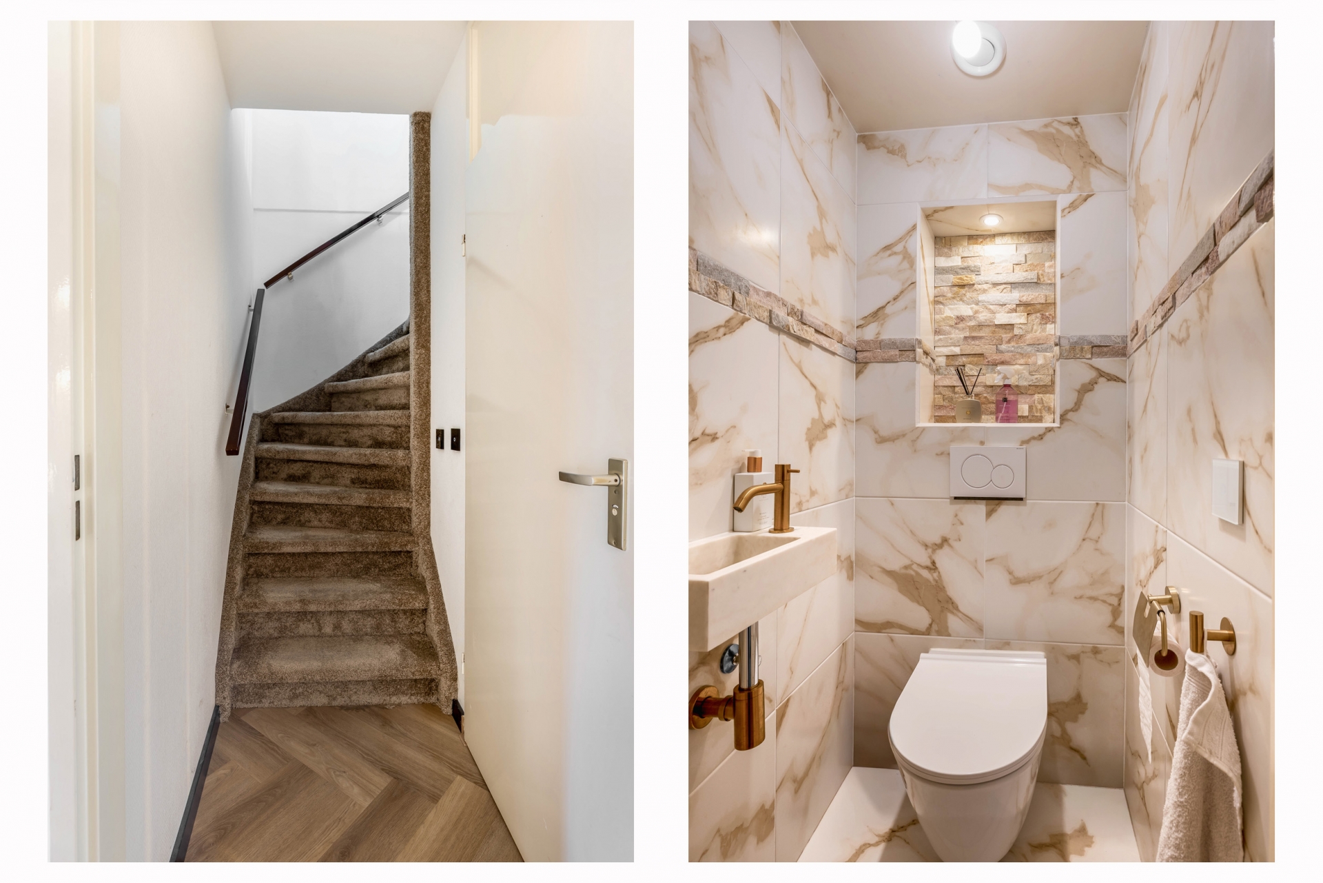 Bij binnenkomst valt het meteen op: dit huis is met zorg en smaak gemoderniseerd. De benedenverdieping is voorzien van een fraaie visgraatvloer met vloerverwarming, wat niet alleen comfortabel is, maar ook stijlvol oogt. De keuken is deels vernieuwd en deels gewrapt in een donkere look en het kookeiland met bar is een echte blikvanger! Een gezellige plek voor ontbijt of borrel. De woonkamer is licht, ruim en via de achterdeur stap je zó de tuin in. Ook het toilet op de begane grond is vernieuwd, net als de strak afgewerkte wanden.