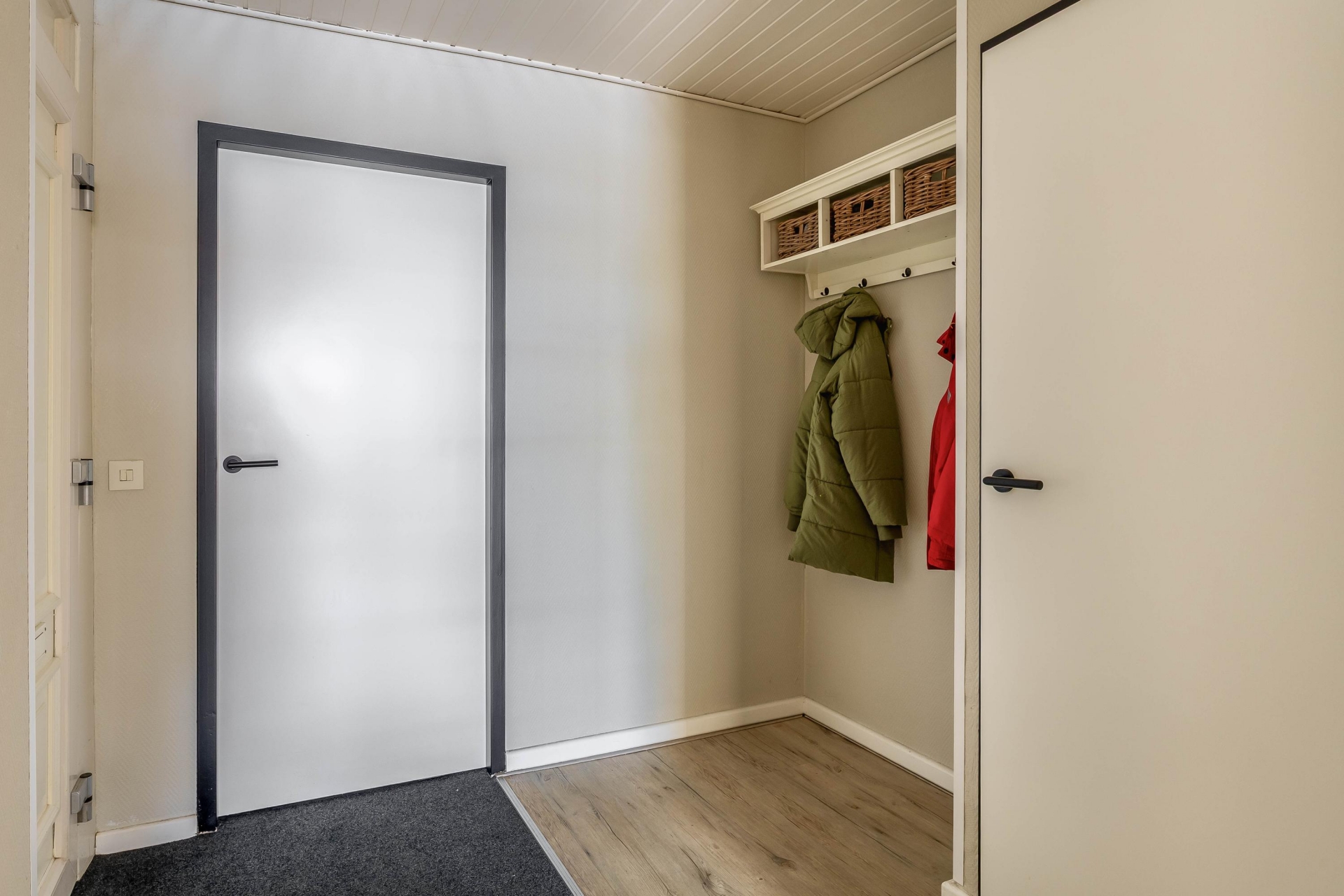 De ruime voortuin biedt toegang tot de woning. Via de entree bereikt u alle vertrekken. Hier bevindt zich onder andere de berging met wasmachineaansluiting en voldoende bergruimte. Het toilet is voorzien van een toilet en fonteintje.