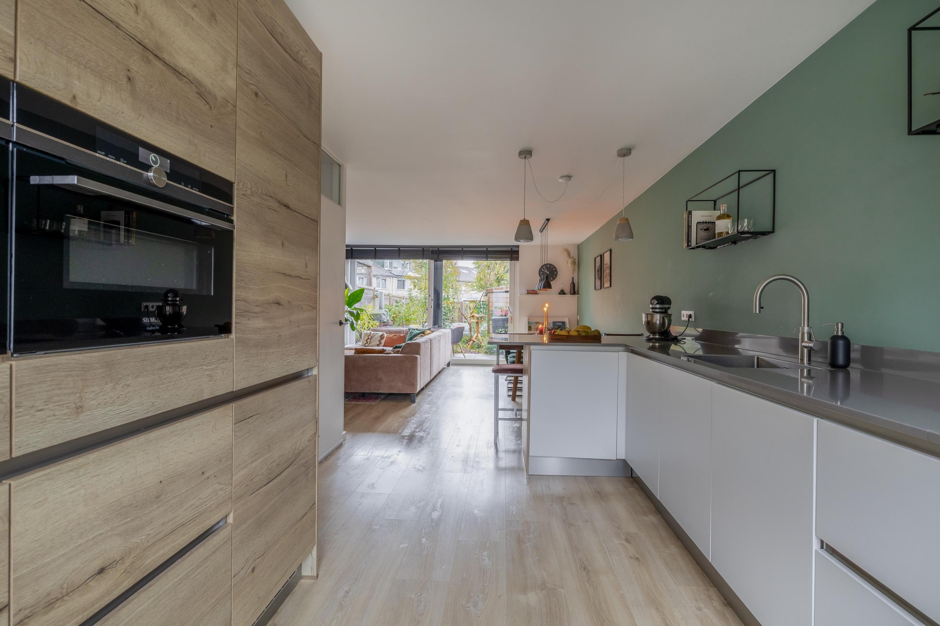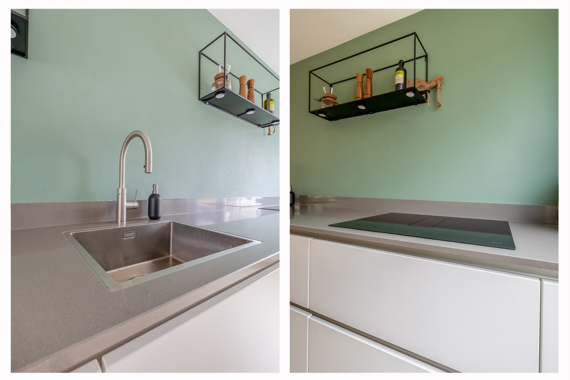 Bij binnenkomst valt direct op hoe ruim en licht de begane grond is. De woonkamer is tuingericht en biedt via grote raampartijen direct contact met het groen van buiten. Hier is ruimte voor een royale zithoek én een grote eettafel, ideaal voor gezinnen of als je graag gasten ontvangt. De moderne keuken aan de voorzijde is strak ingericht en voorzien van alle gemakken: een inductiekookplaat met geïntegreerde afzuigfunctie , oven en combi-oven, vaatwasser, koel-/vriescombinatie, quooker, veel werkruimte en volop kastruimte. De combinatie van natuurlijke kleuren, hoogwaardig materiaalgebruik en slimme indeling maken dit een fijne plek voor elke thuiskok.