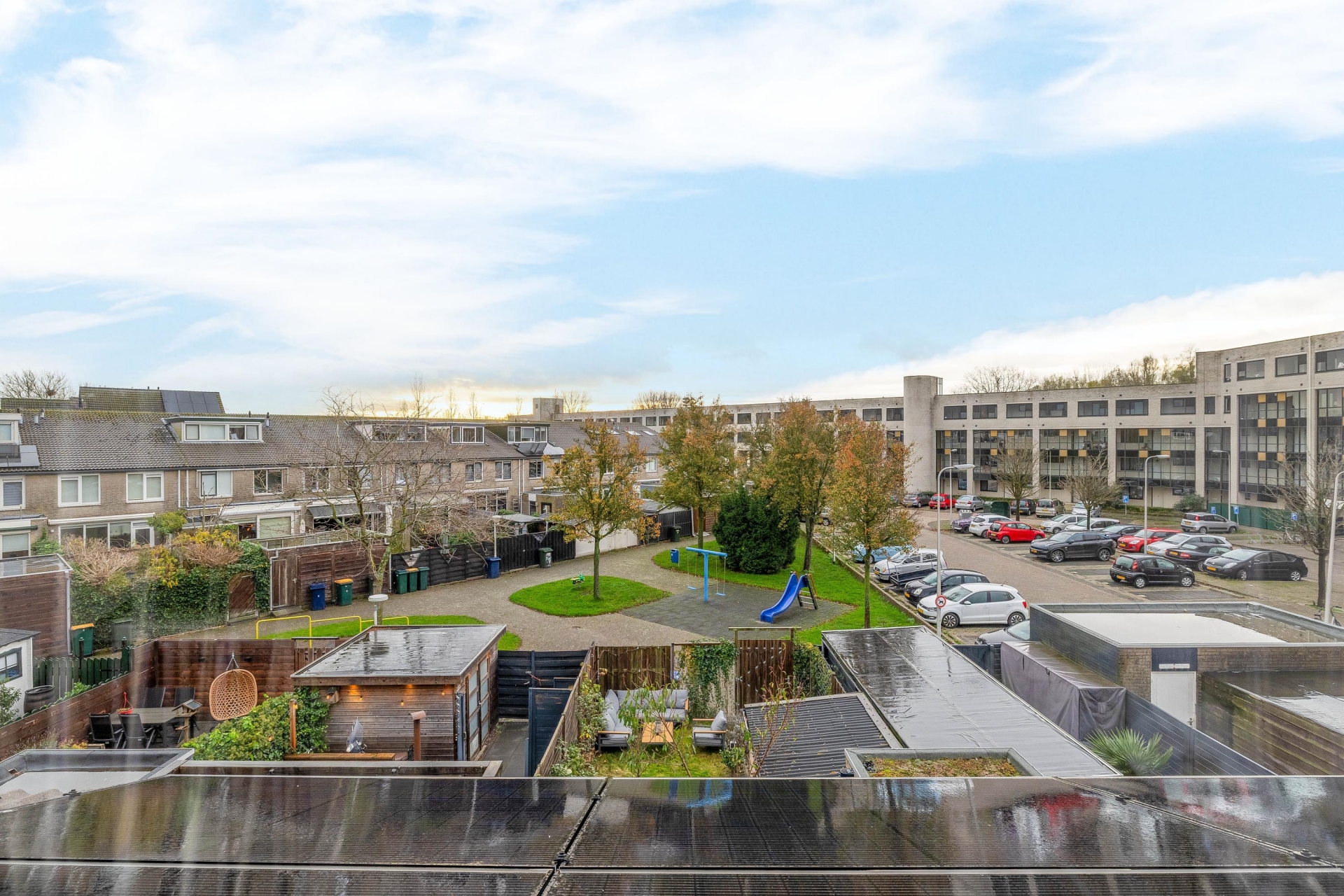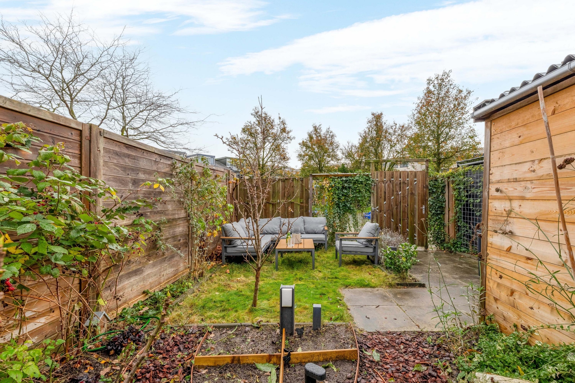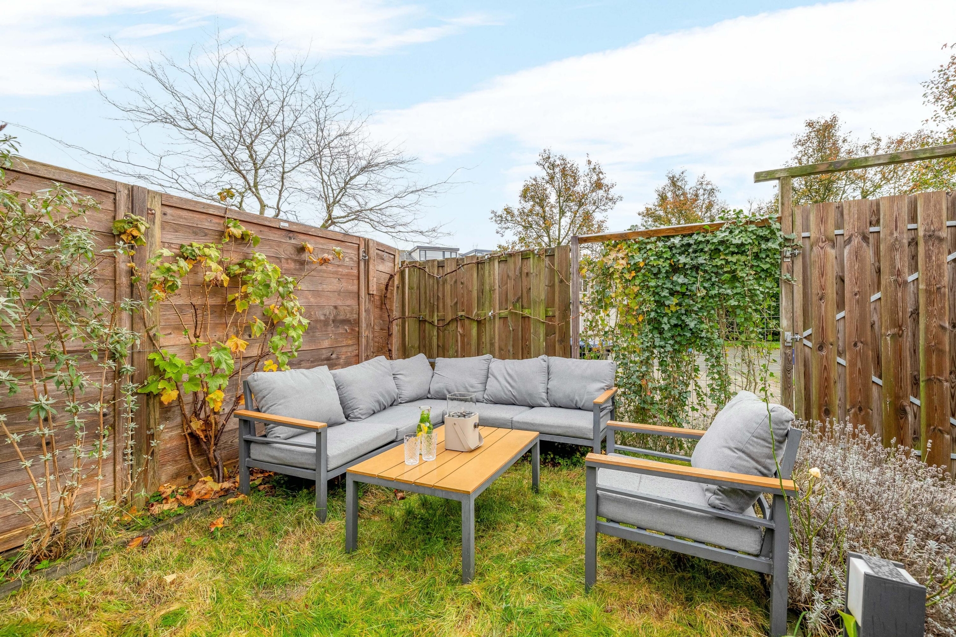 De tuin ligt op het zuidoosten, wat betekent: van ’s ochtends tot laat in de middag zon! Dankzij de slimme indeling met borders, bestrating en zitgedeelte is het hier heerlijk ontspannen. Naast de aangebouwde stenen berging is er nog een extra houten overkapping in de tuin. Ideaal om wat extra spullen in te stallen. Vanuit de tuin loop je zo naar het speelplaatsje aan de achterzijde. Hier is ook voldoende parkeergelegenheid (net als aan de voorzijde van de woning overigens).