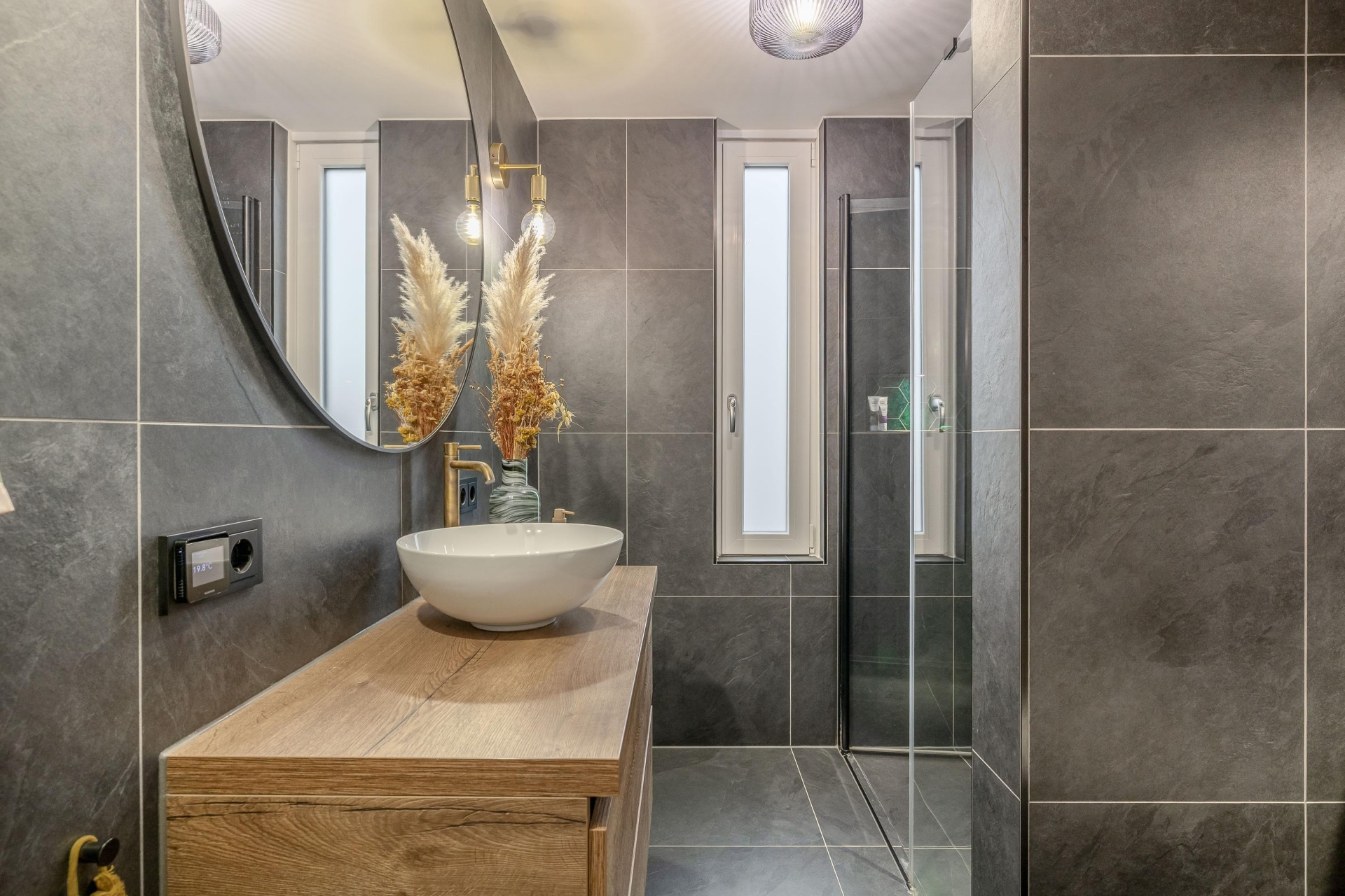 Op de verdiepingen vind je in totaal vier slaapkamers, verdeeld over twee etages. De grootste kamer is ideaal als master bedroom, terwijl de overige kamers gebruikt kunnen worden als kinderkamer, werkkamer of logeerkamer. De badkamer is strak uitgevoerd met moderne tegels, een inloopdouche (regendouche) en stijlvol wastafelmeubel. Daarnaast voorzien van elektrische vloerverwarming. Alles is keurig onderhouden en volledig up-to-date.