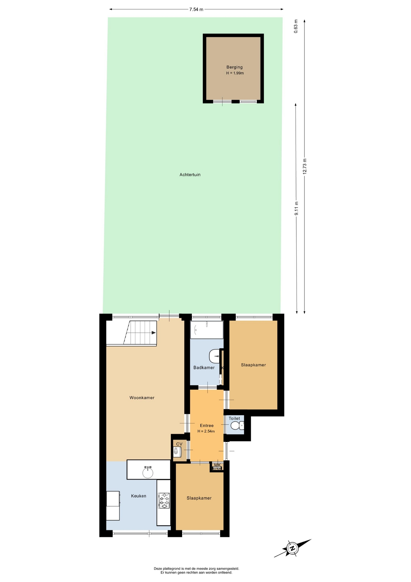 - Oppervlakte hoofdtuin 96m2