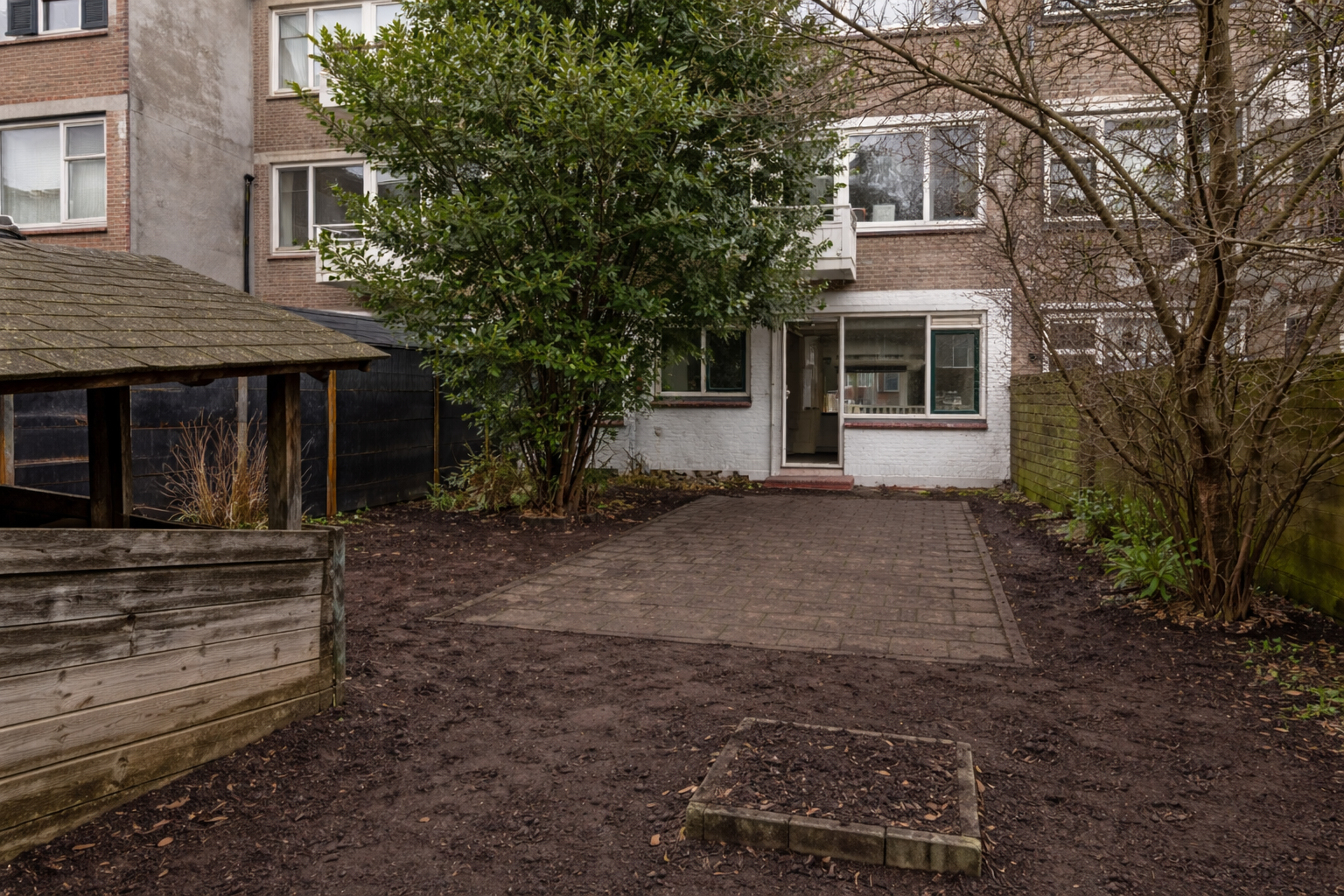 Achter de woning ligt een royale achtertuin op het westen. Dat betekent volop middag- en avondzon, ideaal om na werk nog even buiten te zitten of in het weekend te genieten van lange avonden. De tuin is groen en biedt veel privacy. Wel is dit een tuin die opgeknapt mag worden, wat meteen kansen biedt: een nieuwe indeling, een terras, groen naar eigen smaak of misschien zelfs een fijne loungehoek met veranda. Voor starters die hun huis graag persoonlijk maken, is dit een mooie kans om hier echt iets eigens van te maken.