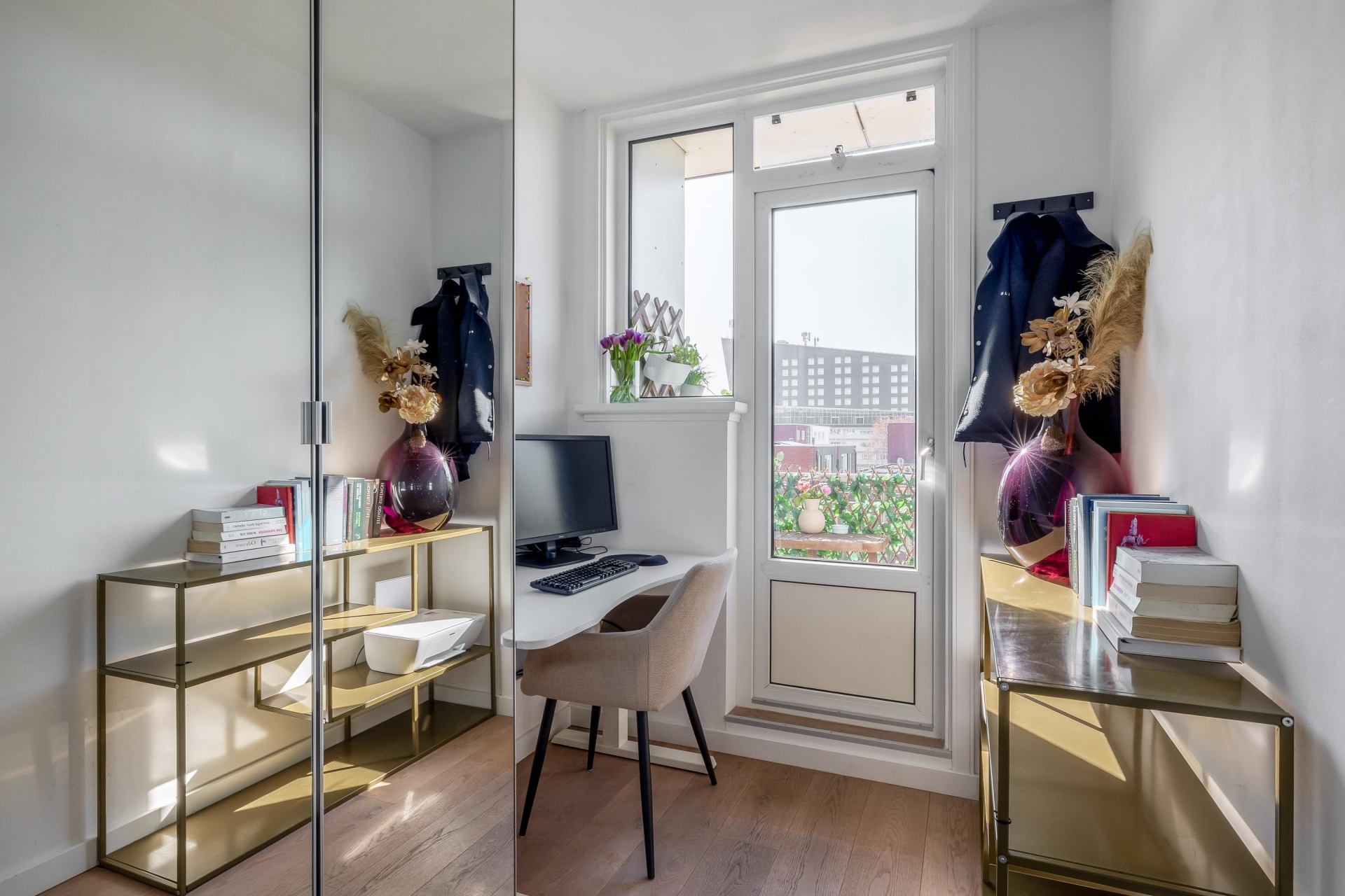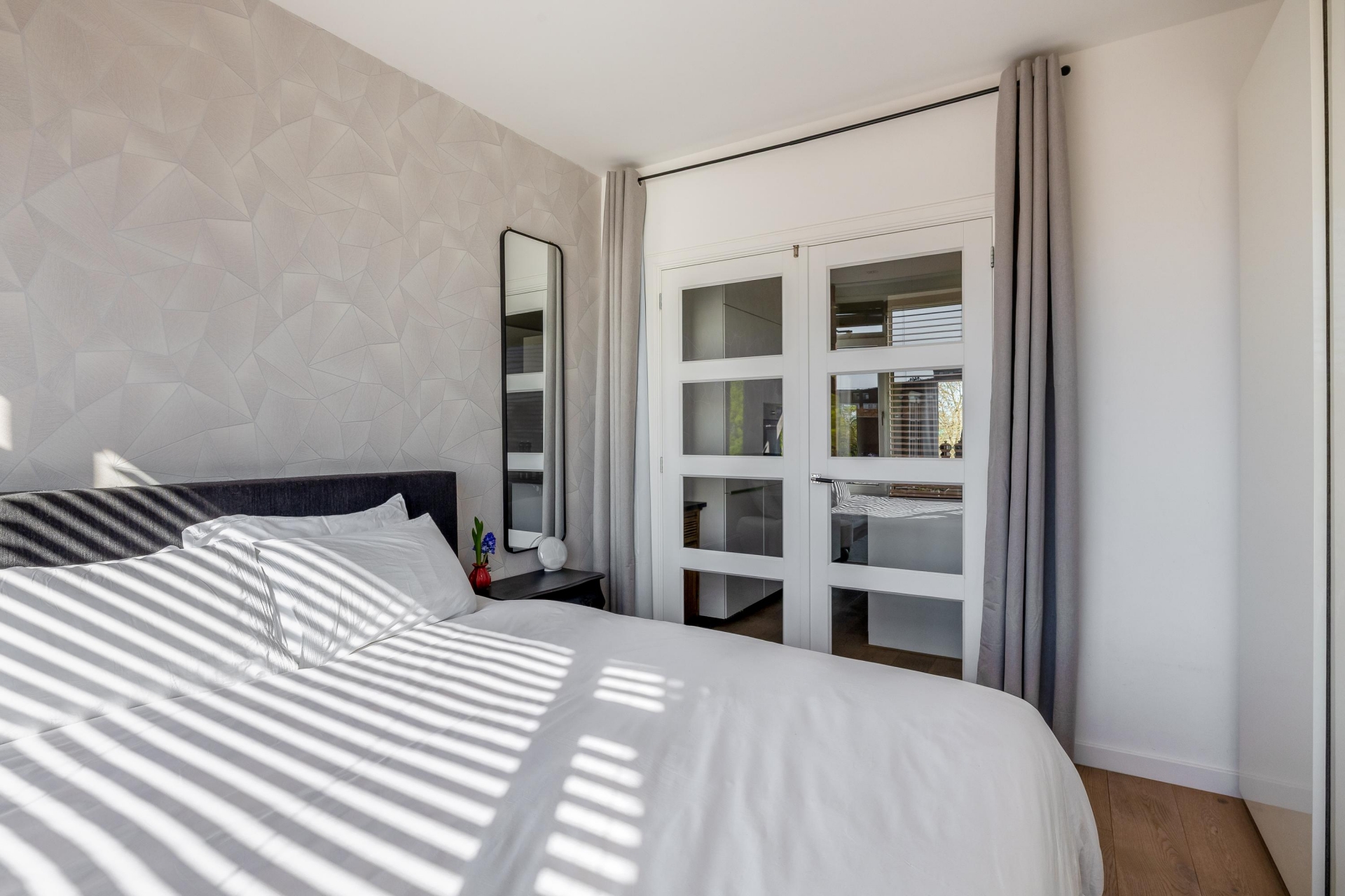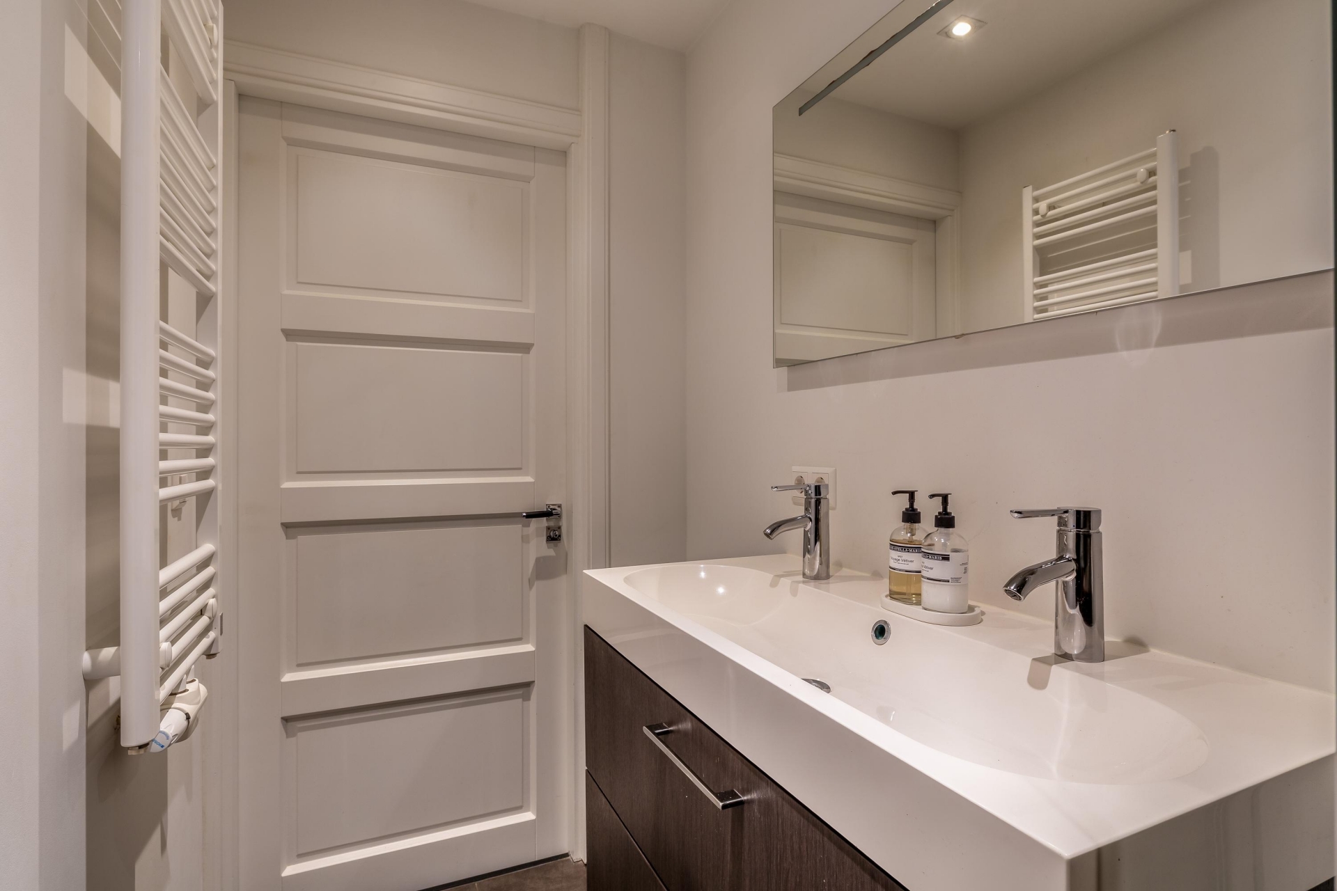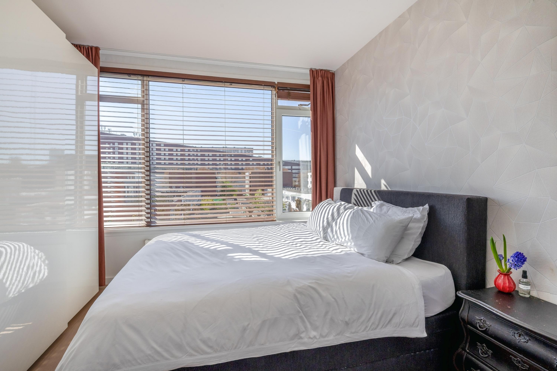 Het appartement beschikt over twee slaapkamers, wat het extra interessant maakt voor starters die nét wat meer ruimte zoeken. De grootste slaapkamer ligt aan de rustige zijde en biedt voldoende plek voor een tweepersoonsbed en een kast. De tweede kamer is perfect als logeerkamer, werkruimte of kledingkamer. De badkamer is in 2017 vernieuwd en heeft een moderne, verzorgde uitstraling. Je vindt hier een ruime inloopdouche en een dubbele wastafel met meubel. Alles is strak afgewerkt en praktisch ingedeeld. Het toilet is separaat, wat altijd prettig is. De indeling is efficiënt en logisch, waardoor het appartement groter aanvoelt dan de vierkante meters doen vermoeden.