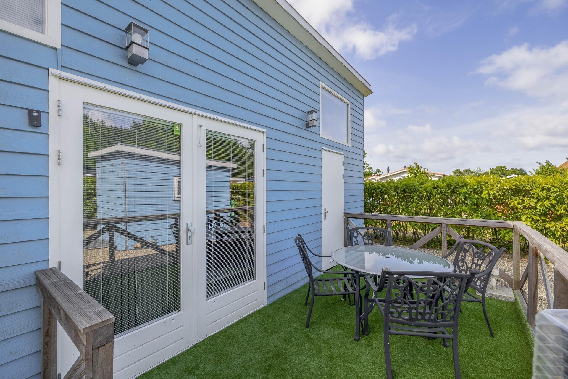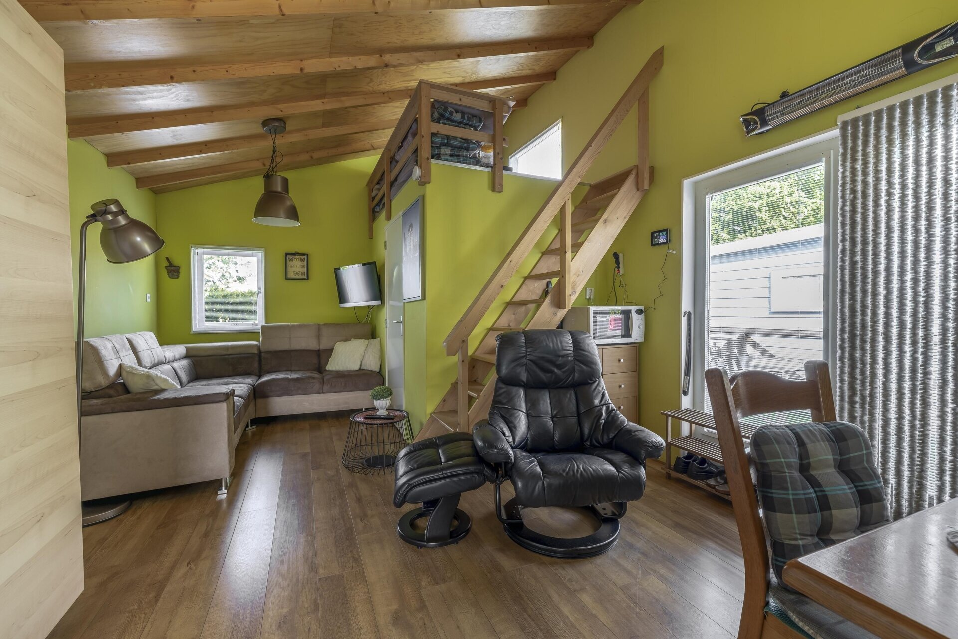 Wat direct opvalt bij aankomst is het vrijstaande karakter van dit blauwe vakantiehuisje op het recreatiepark Molecaten. Met een woonoppervlakte van ca. 48 m², een perceel van 212 m² én een eigen schuur biedt het verrassend veel ruimte. Binnen wacht een gezellige leefruimte met open keuken, zithoek, eethoek én vide. Dankzij de hoge plafonds en ramen rondom voelt het huis licht en luchtig aan.