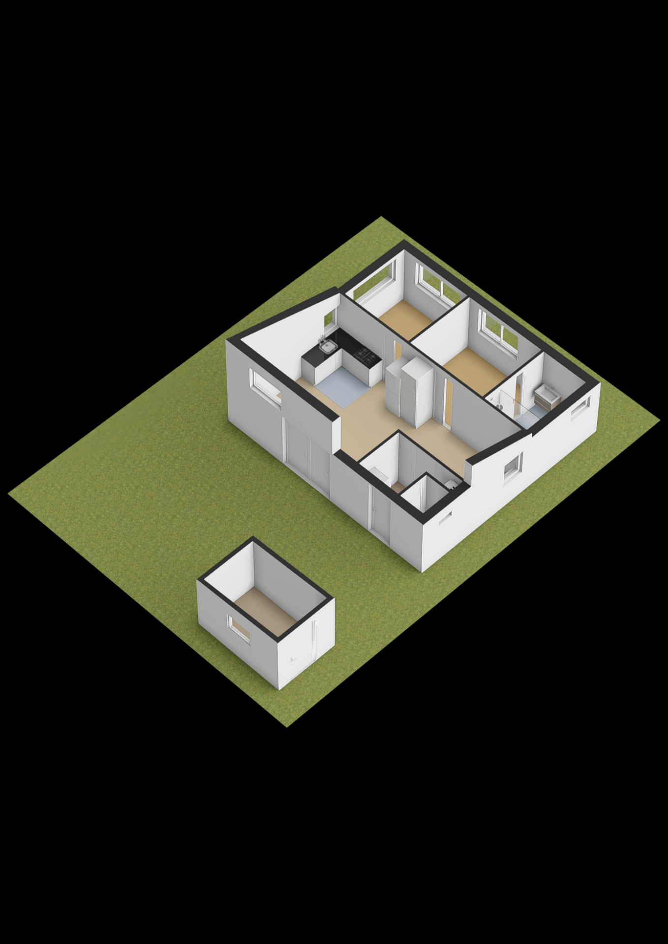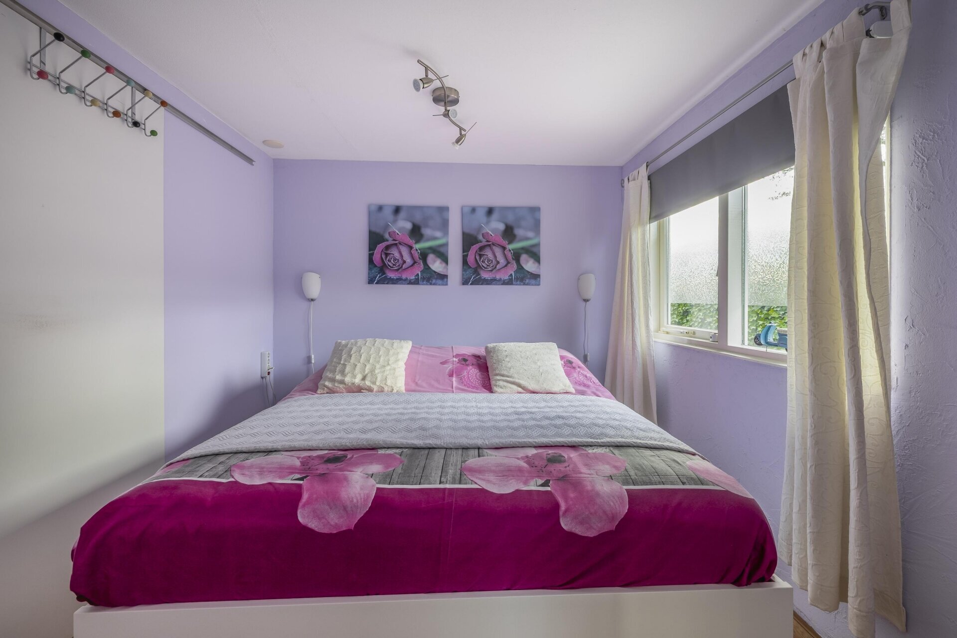 De woning beschikt over twee slaapkamers. De ouderslaapkamer is royaal en voorzien van een eigen badkamer met inloopdouche, wastafel en toilet – ideaal voor comfort en privacy. De tweede slaapkamer is ingericht als logeerkamer met twee bedden. Daarnaast is er een praktische bijkeuken met wasmachine, droger en een tweede toilet voor gasten. Boven de leefruimte vind je een vide – perfect als extra opbergruimte, extra slaapplek of speelhoek.