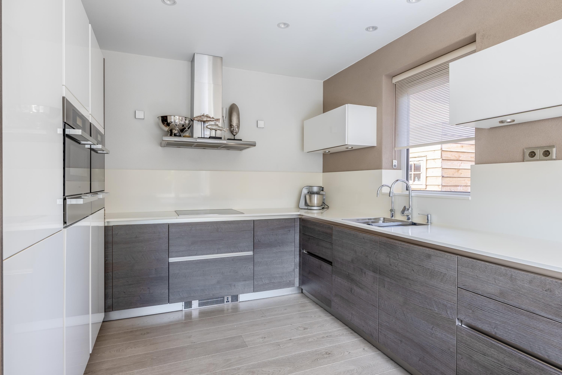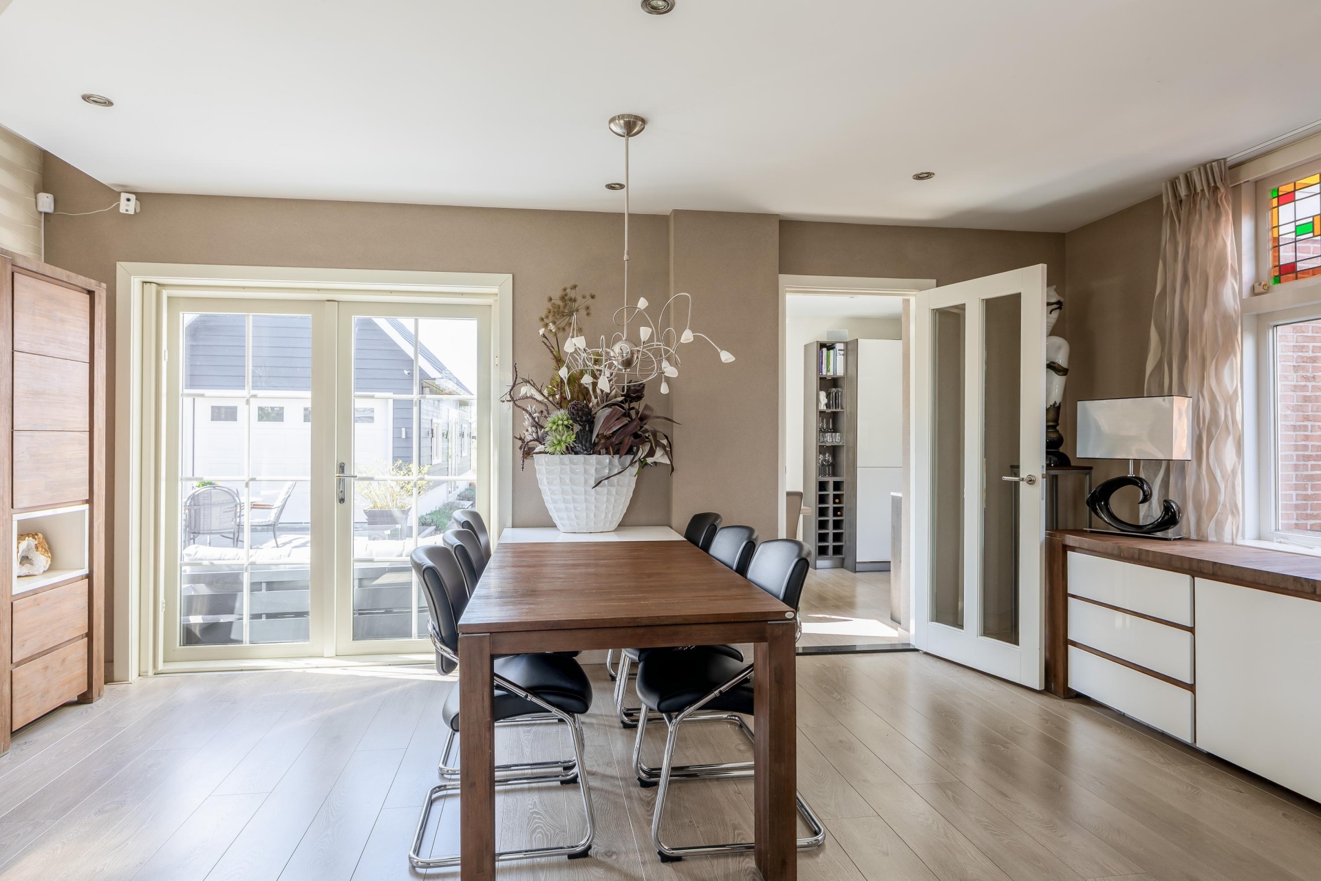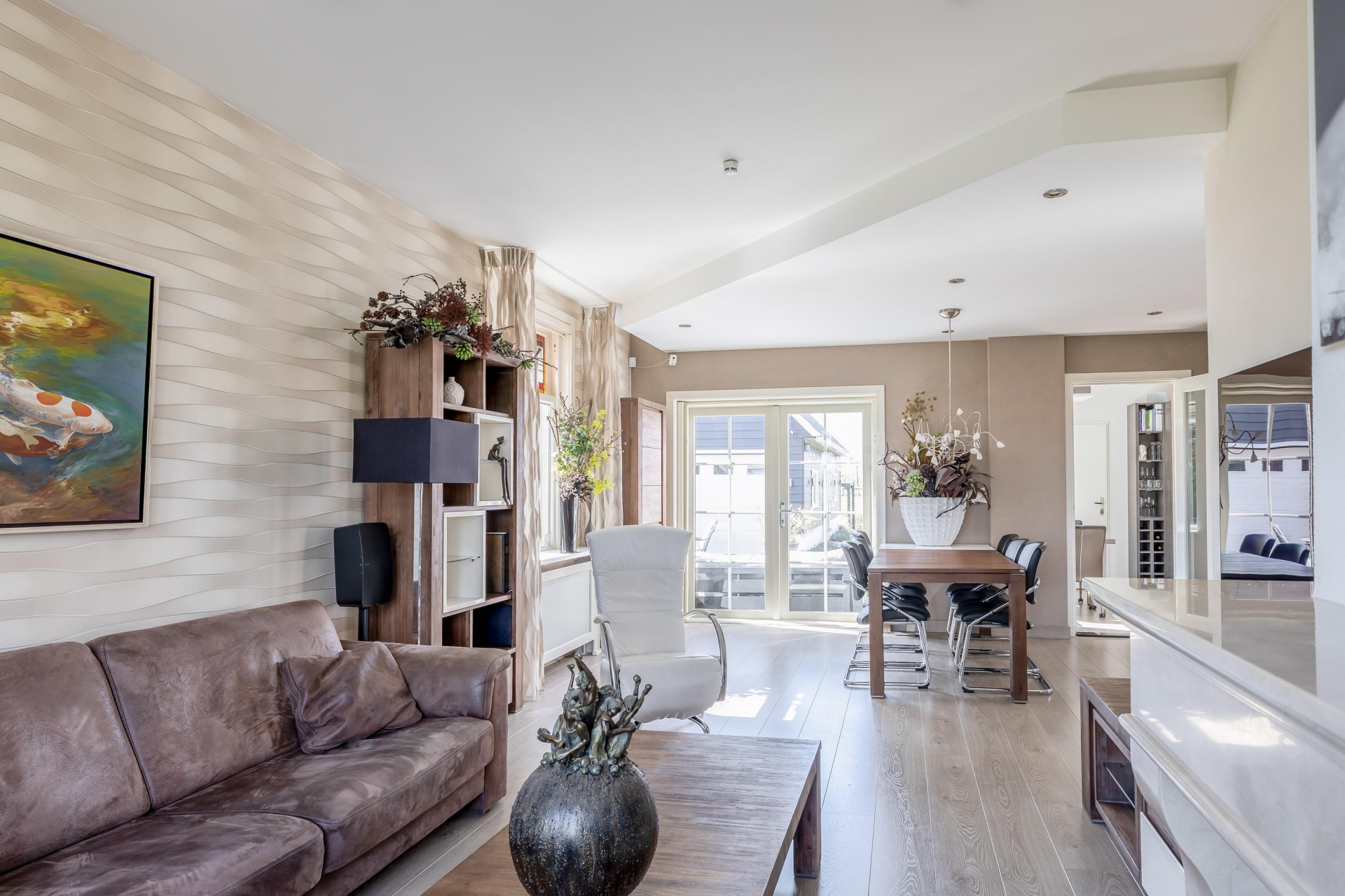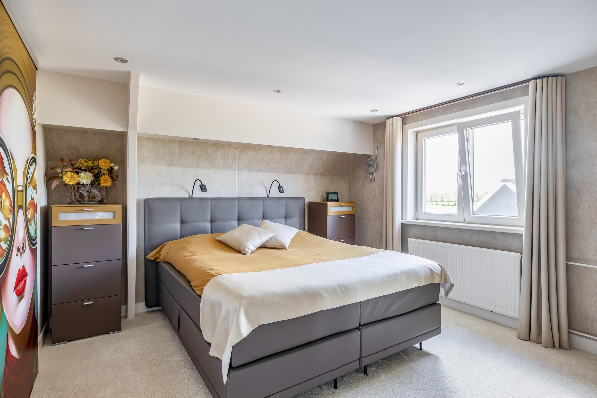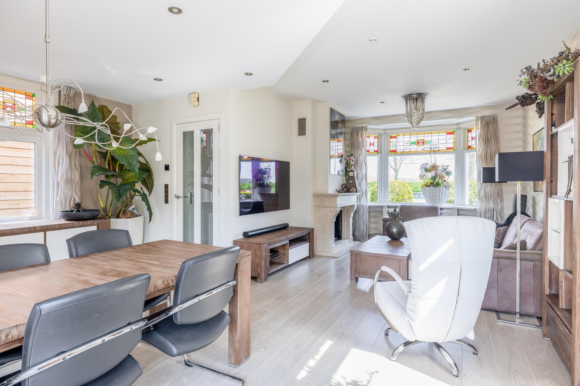 Bij binnenkomst valt direct de prettige lichtinval op. De leefruimte is royaal opgezet en heel sfeervol met een erker met glas-in-lood ramen, een houtkachel met marmeren schouw en er is veel lichtinval. Dankzij de grote raampartijen heb je vanuit de woonkamer een prachtig zicht op de tuin en het water daarachter. Dat zorgt voor een fijne, open sfeer in huis. De keuken sluit hier mooi op aan en is strak afgewerkt. Met moderne Miele inbouwapparatuur en een praktische indeling heb je hier alles binnen handbereik. In de aanbouw achter de woning is naast de keuken een ruime badkamer aanwezig, een separaat toilet en een handige kast met wasmachineaansluiting.
