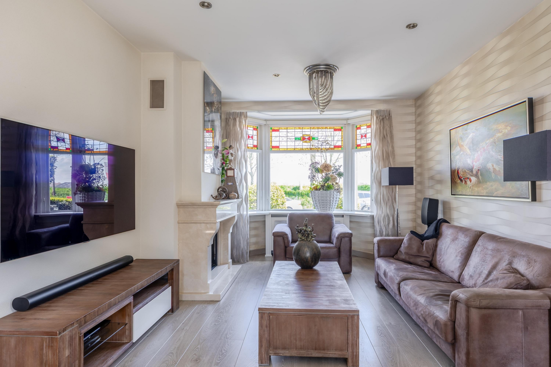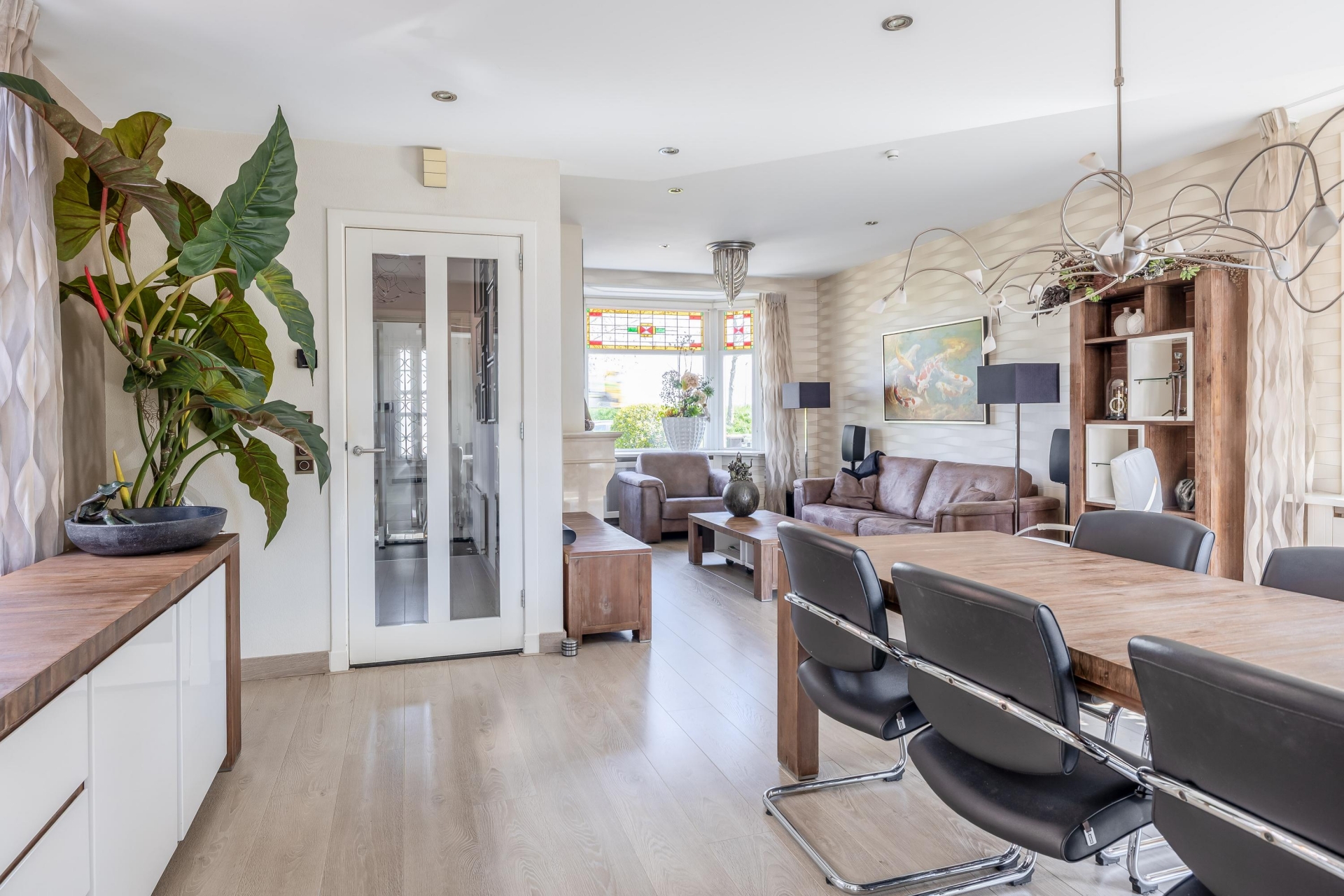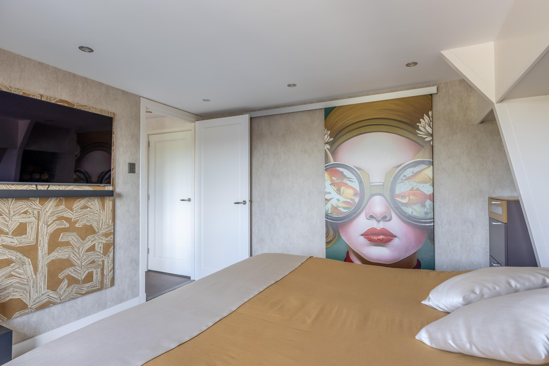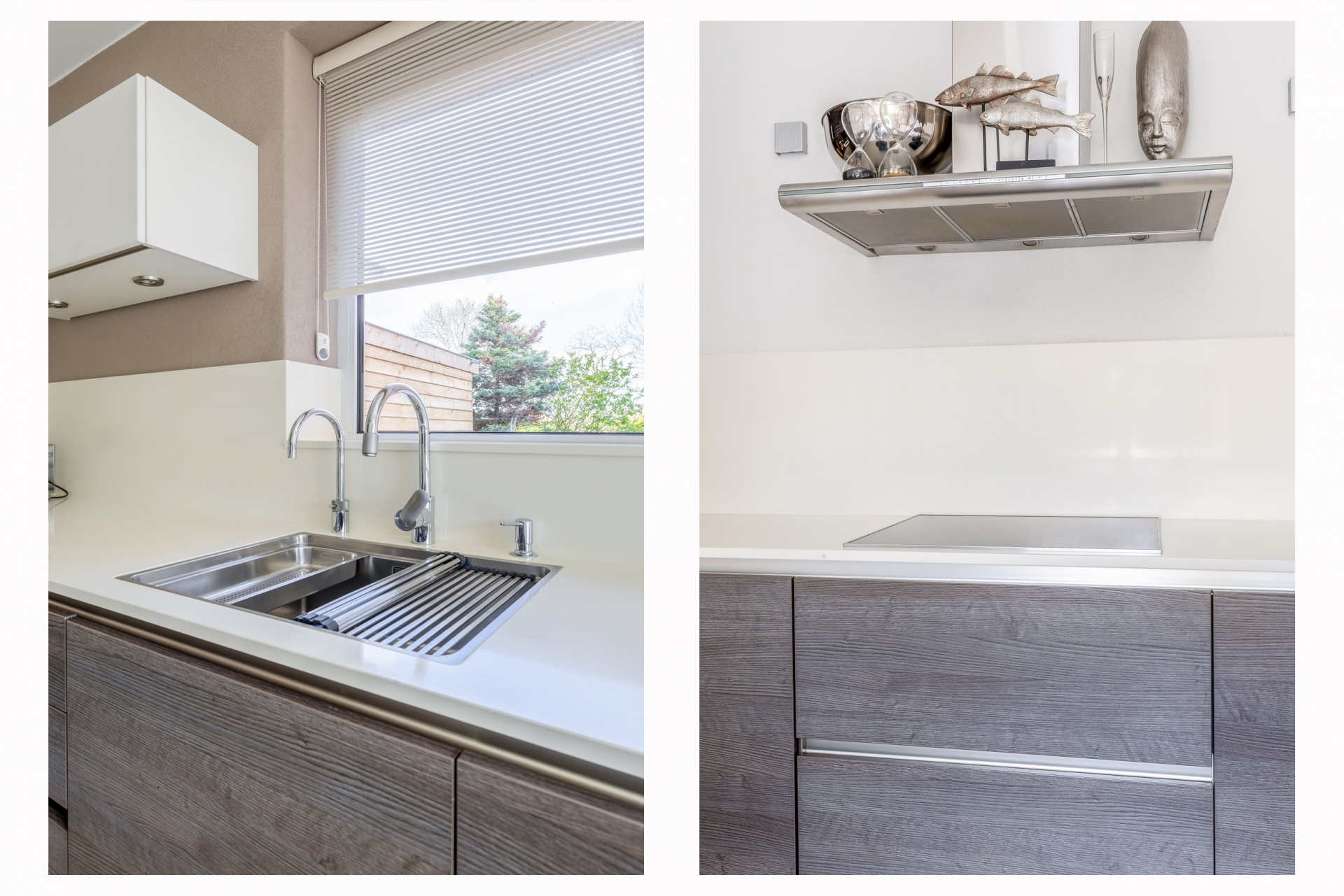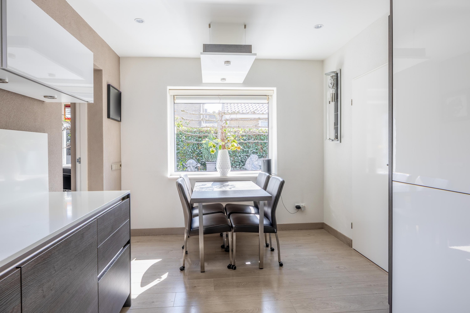 Bij binnenkomst valt direct de prettige lichtinval op. De leefruimte is royaal opgezet en heel sfeervol met een erker met glas-in-lood ramen, een houtkachel met marmeren schouw en er is veel lichtinval. Dankzij de grote raampartijen heb je vanuit de woonkamer een prachtig zicht op de tuin en het water daarachter. Dat zorgt voor een fijne, open sfeer in huis. De keuken sluit hier mooi op aan en is strak afgewerkt. Met moderne Miele inbouwapparatuur en een praktische indeling heb je hier alles binnen handbereik. In de aanbouw achter de woning is naast de keuken een ruime badkamer aanwezig, een separaat toilet en een handige kast met wasmachineaansluiting.