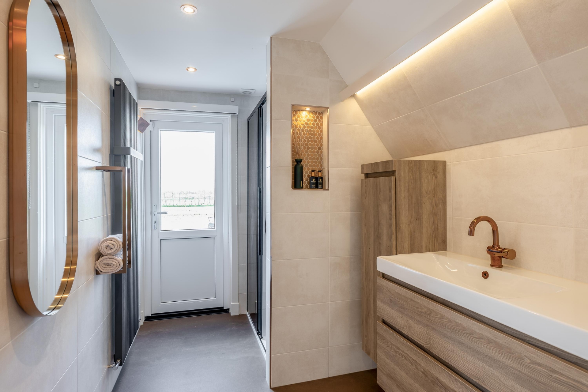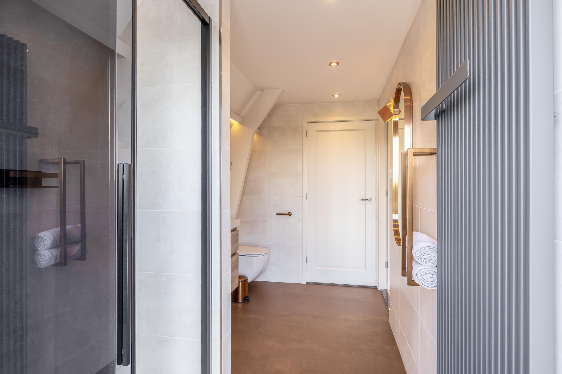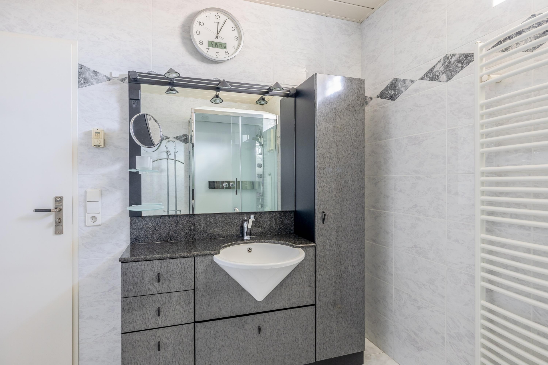 De aanwezigheid van twee badkamers is hier echt een groot pluspunt. Ideaal voor drukke ochtenden of als je gasten ontvangt. De badkamer op de eerst verdieping is modern uitgevoerd (2024), met een strakke afwerking, inloopdouche, wastafel met meubel en een toilet (Sanibroyeur). Alles is netjes verzorgd en klaar voor gebruik.