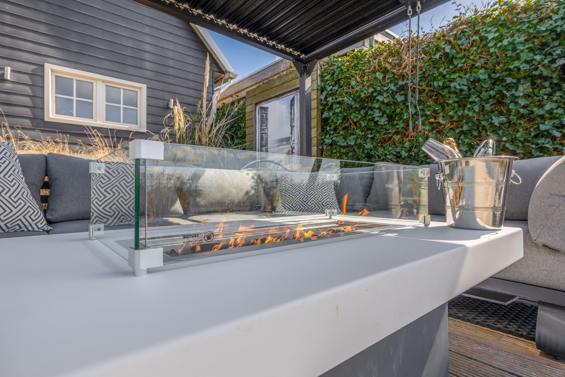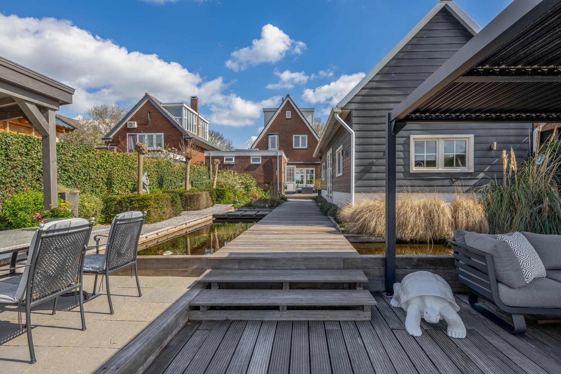 Buiten komt alles samen. De achtertuin ligt op het zuidwesten, wat betekent dat je hier volop van de zon kunt genieten – van de middag tot in de avond. Of je nu wilt ontspannen met een boek, buiten wilt eten of met vrienden wilt borrelen: hier kan het allemaal. De ligging aan het water maakt het extra bijzonder. Met een eigen ligplaats stap je zo in je boot en vaar je de omgeving in. Het vrije uitzicht over het water en het achterliggende groen zorgt voor een gevoel van ruimte en rust dat je niet snel ergens anders vindt.