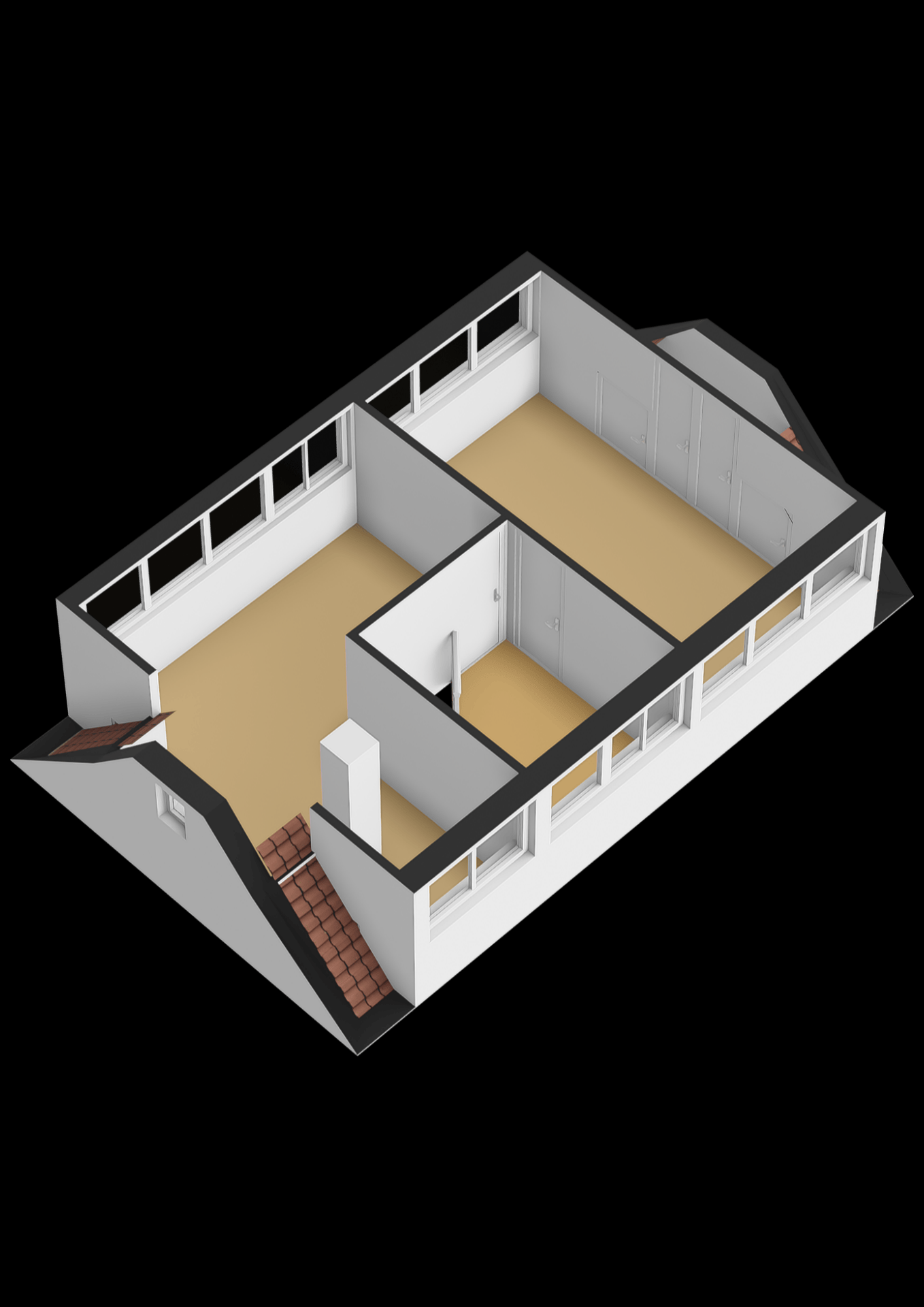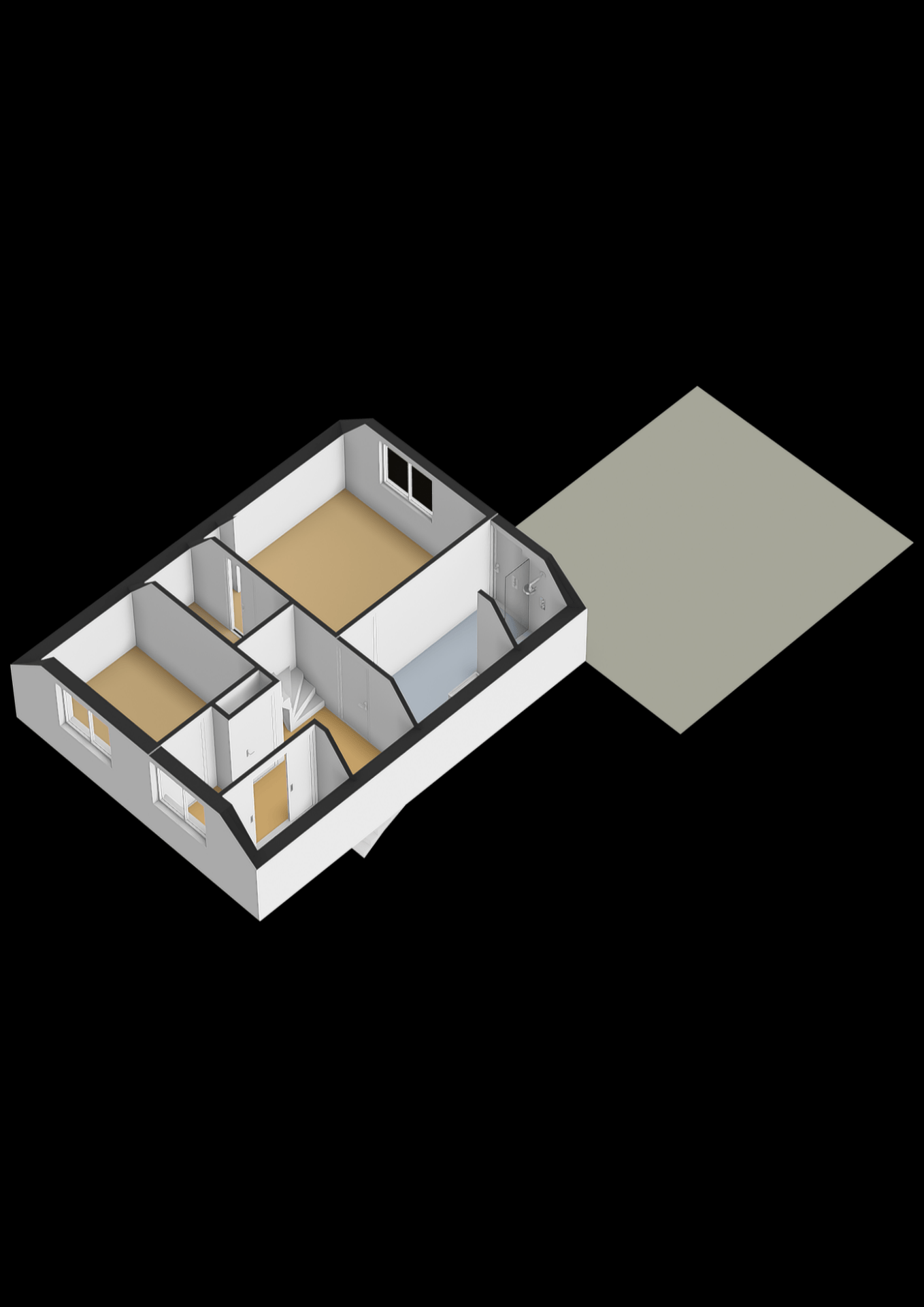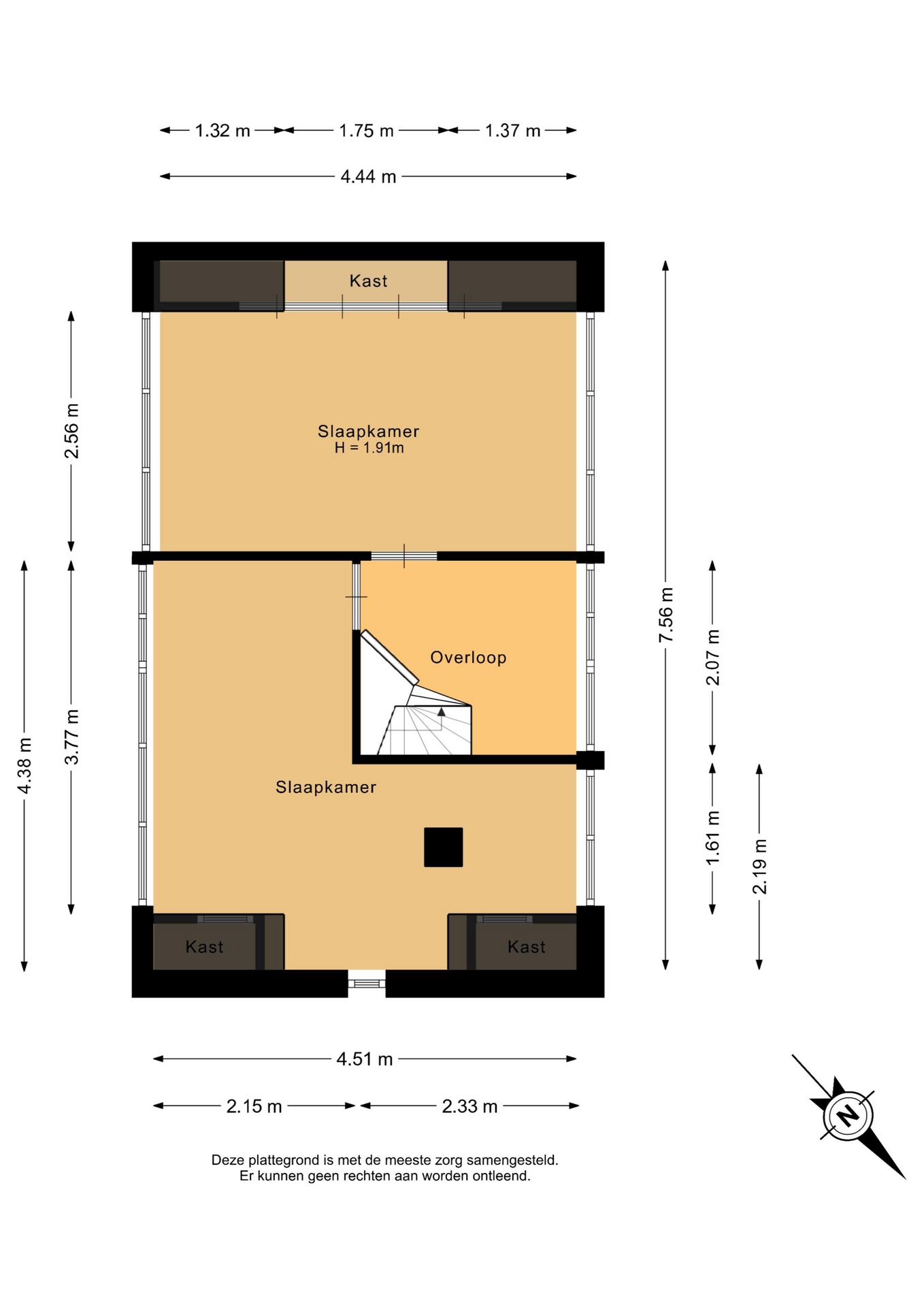 - De hoogte van de tweede verdieping is ca. 1,91 meter. Omdat de ruimte zich goed leent als woonruimte (2 slaapkamers) is de ruimte opgenomen in het genoemde woonoppervlak, ondanks het feit dat de meetinstructie een minimale hoogte van 2 meter eist;