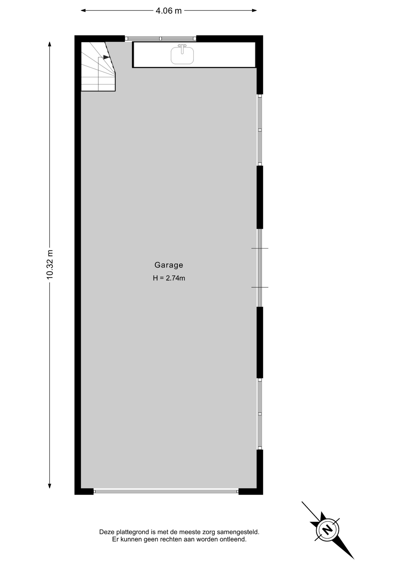 - Garage/ werkplaats van ca. 10,32m x 4,06m met zolder (stahoogte in de nok ca. 2m) is onderheid, geheel geïsoleerd en verwarmd middels CV installatie en aanwezigheid van warm en koud water;