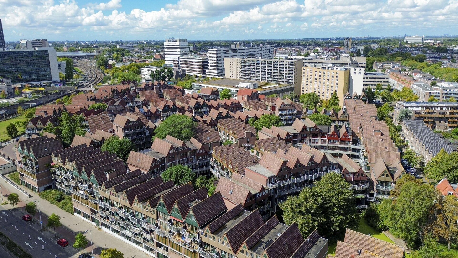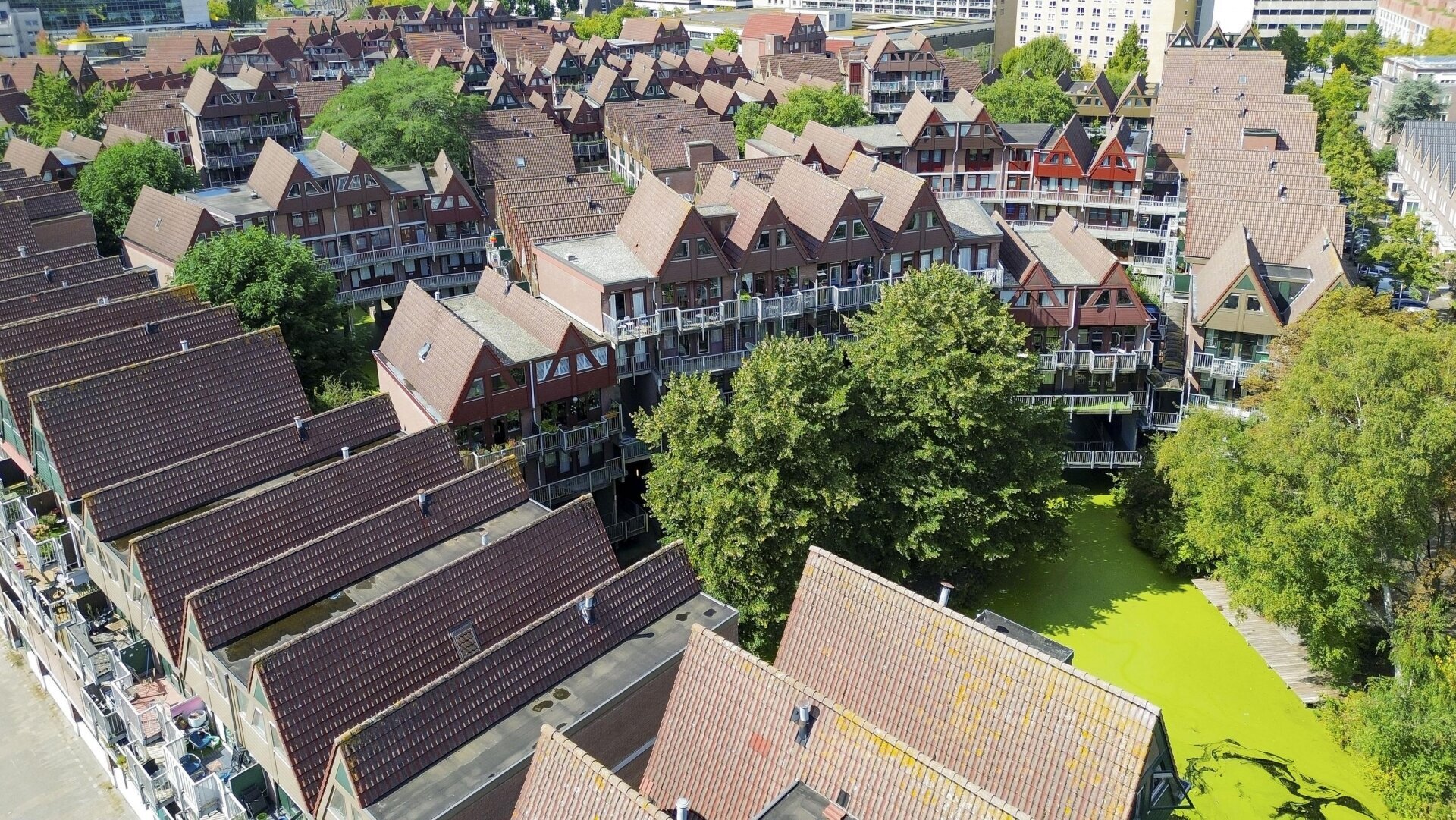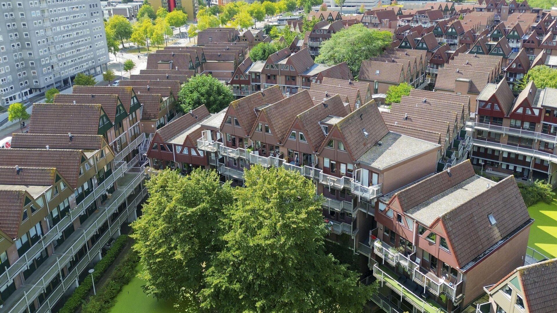 Het Heliport-complex staat bekend om zijn opvallende stedenbouwkundige ontwerp en vriendelijke woonomgeving. Autoluw, veel groen en speels aangelegd: het voelt bijna dorps aan, terwijl je binnen enkele minuten het hart van de stad inloopt.