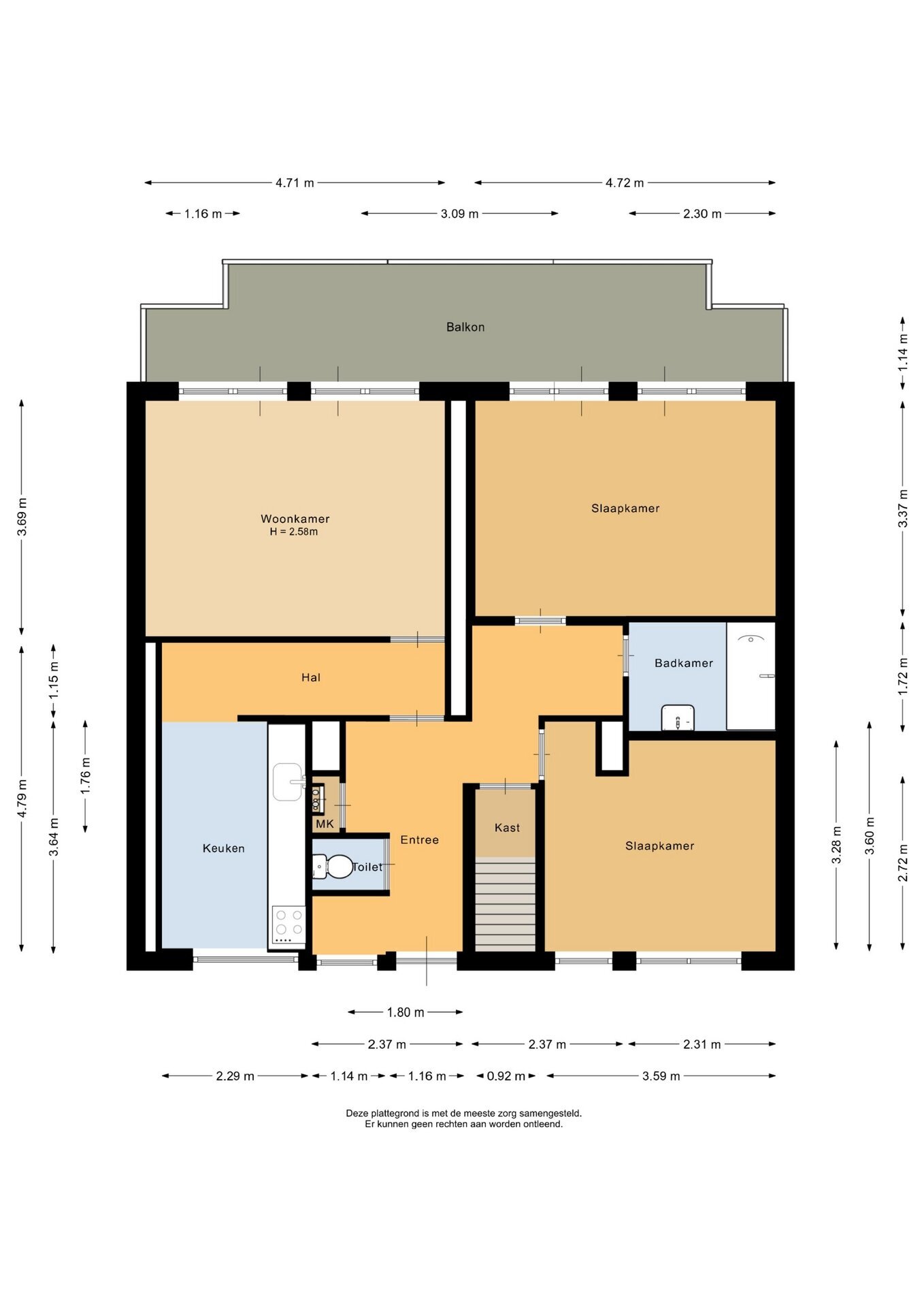 “Deze informatie is door ons met de nodige zorgvuldigheid samengesteld. Onzerzijds wordt echter geen enkele aansprakelijkheid aanvaard voor enige onvolledigheid, onjuistheid of anderszins, dan wel de gevolgen daarvan. Alle opgegeven maten en oppervlakten zijn indicatief.”