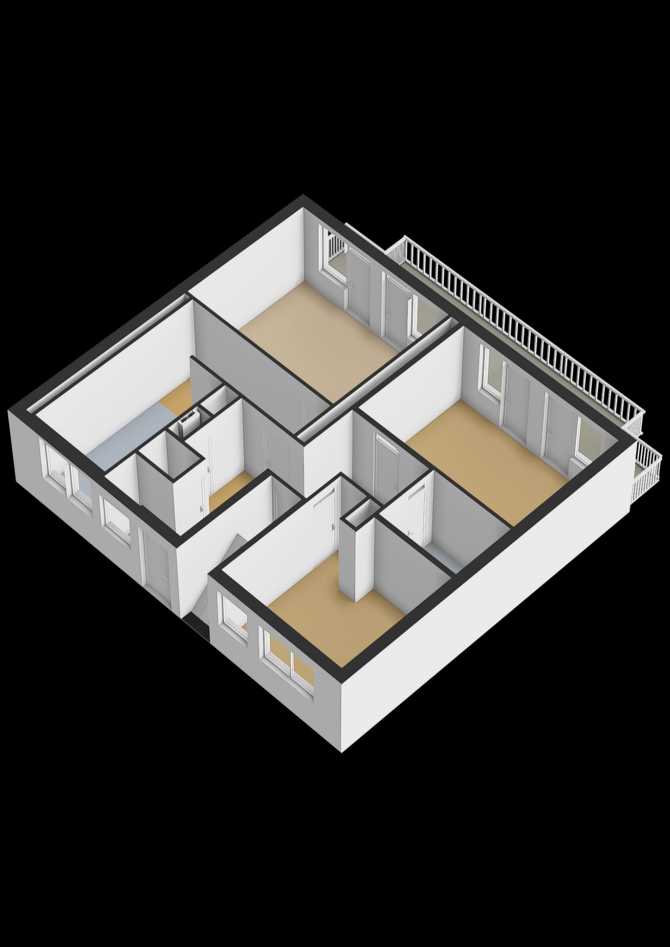 Het appartement is basic afgewerkt, wat betekent dat je als nieuwe eigenaar de kans hebt om het helemaal naar jouw hand te zetten. De huidige indeling bestaat uit een woonkamer met toegang tot het balkon, een gesloten keuken aan de voorzijde, twee slaapkamers en een badkamer met douche en wastafel. De toiletruimte is separaat en bereikbaar via de hal.
