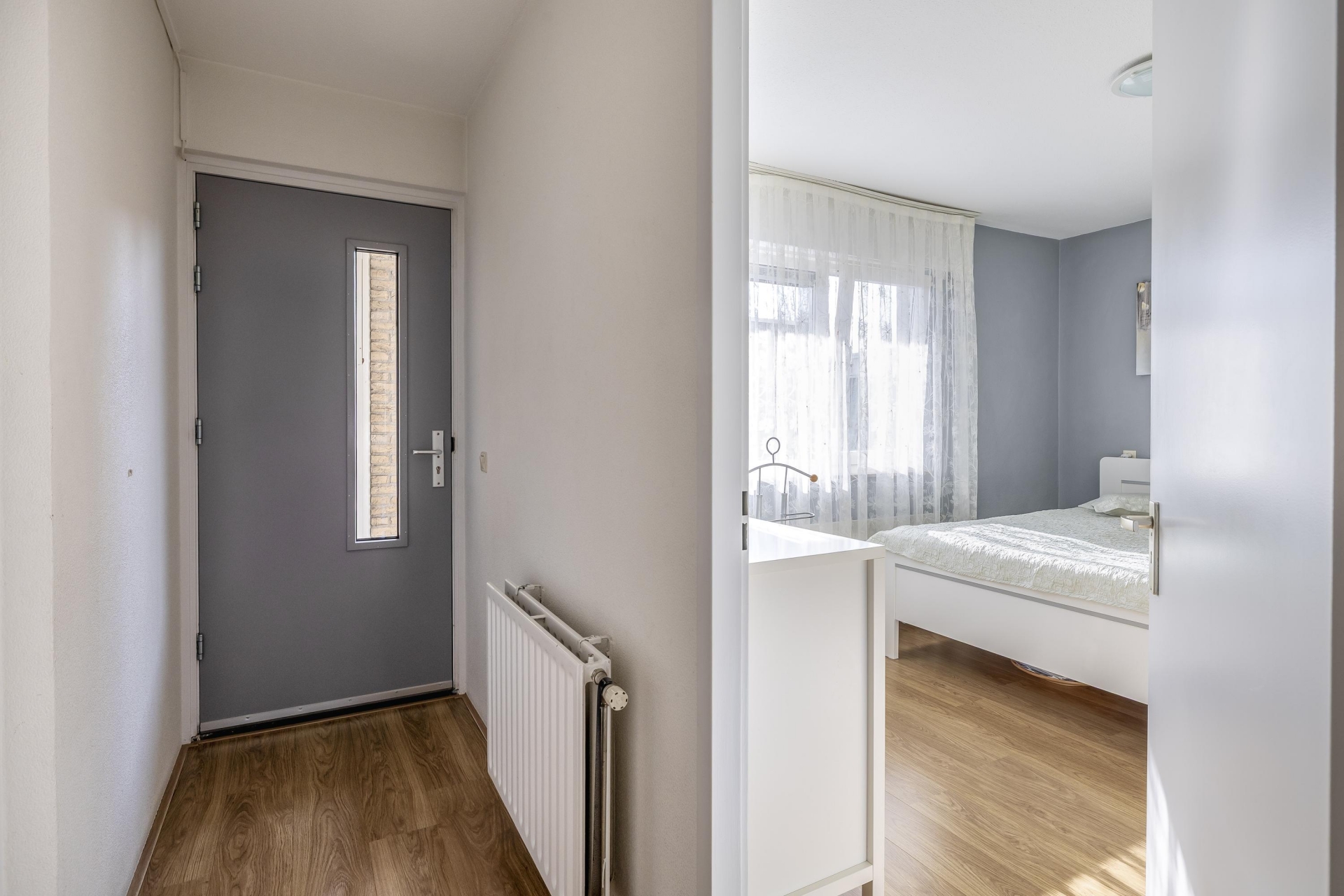 Naast deze kamer bevindt zich verderop in de hal een proviandkast, een meterkast en een inpandige berging met aansluiting voor wasapparatuur. Naast deze berging is een aparte toiletruimte aanwezig; geheel betegeld en voorzien van wandcloset en fontein. Naast dit toilet bevindt zich de 3e slaapkamer (9m²).