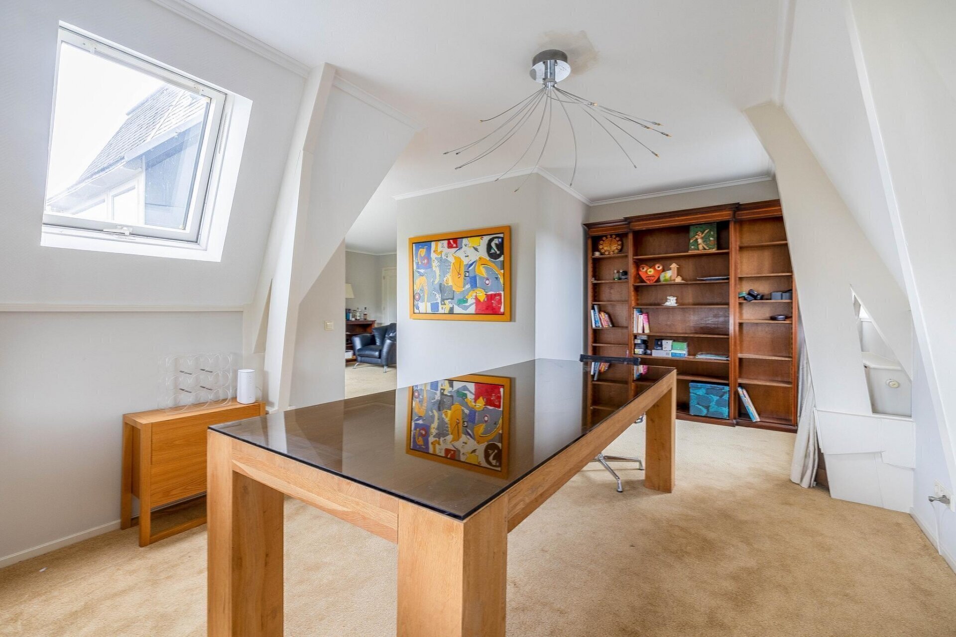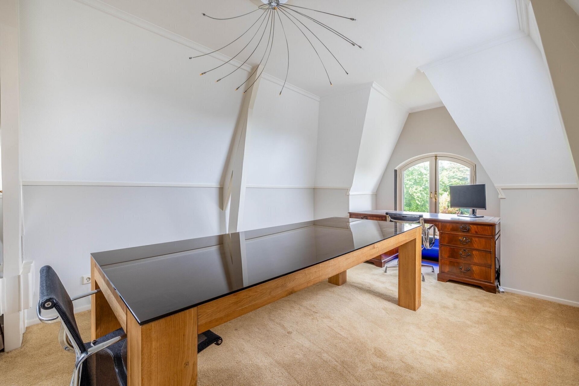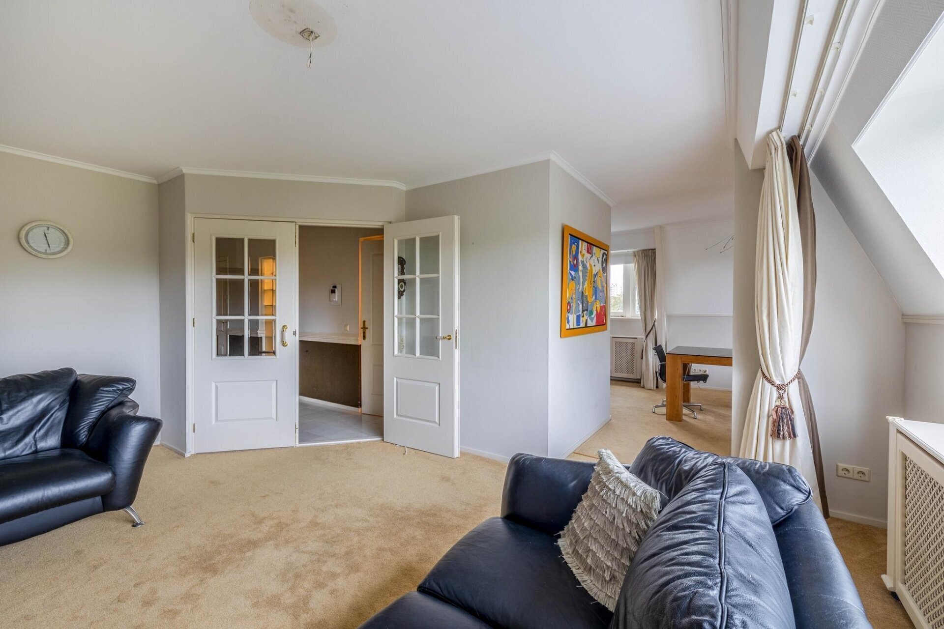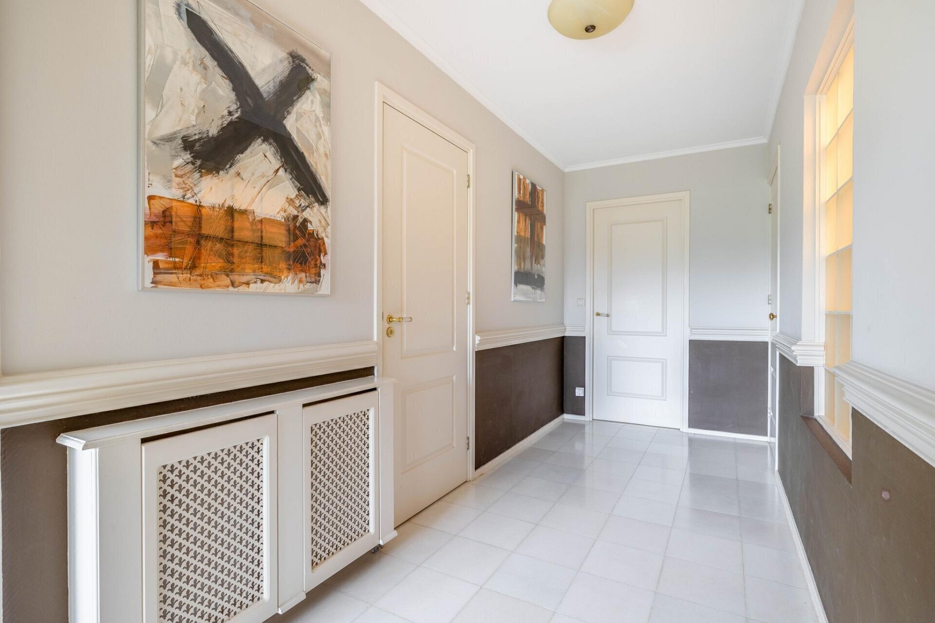 Entree van het appartement via een riante hal met garderobekast en gang met gastentoilet. Sfeervolle woonkamer heeft met een gashaard. Aangrenzend aan de woonkamer bevindt zich de eetkamer met prachtig uitzicht over de vijver en het park.