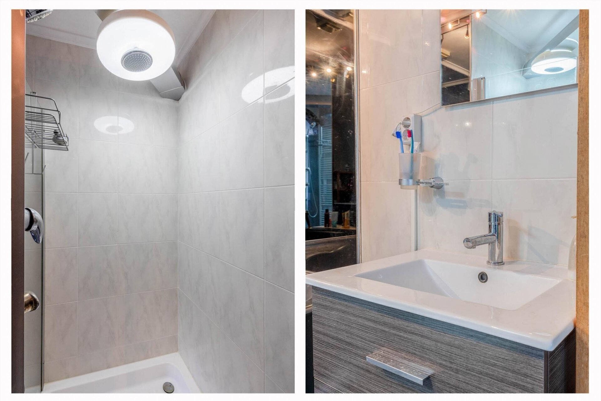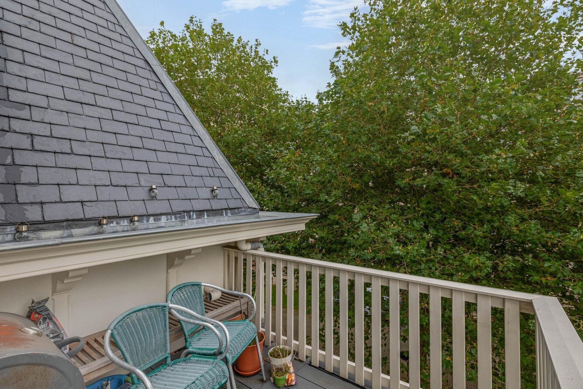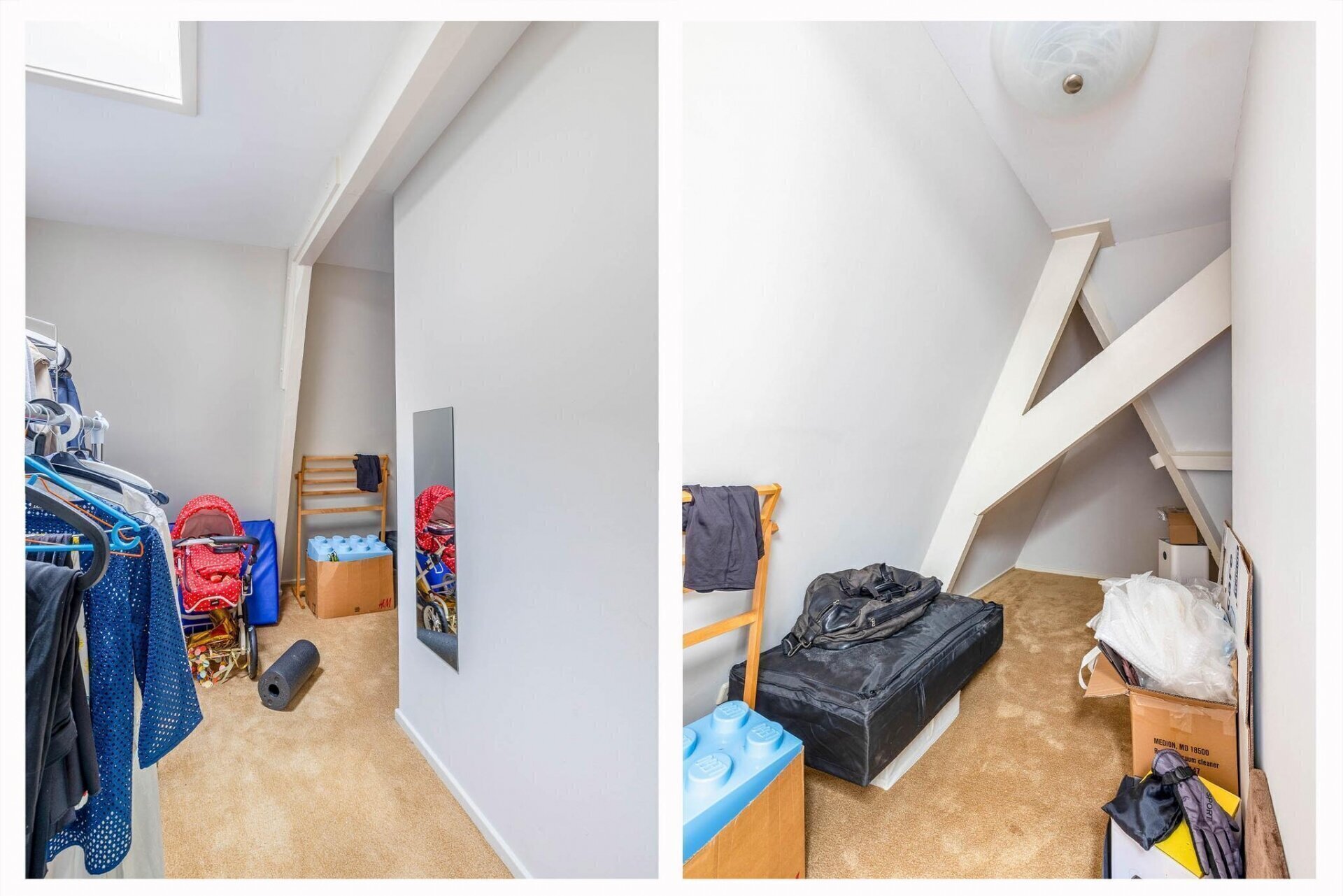 Trap naar de vierde verdieping; royale overloop met wasmachine aansluiting. Voor- en achterslaapkamer; de badkamer is vanuit beide slaapkamers toegankelijk en is voorzien van een inloopdouche, wastafel en een toilet. Op deze verdieping bevindt zich tevens een ruime inloopkast/opbergkamer.