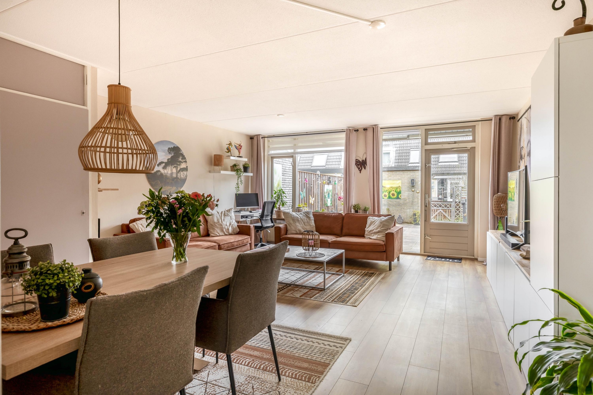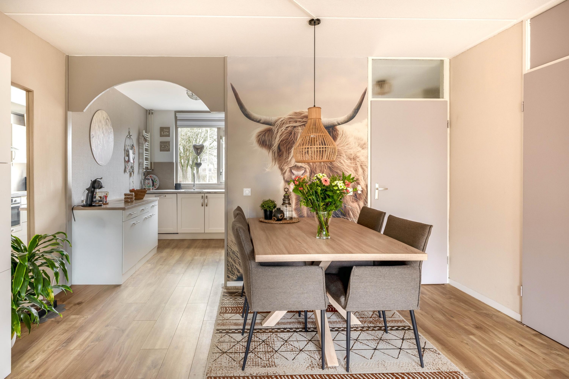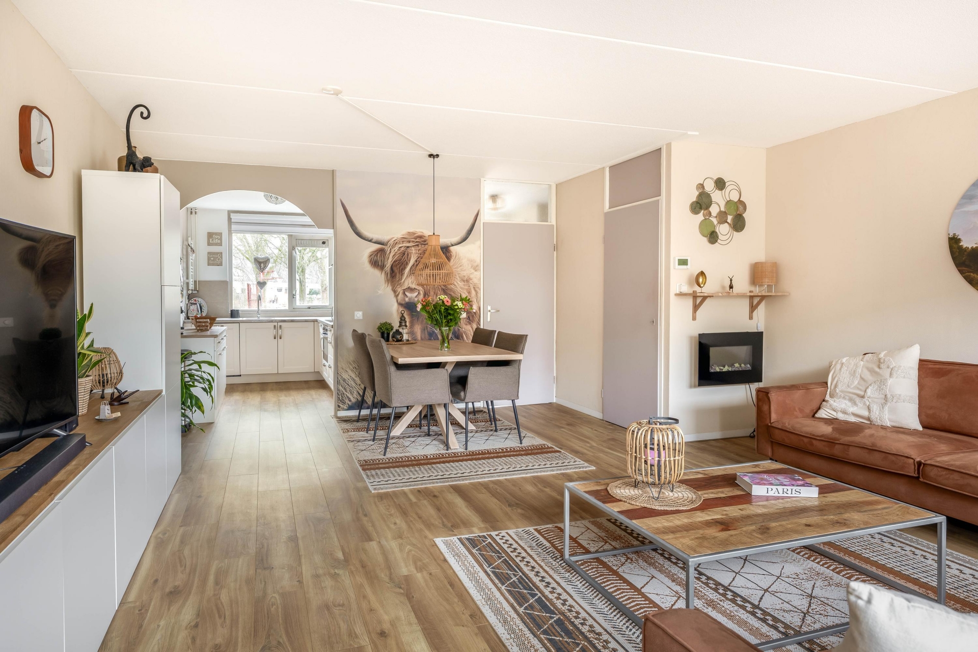 Zodra je binnenkomt valt direct de fijne sfeer op. De woonkamer is licht en ruim opgezet en biedt volop plek voor een comfortabele zithoek én een gezellige eethoek. De afwerking is netjes en neutraal, waardoor je hier eenvoudig je eigen stijl aan kunt geven. Grote ramen zorgen voor veel daglicht en een prettige verbinding met buiten.