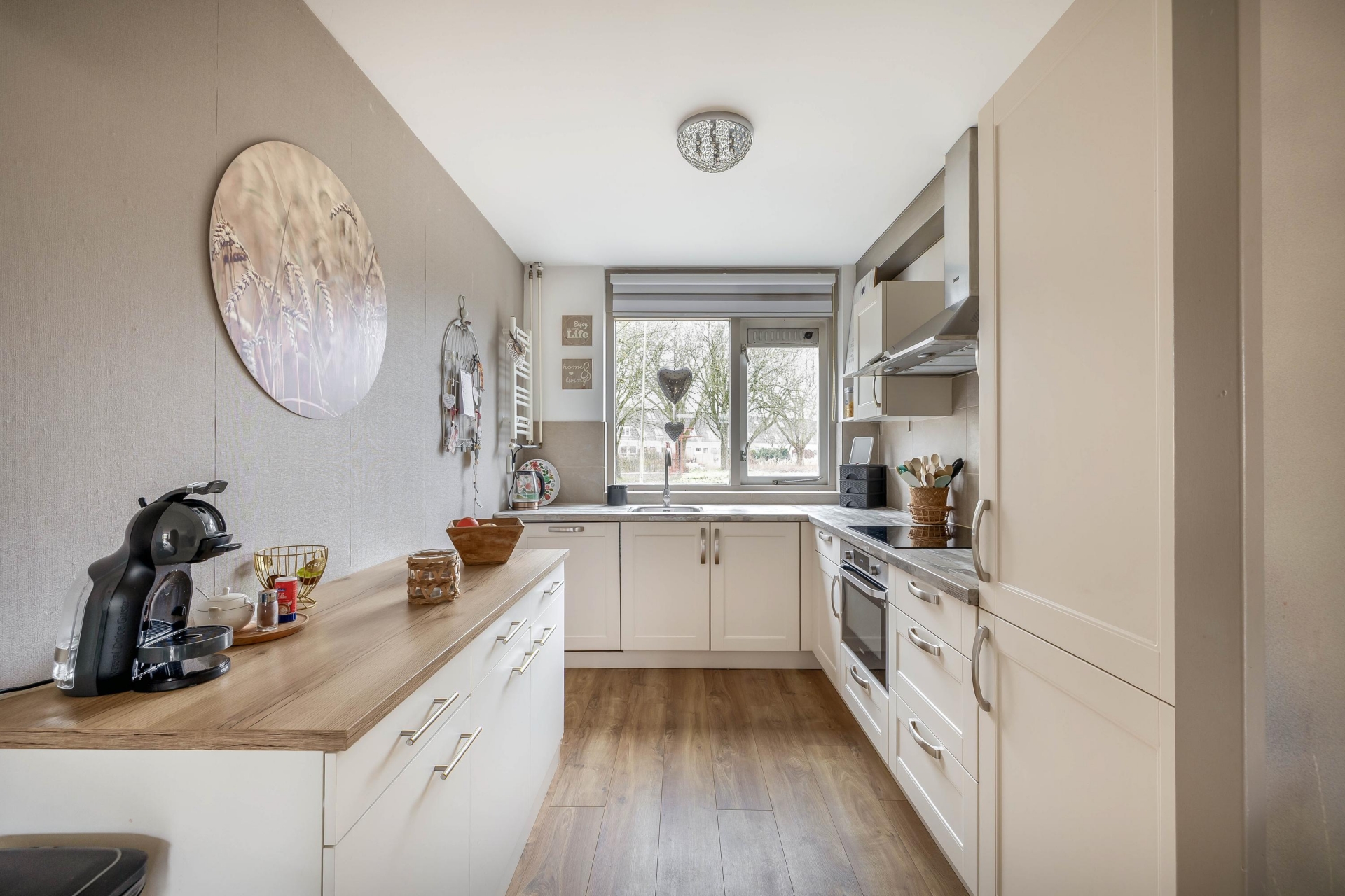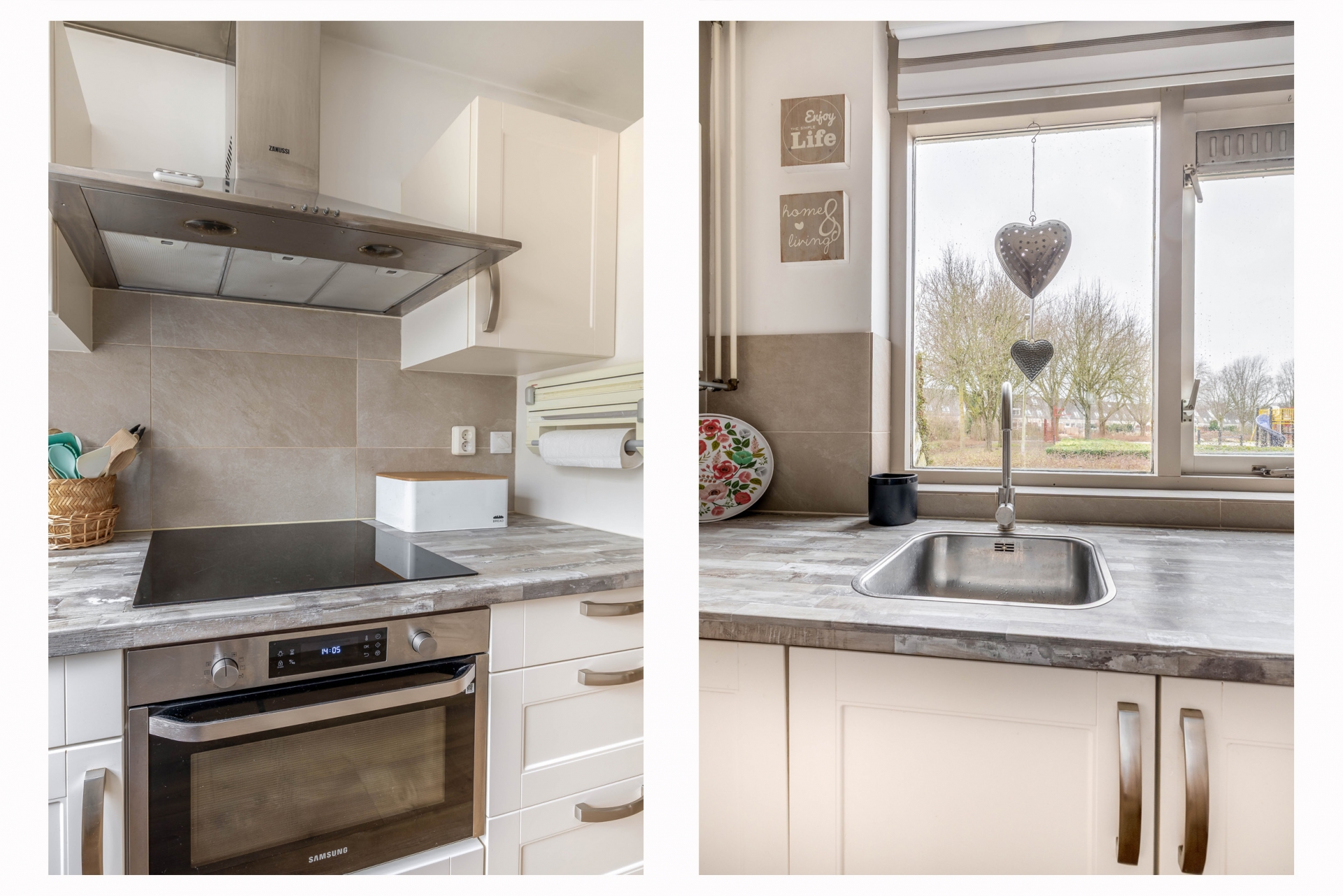 De keuken is modern en verzorgd uitgevoerd en sluit mooi aan bij de rest van het huis. Dankzij de slimme opstelling is er veel werk- en kastruimte, ideaal voor wie graag kookt of gewoon houdt van overzicht en gemak. De lichte kleuren en strakke lijnen zorgen voor een tijdloze uitstraling.