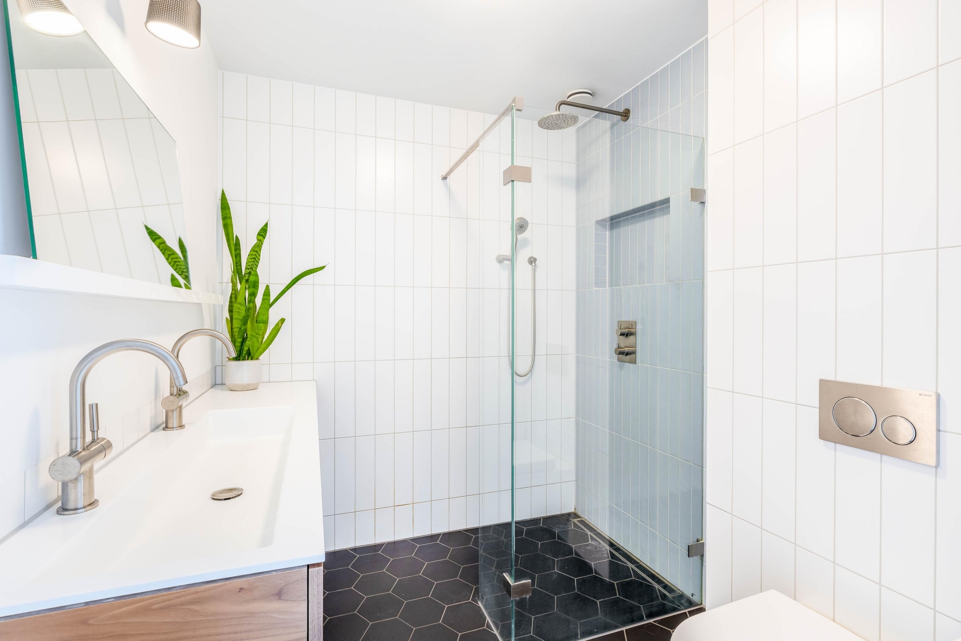 De badkamer is in 2021 vernieuwd en modern afgewerkt met een inloopdouche, wastafelmeubel en tweede toilet. Daarnaast is er op de woonverdieping een separaat toilet aanwezig, wat extra comfort biedt in het dagelijks gebruik.