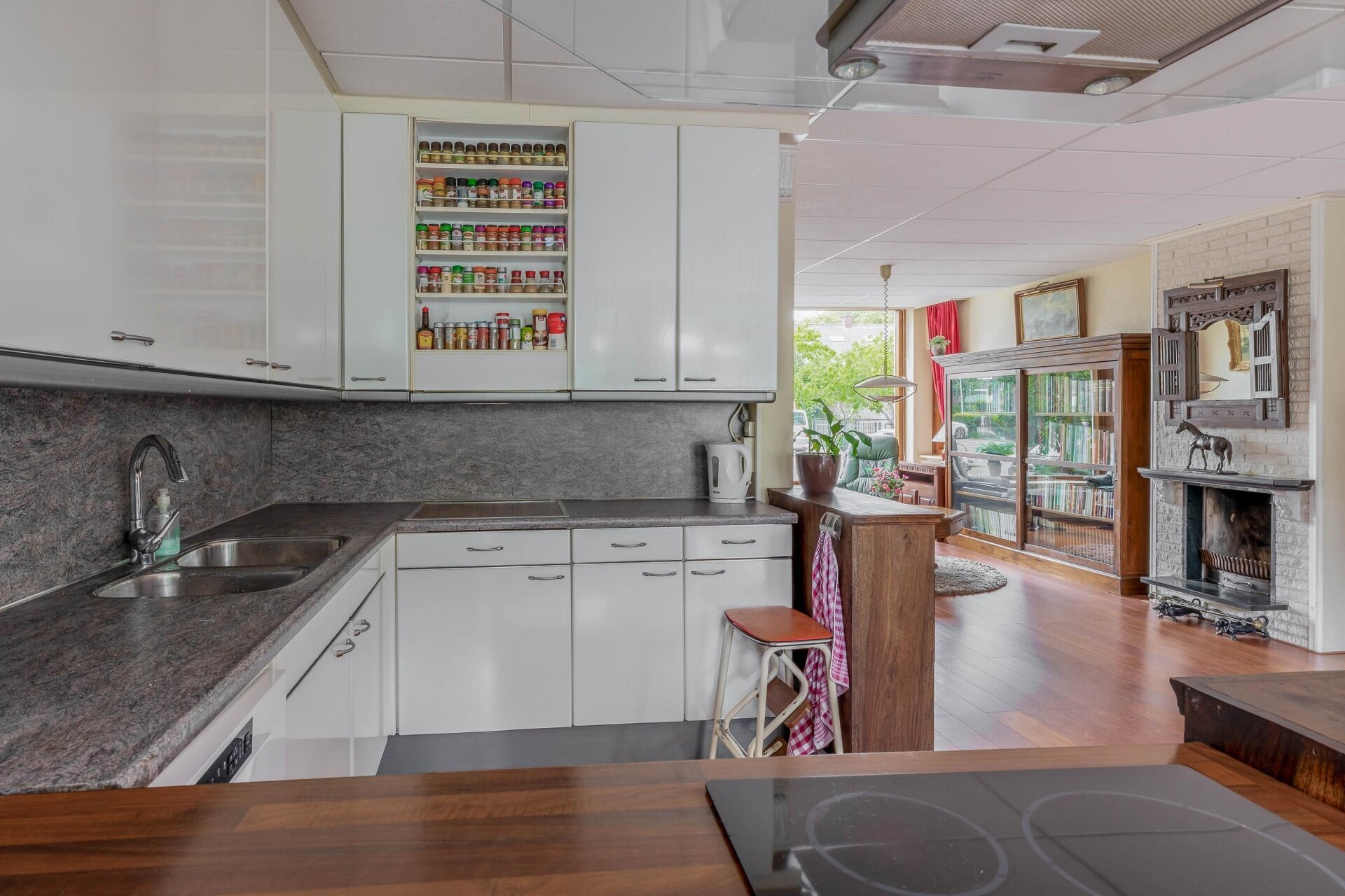 De woonkamer is royaal en licht, met een grote raampartij aan de voorzijde en een mooie Quick-Step laminaatvloer die doorloopt tot in de keuken. De open keuken met baropstelling is voorzien van diverse inbouwapparatuur en biedt voldoende ruimte voor een grote eettafel. Dit is zo’n plek waar je met gemak met de hele familie kunt tafelen of rustig kunt werken met uitzicht op de achtertuin.