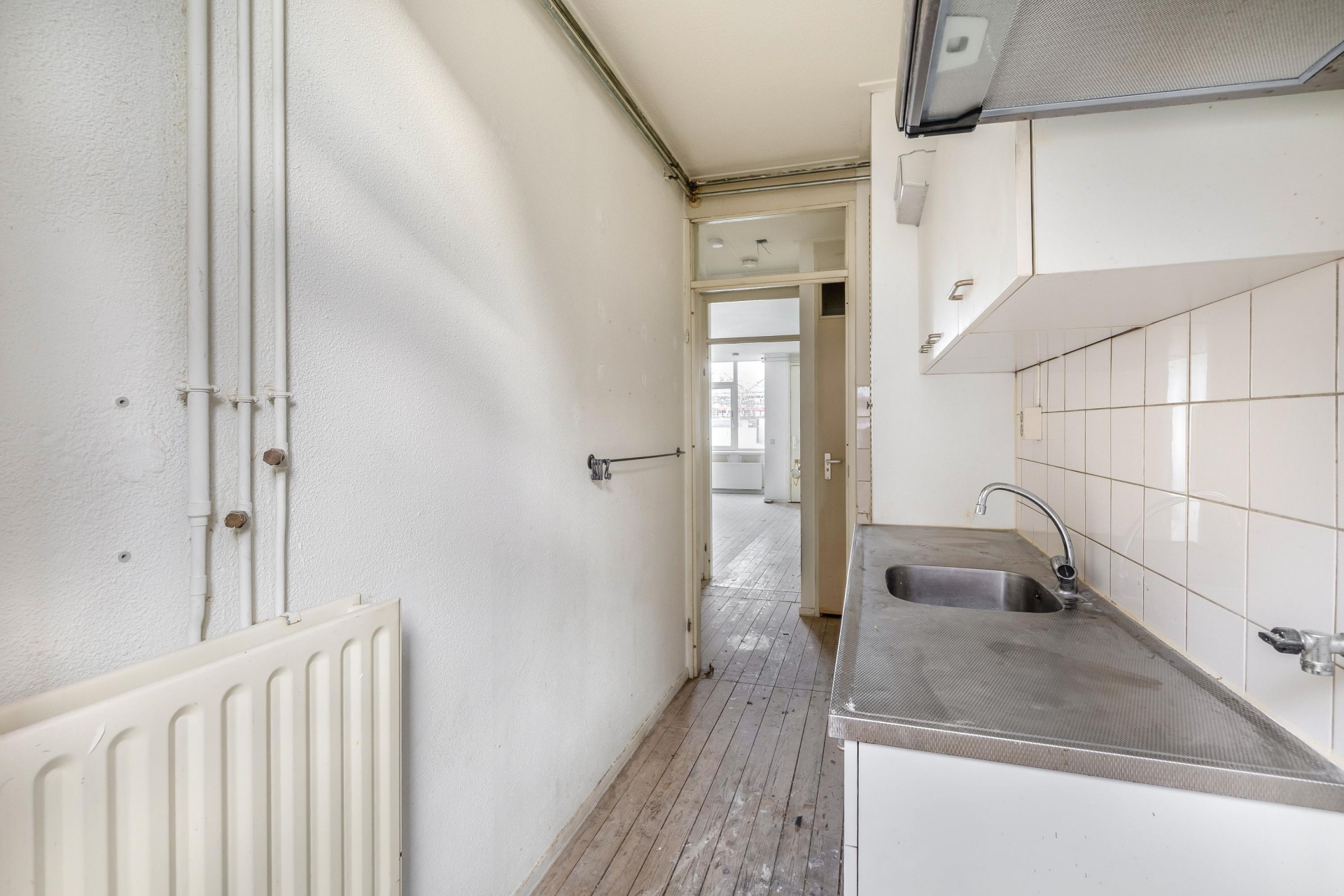 Het huis heeft een praktische indeling: een lichte woonkamer, een keuken die toegang geeft tot de tuin, een rustige slaapkamer aan de achterzijde en een compacte badkamer. Met de juiste aanpassingen kun je hier een comfortabel en stijlvol benedenhuis realiseren.