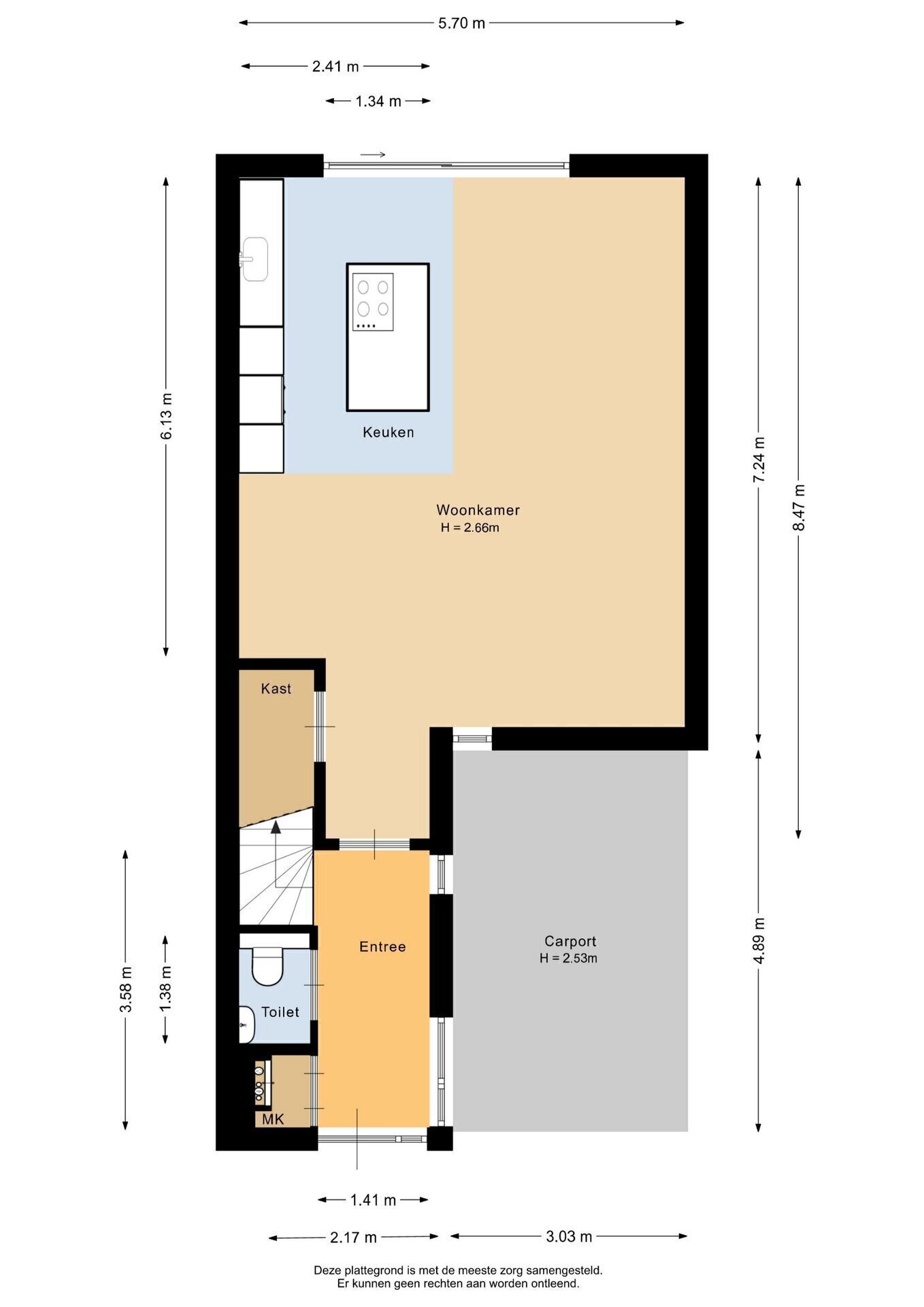 “Deze informatie is door ons met de nodige zorgvuldigheid samengesteld. Onzerzijds wordt echter geen enkele aansprakelijkheid aanvaard voor enige onvolledigheid, onjuistheid of anderszins, dan wel de gevolgen daarvan. Alle opgegeven maten en oppervlakten zijn indicatief.”