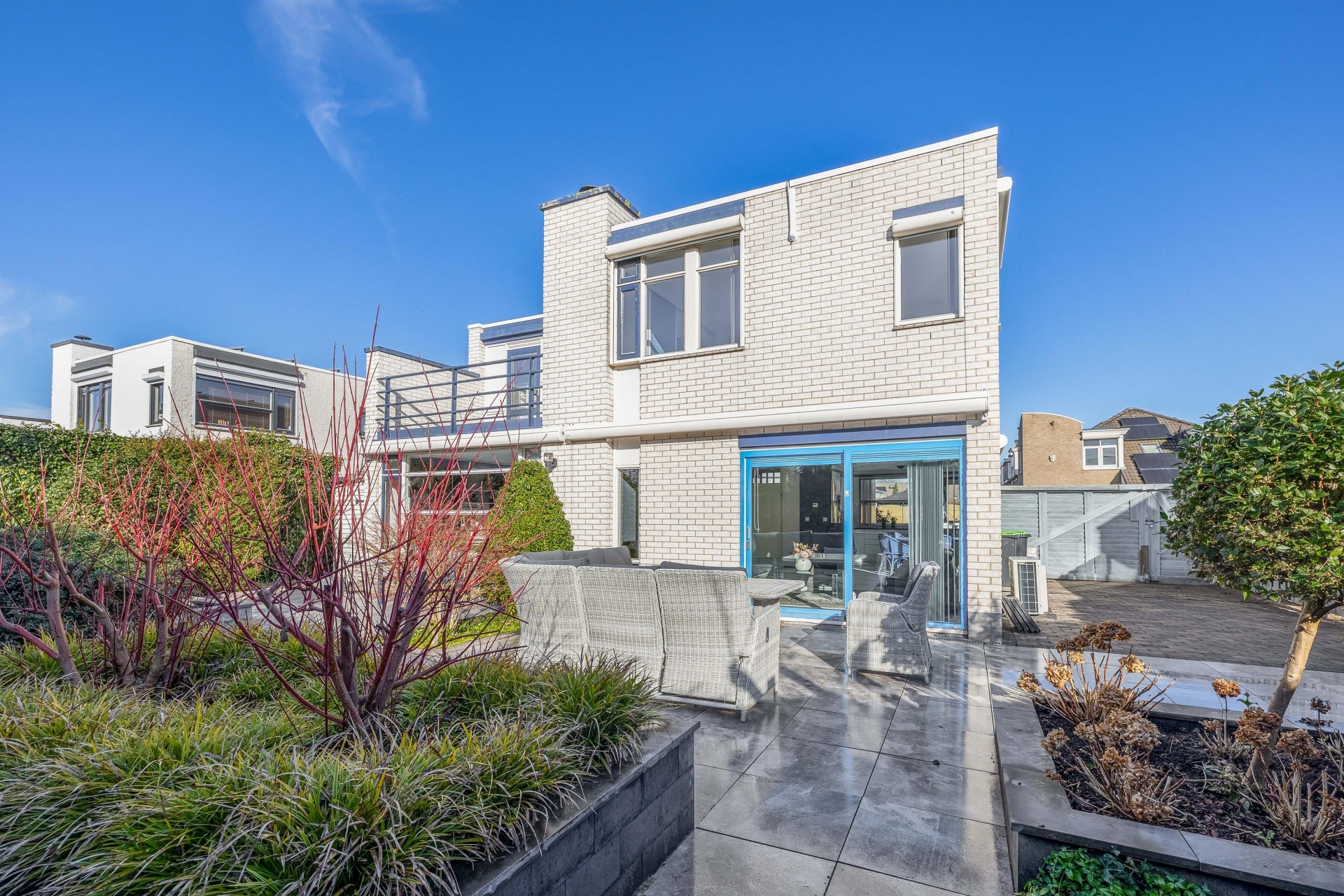 Buitenleven doe je hier in stijl. De fraai aangelegde achtertuin ligt perfect op de zon en biedt volop privacy dankzij de groene erfafscheiding. Het grote terras nodigt uit tot loungen of buiten eten, en kinderen kunnen hier veilig spelen. Ook de voortuin is verzorgd en biedt naast een fijne uitstraling ook praktische voordelen: plek om meerdere auto's te parkeren op eigen erf.