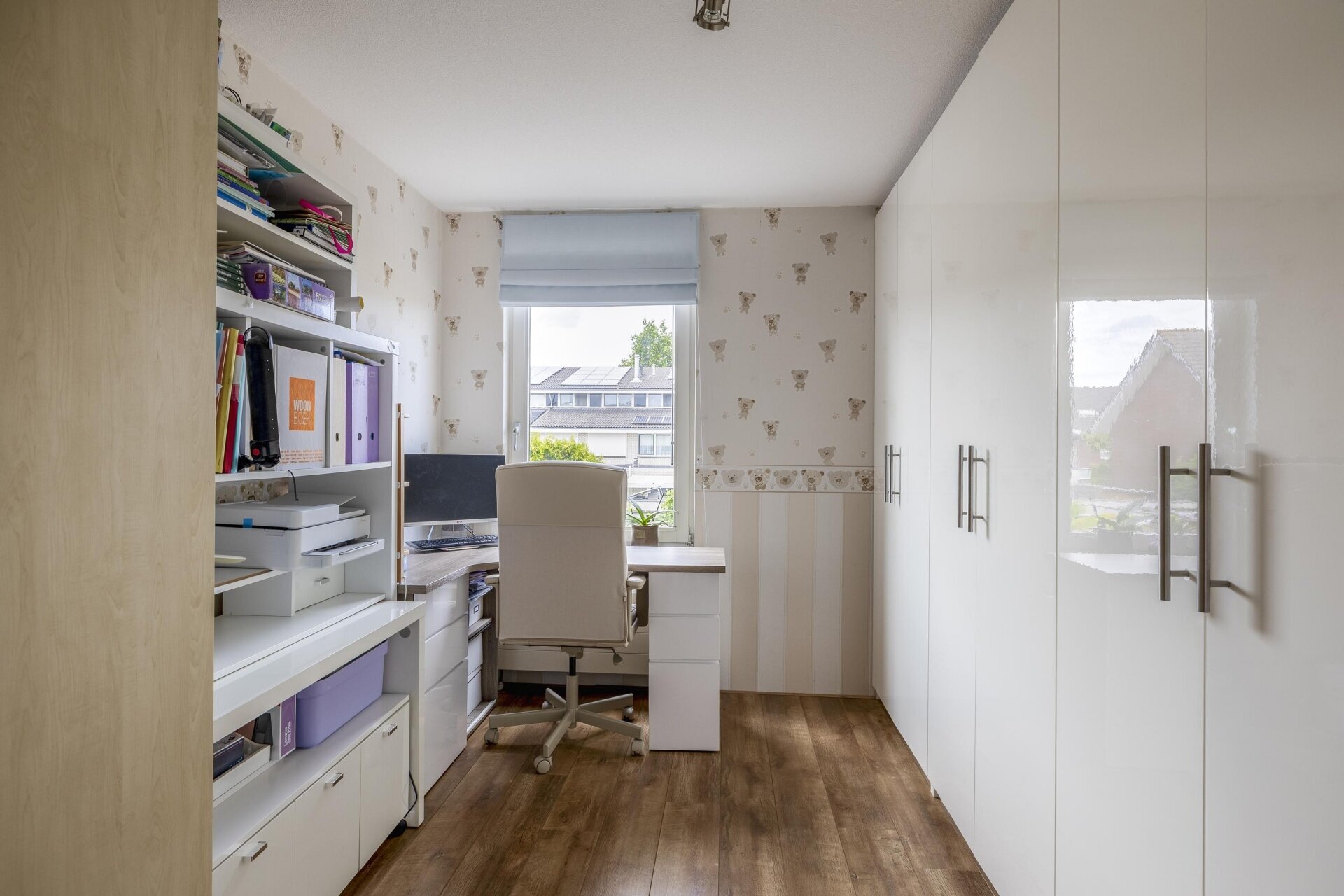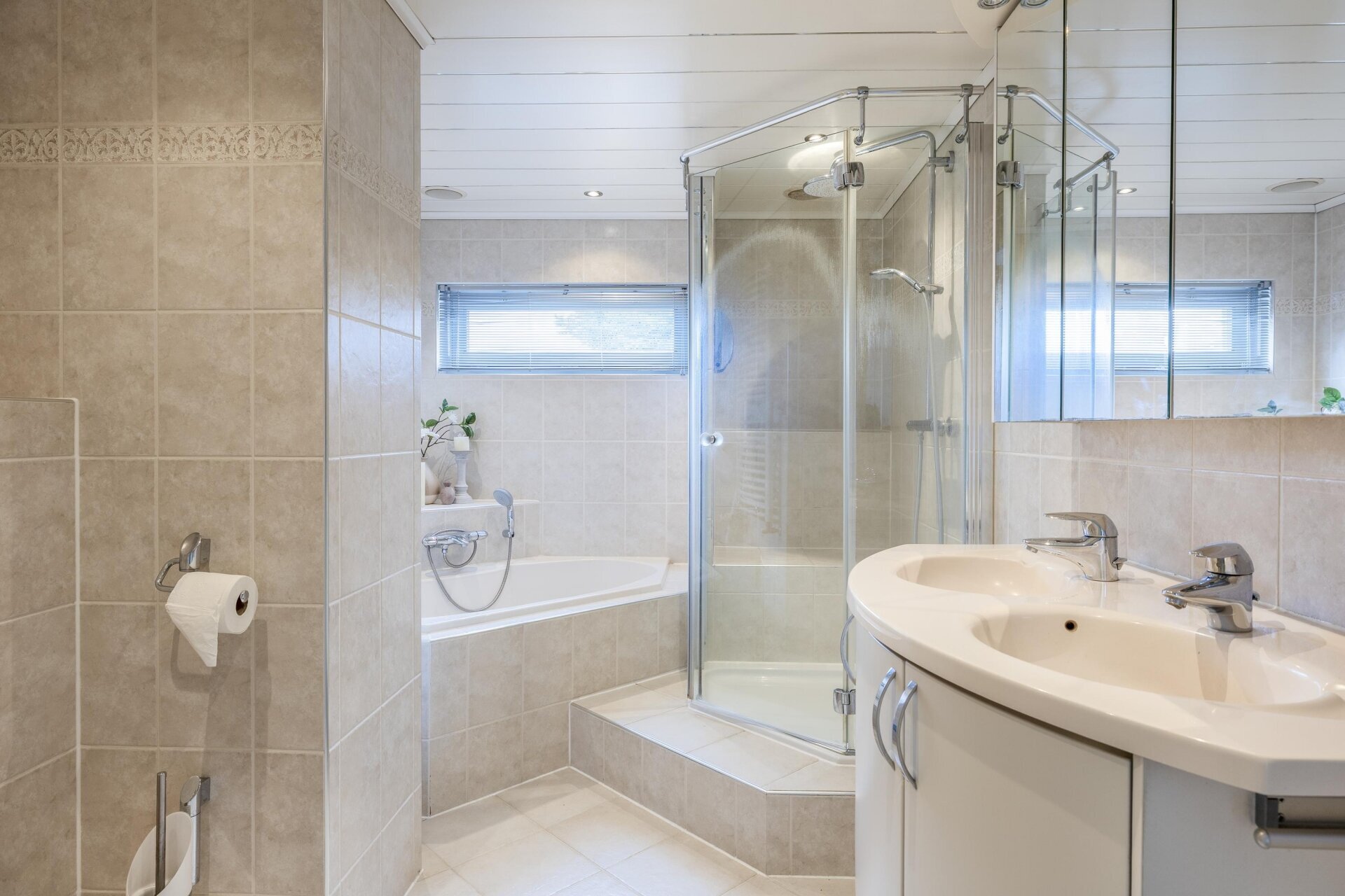 Op de eerste verdieping zijn drie slaapkamers, waaronder de ruime master bedroom aan de achterzijde. De overige twee kamers zijn ideaal als kinderkamer of werkplek. De badkamer is ruim opgezet met een ligbad (jacuzzi), een aparte regendouche, dubbelwastafelmeubel en toilet – een fijne plek om je dag ontspannen te beginnen of af te sluiten.