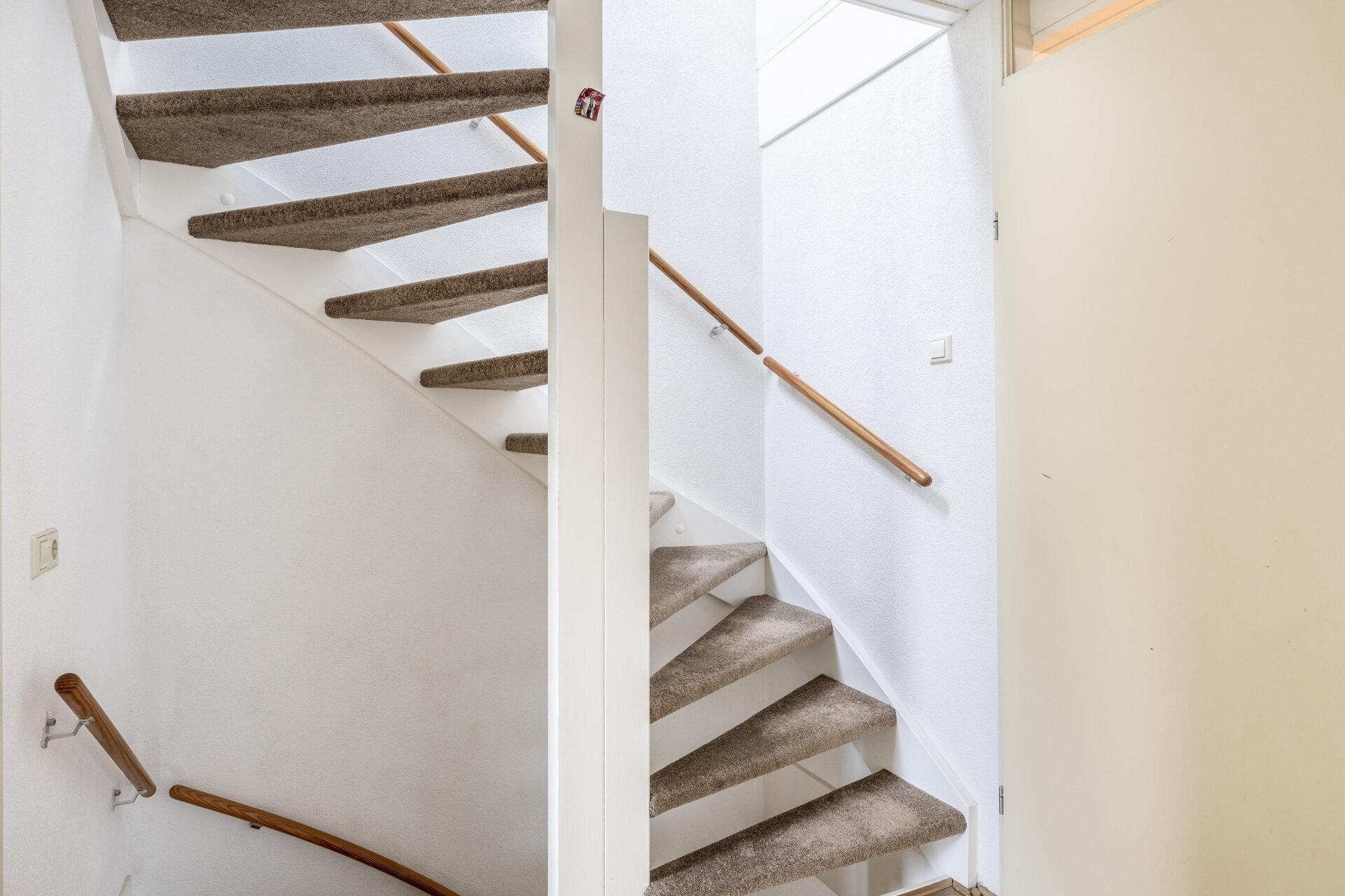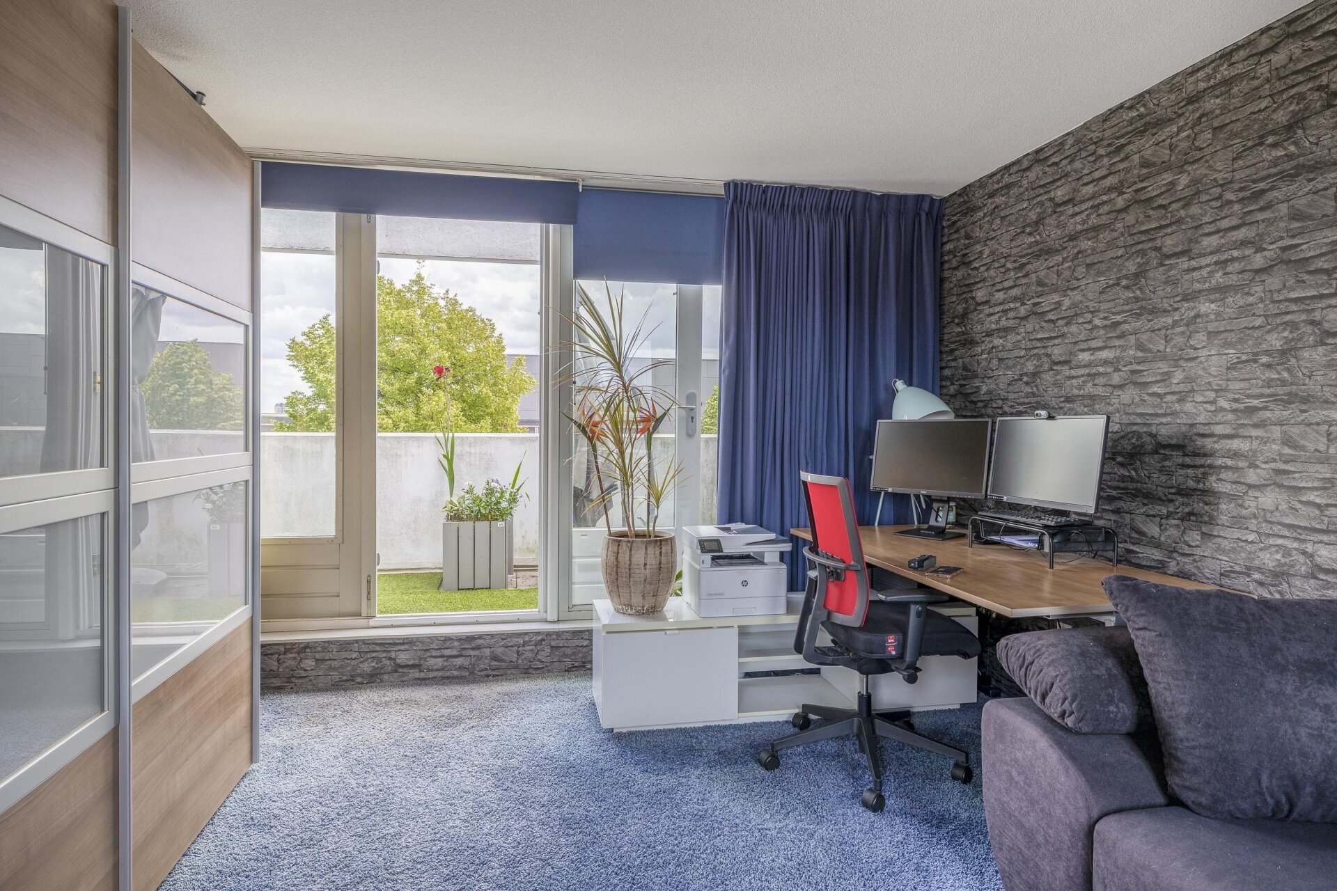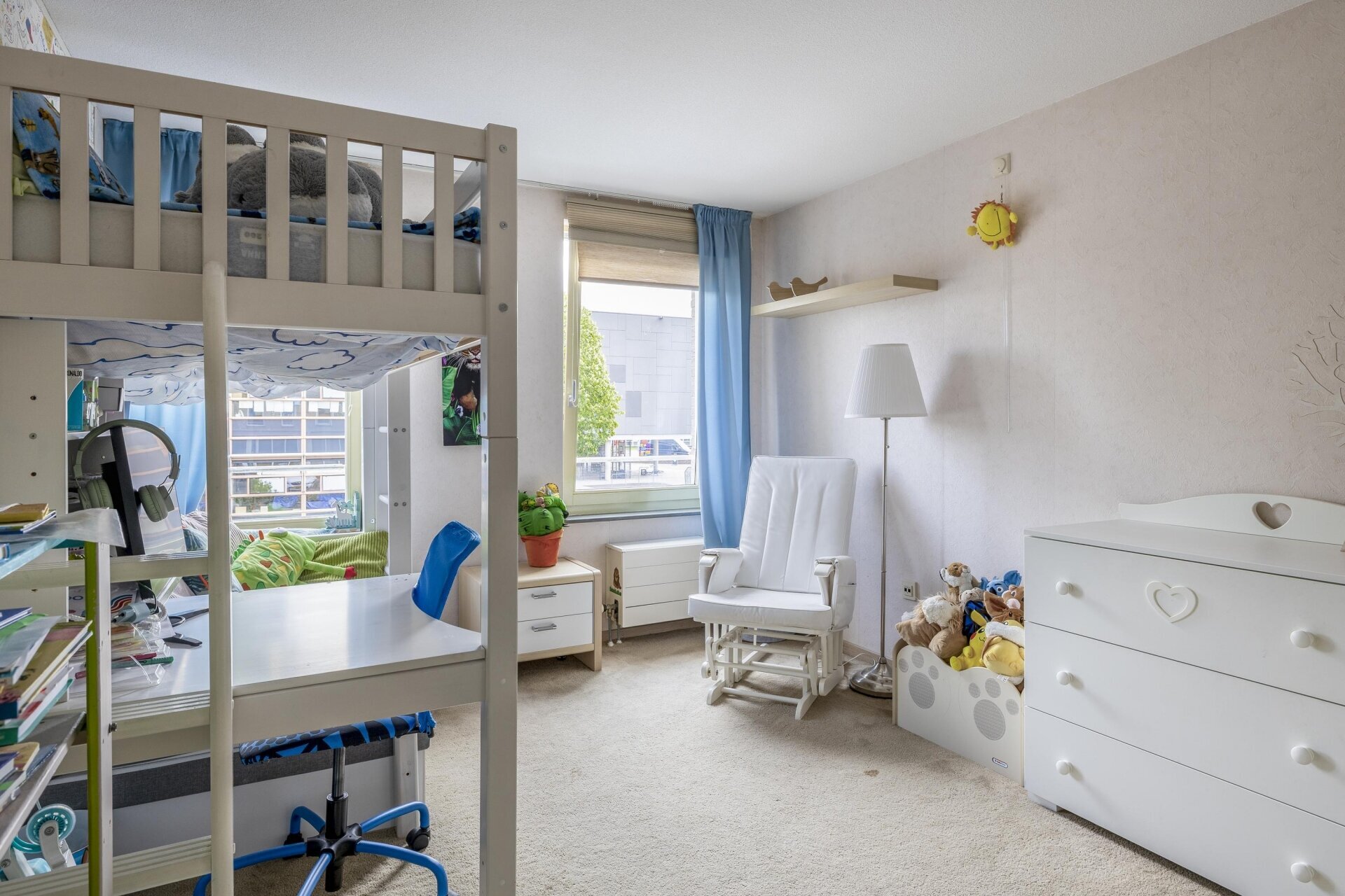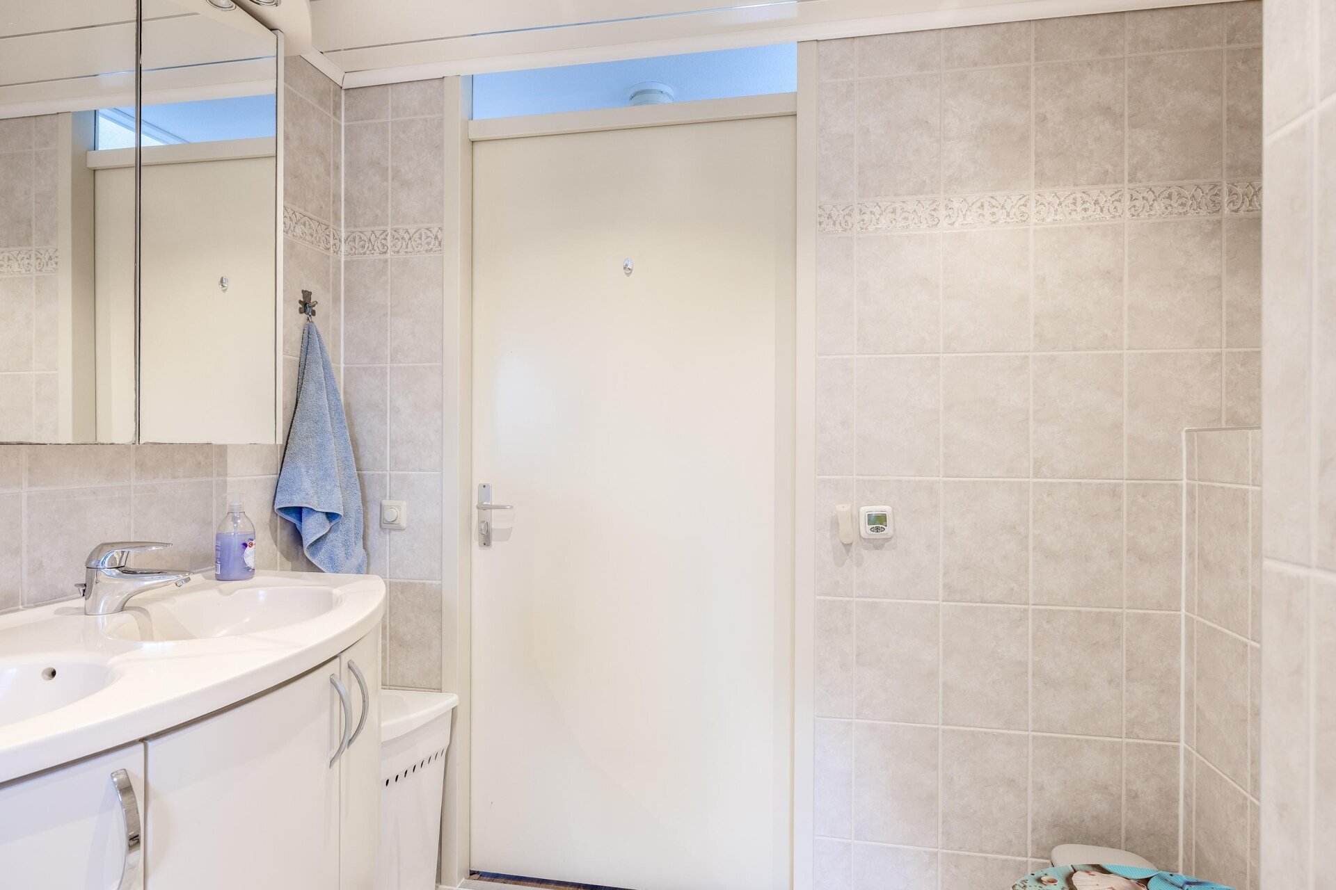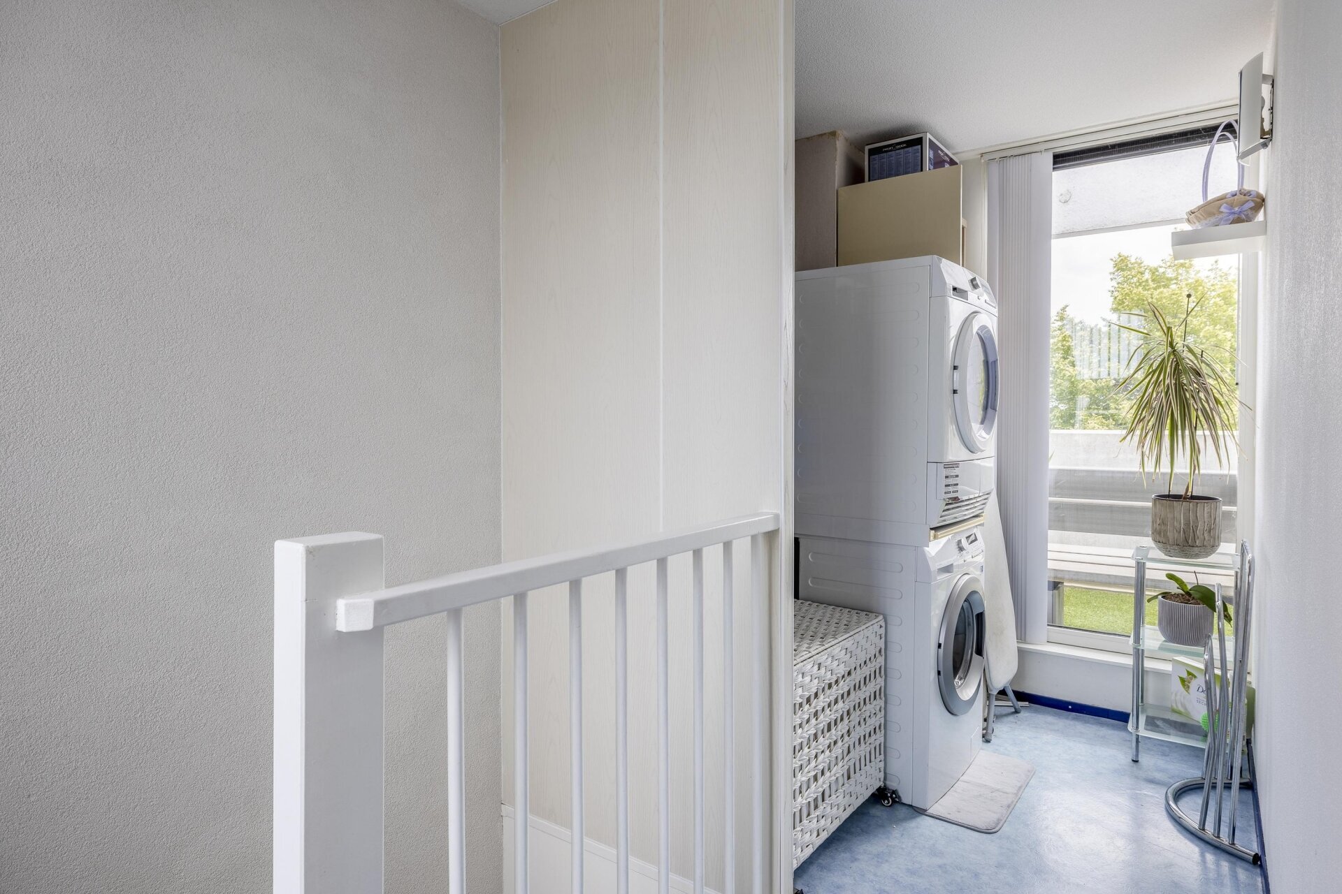 De tweede verdieping biedt nog een extra volwaardige slaapkamer, en daarnaast ruimte voor wasmachine, droger en opslag. Ook hier volop licht en mogelijkheden. Ideaal als logeerkamer, hobbyruimte of tienerkamer. Tevens biedt deze verdieping tot het dakterras gelegen aan de voorzijde van de woning op het zuid oosten.
