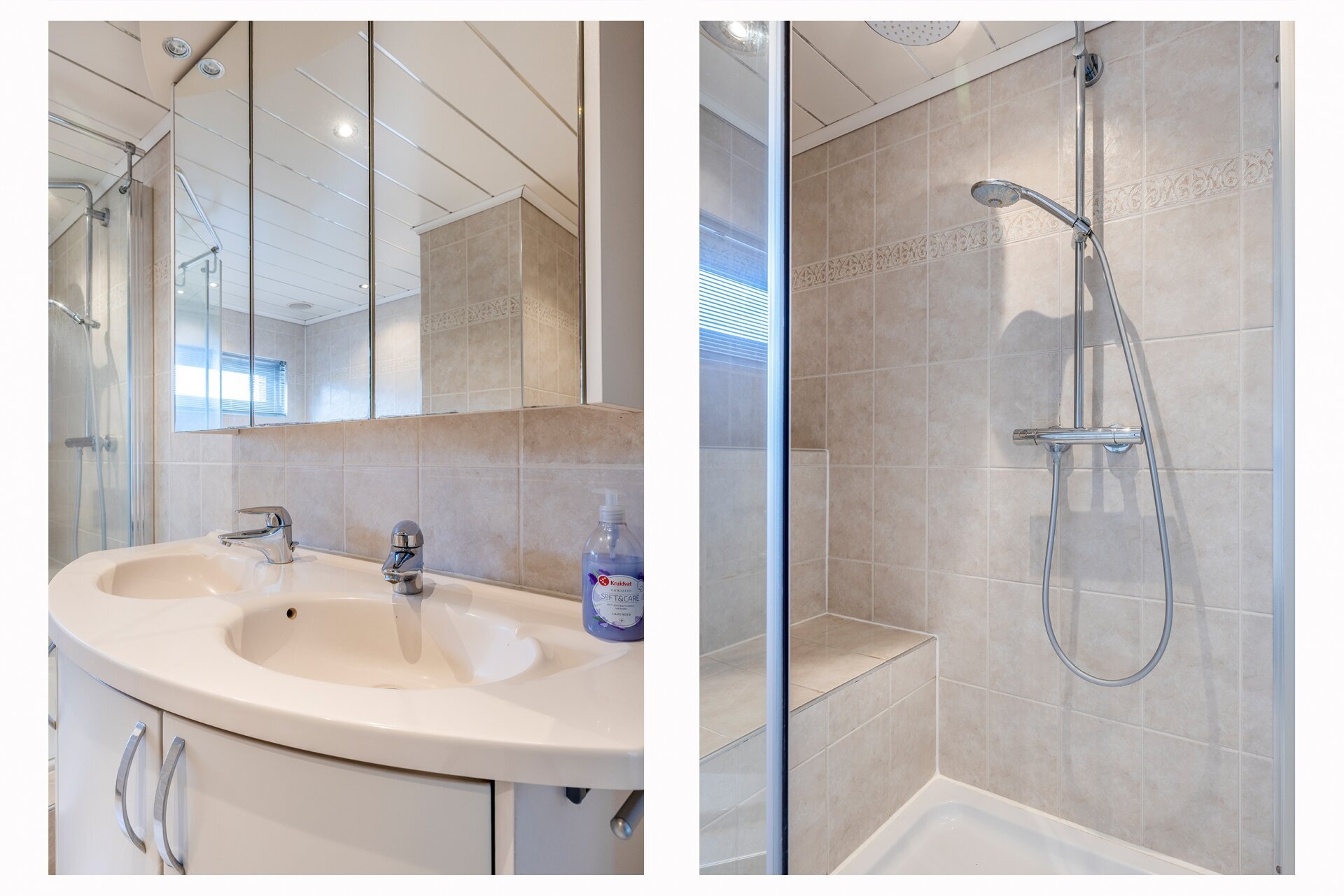 De begane grond voelt ruim, licht en uitnodigend. Ruime gang met toilet. De woonkamer heeft een gezellige zithoek aan de tuinzijde, met toegang tot het heerlijke terras. Dankzij de grote raampartijen komt er veel daglicht binnen, wat het geheel een open en frisse sfeer geeft. De afwerking is modern en warm, met een mooie doorlopende vloer, zachte kleuraccenten en voldoende plek voor een royale eettafel. Hier leef je écht samen, zonder dat je ruimte tekort komt.