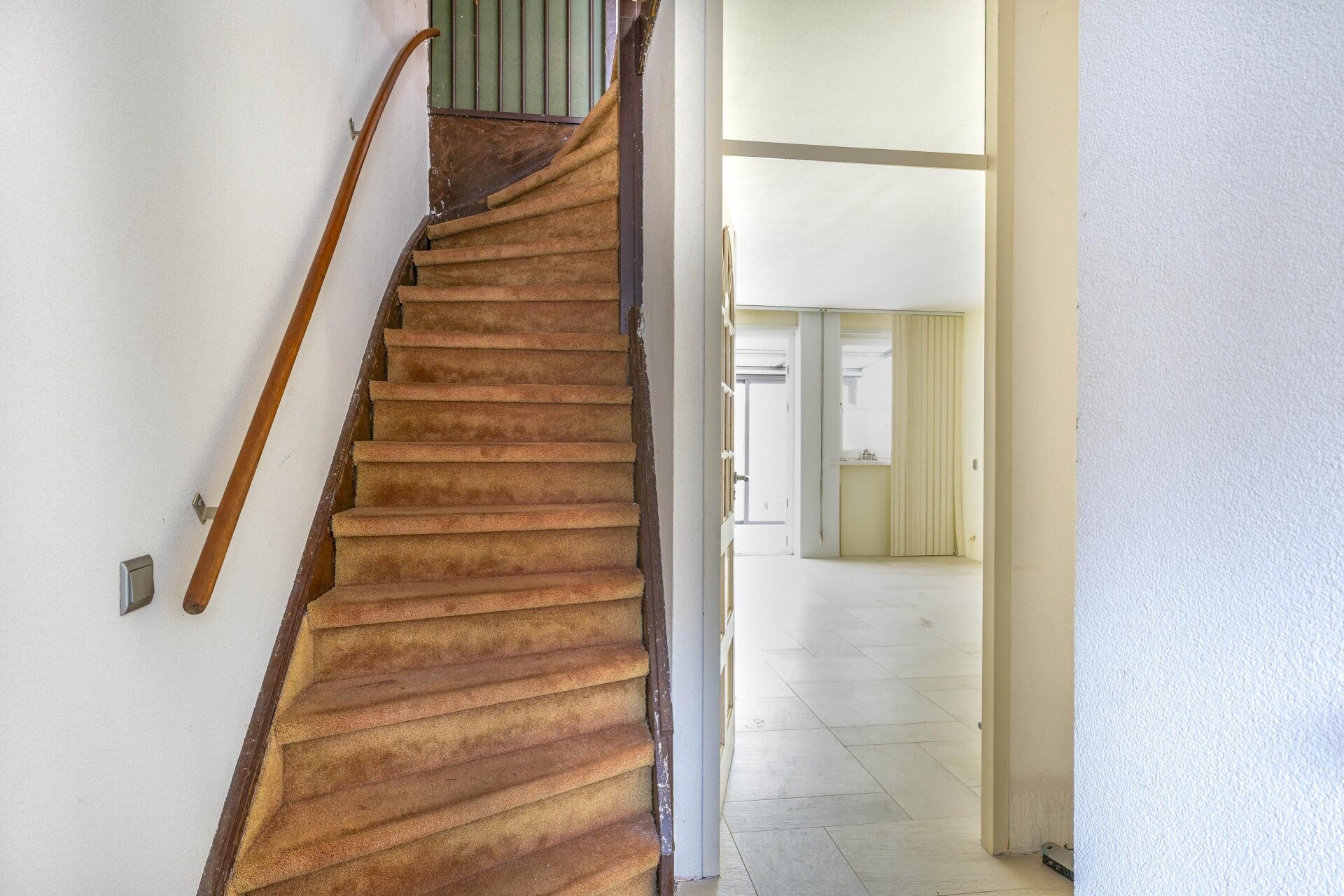 Op de eerste verdieping bevinden zich twee (voormalig drie) slaapkamers, waaronder één zeer ruime hoofdslaapkamer over de volle breedte van de woning. Deze kamer is indien gewenst op te splitsen in twee afzonderlijke kamers, wat deze woning ideaal maakt voor een groter gezin of een combinatie van wonen en werken.