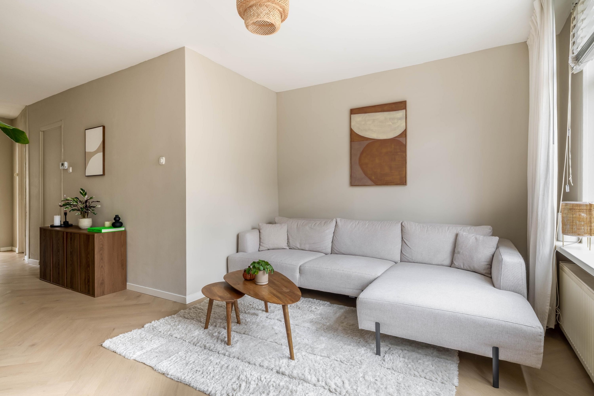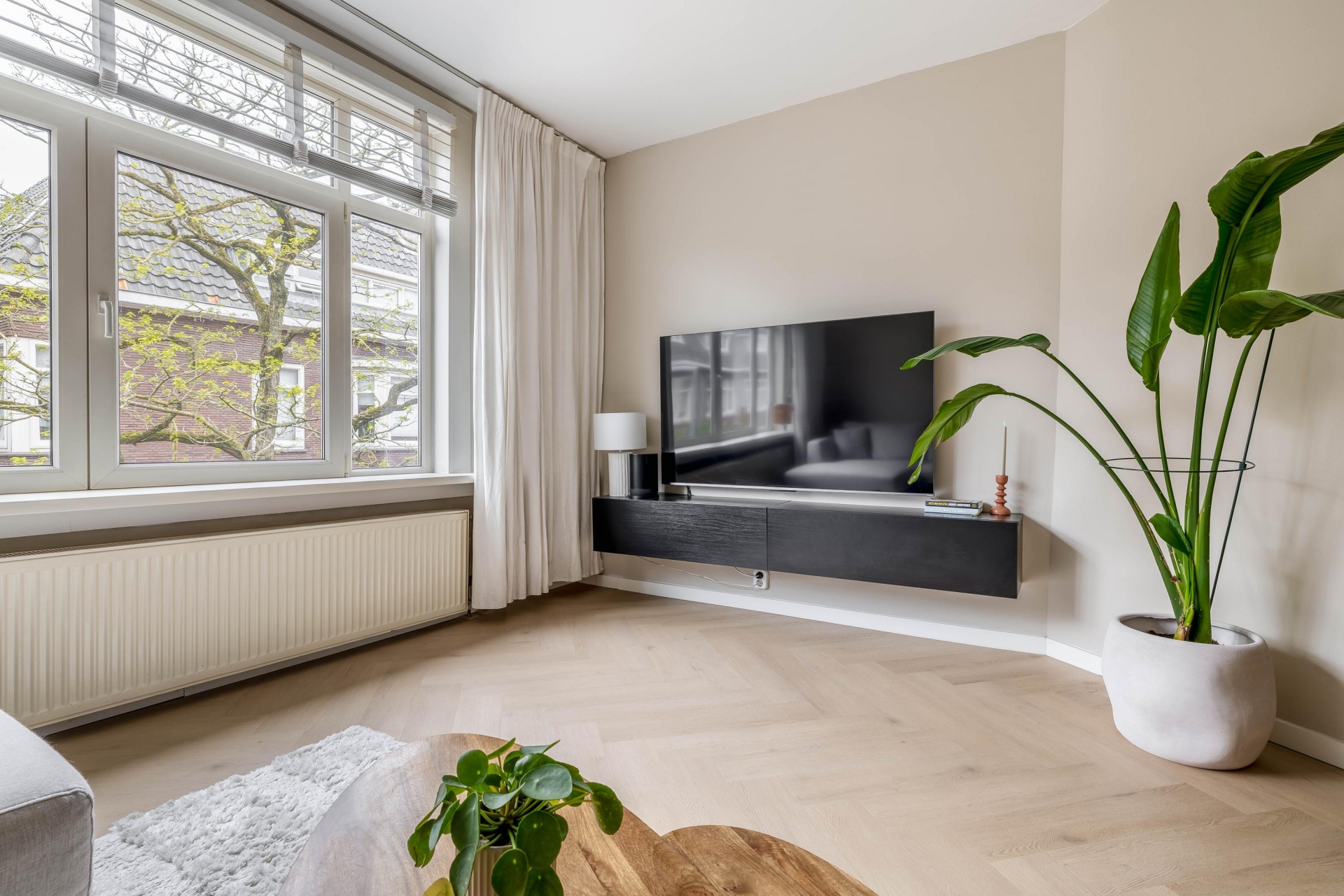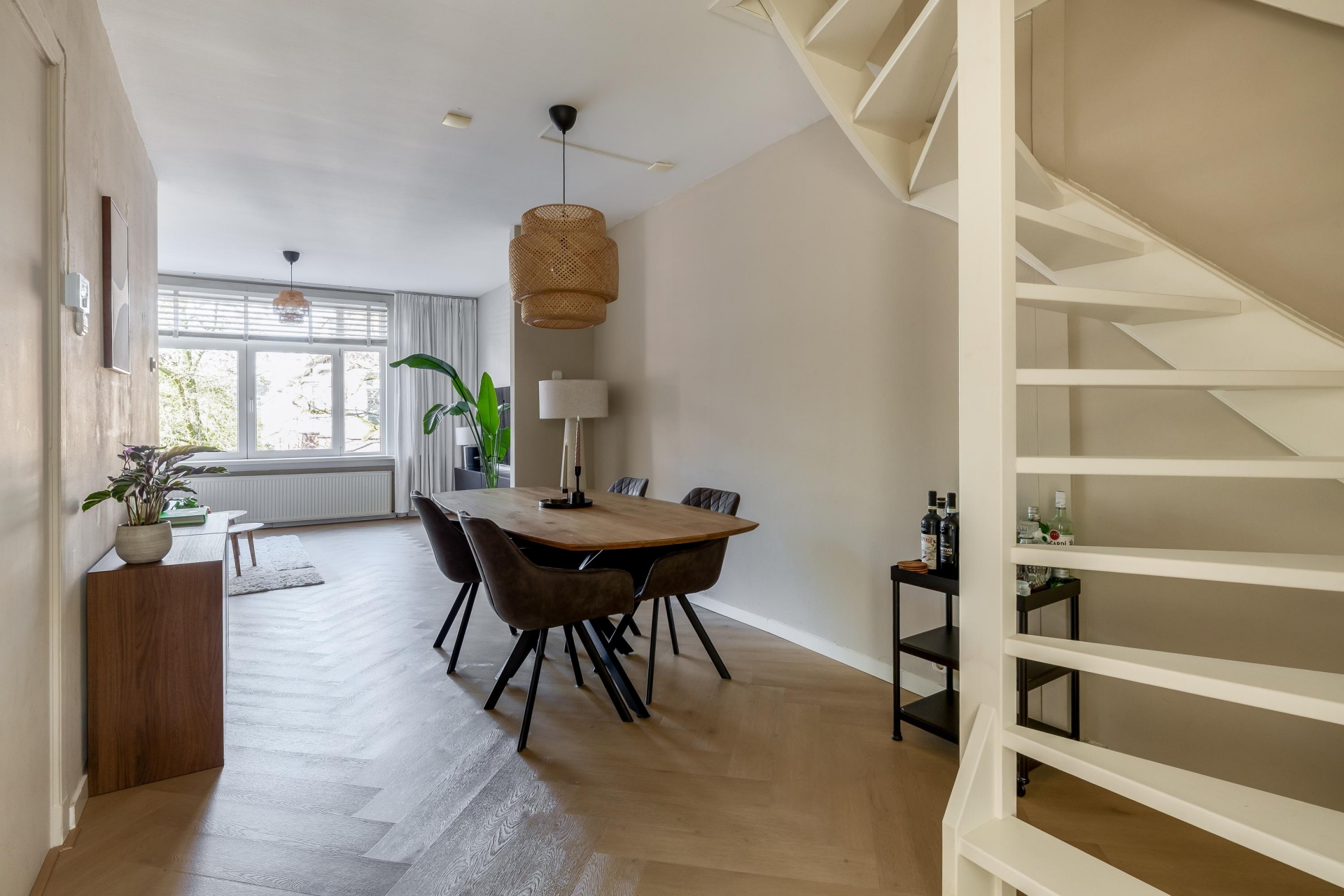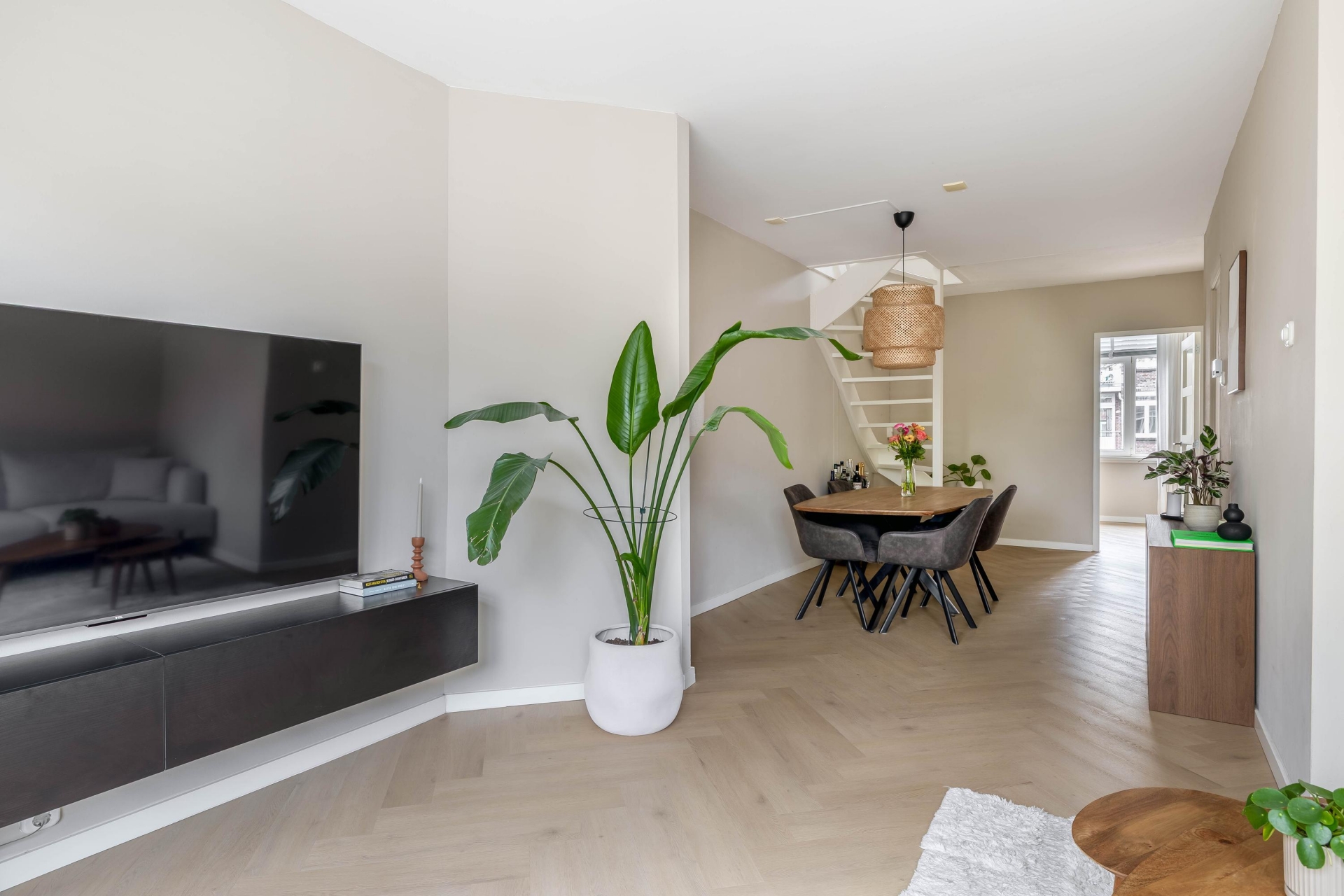 Dit is zo’n huis waar je alleen nog je meubels hoeft neer te zetten en eigenlijk niets meer hoeft te doen. De afwerking is netjes, modern en helemaal van deze tijd. Ideaal voor starters en jonge doorstromers die op zoek zijn naar comfort zonder gedoe. Bij binnenkomst valt meteen de verzorgde uitstraling op. De lichte vloer in visgraatmotief en de rustige kleurstellingen zorgen voor een warme en eigentijdse sfeer die door het hele huis is doorgetrokken.