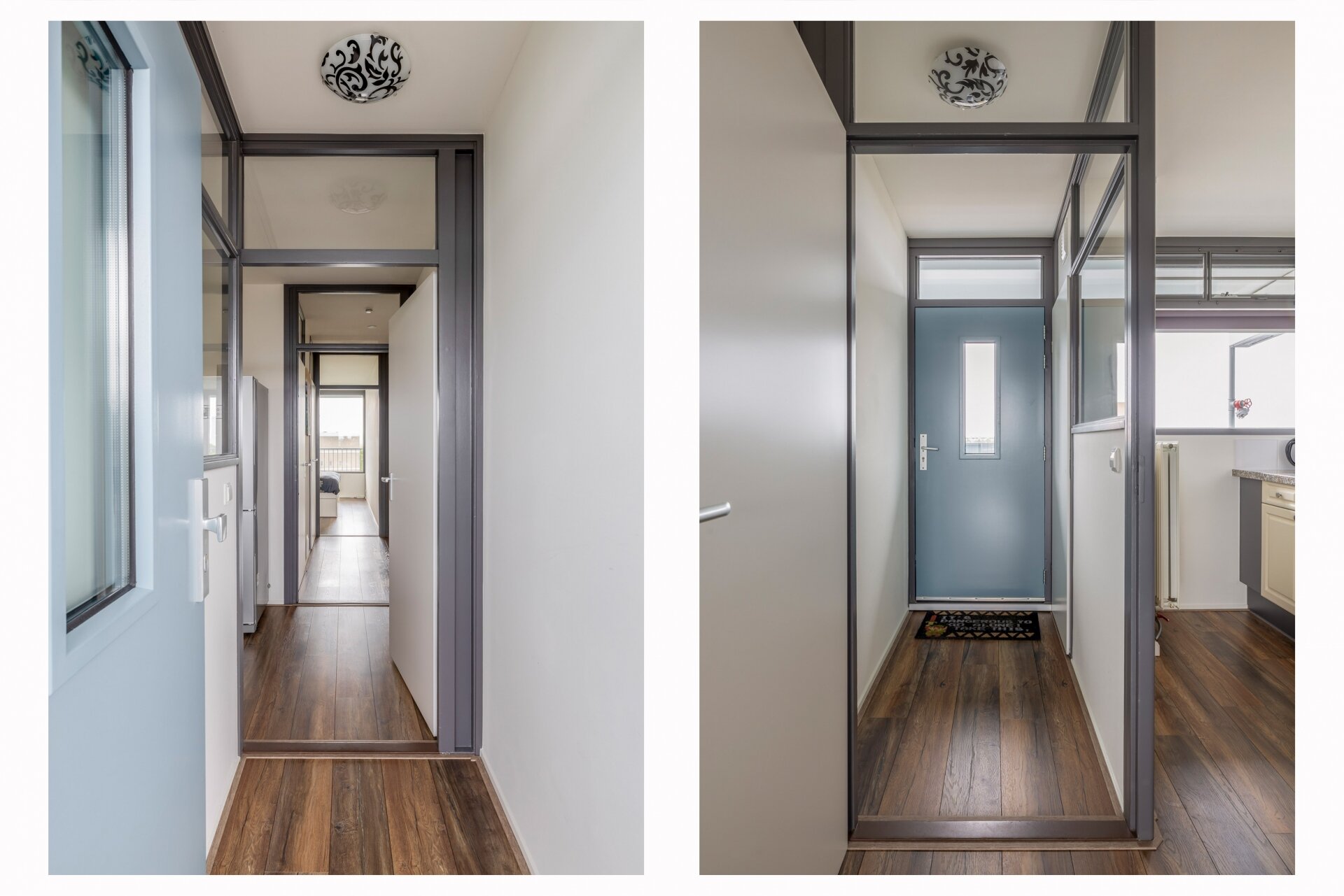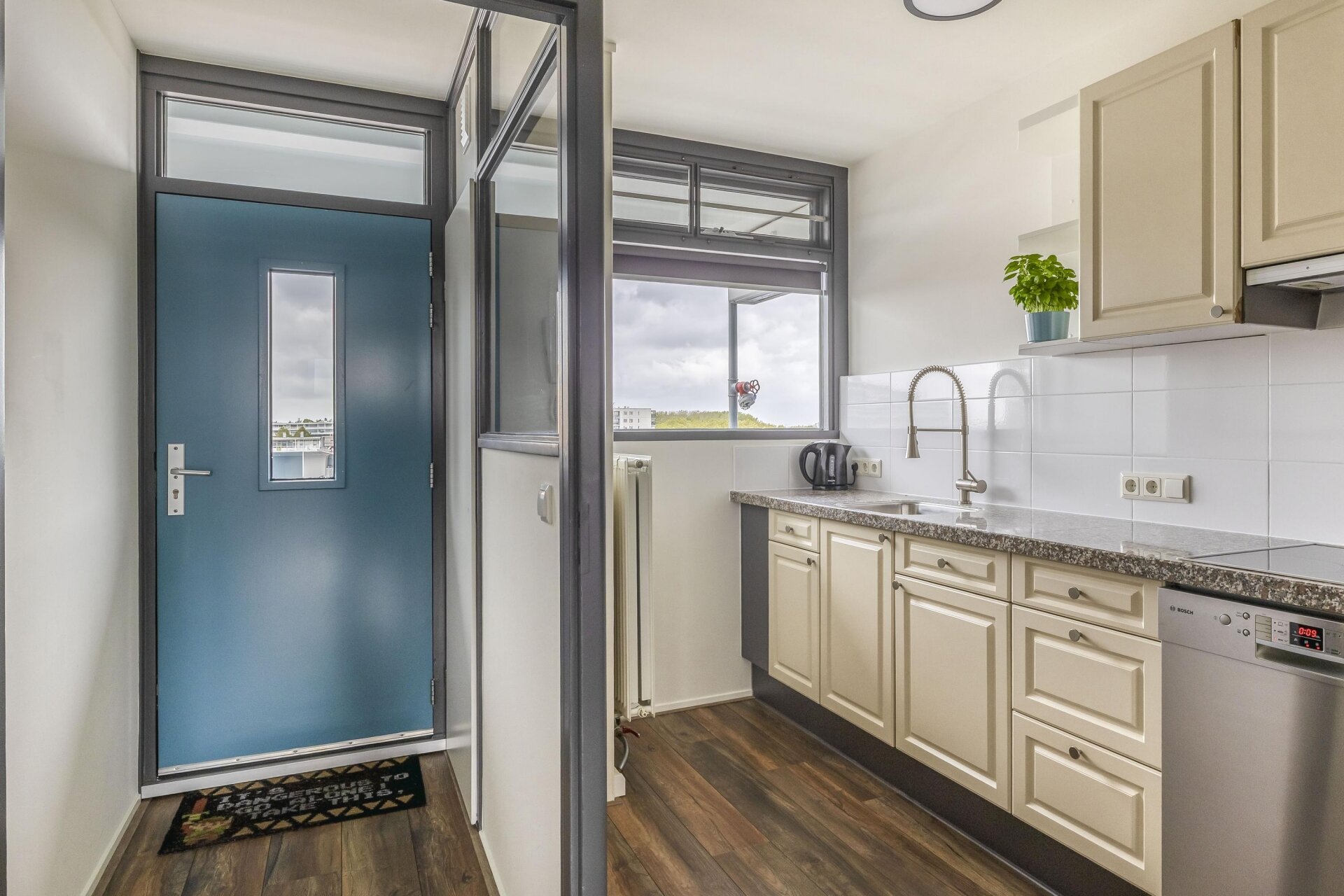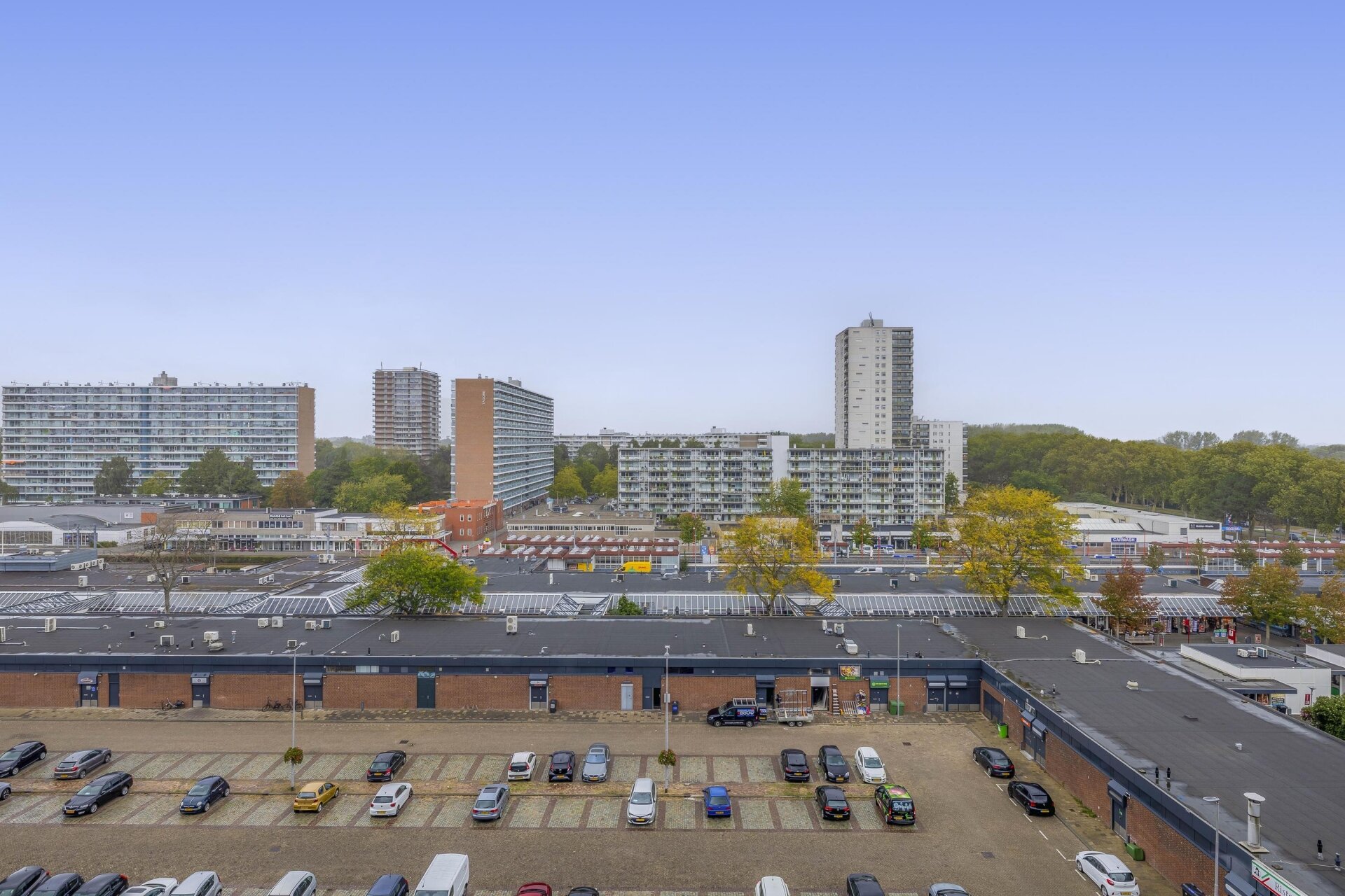 Middels de lift kom je uit op de 8e verdieping, waar het appartement is gelegen. Entree en hal met de meterkast. Dichte keuken aan de voorzijde van het complex. De keuken is voorzien van diverse (inbouw)apparatuur en een close-in boiler van 10 liter (eigendom, 2015). Vanuit de keuken is er toegang tot de woonkamer. De ruime woonkamer is gelegen aan de achterzijde van het complex en biedt vanaf hier een waanzinnig weids uitzicht over de wijk. Middels een openslaande deur is het ruime balkon toegankelijk. Deze is ook nog eens zonnig gesitueerd, namelijk op het zuiden. Gegarandeerd dat je hier optimaal gaat genieten van de zon en het uitzicht!