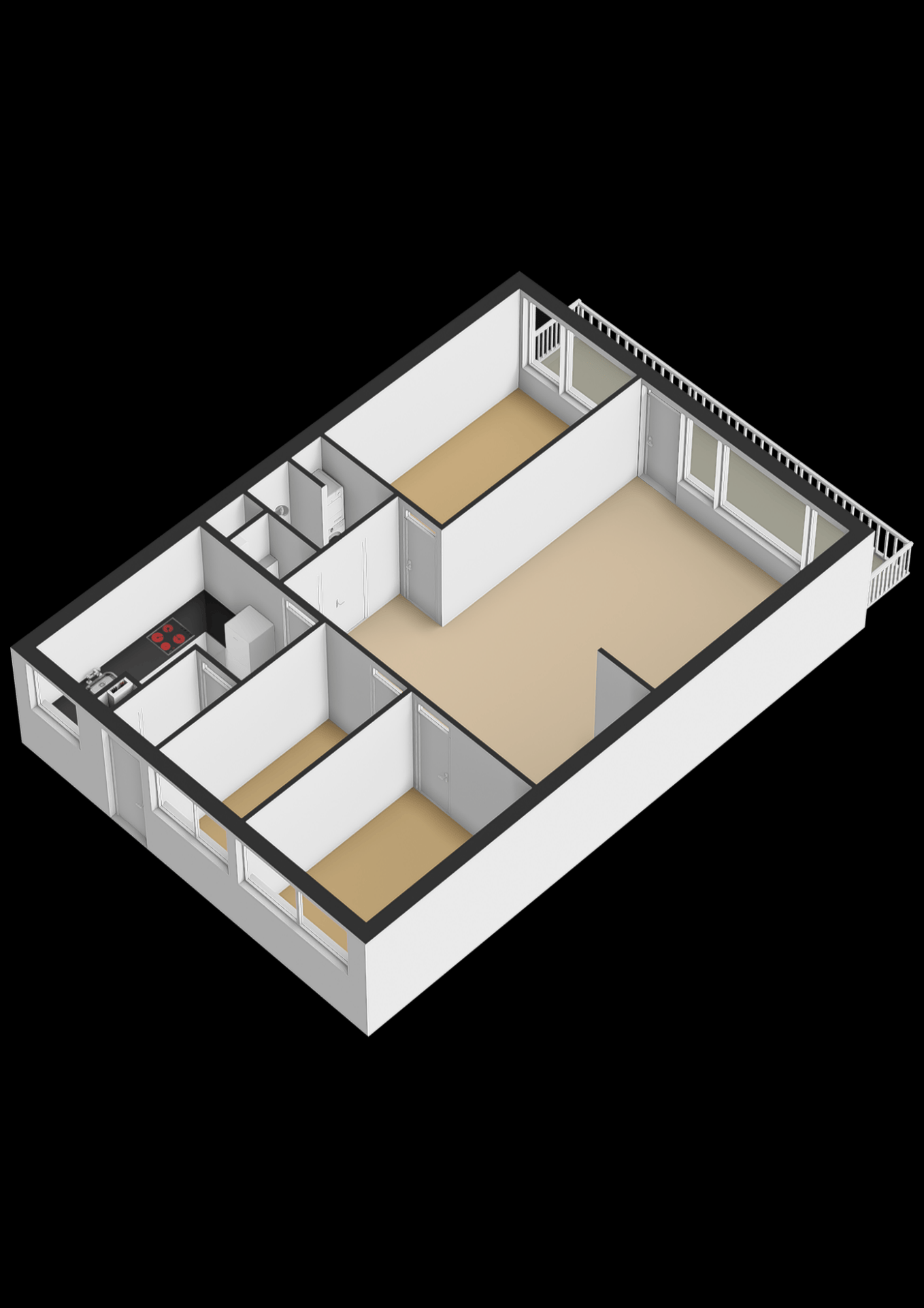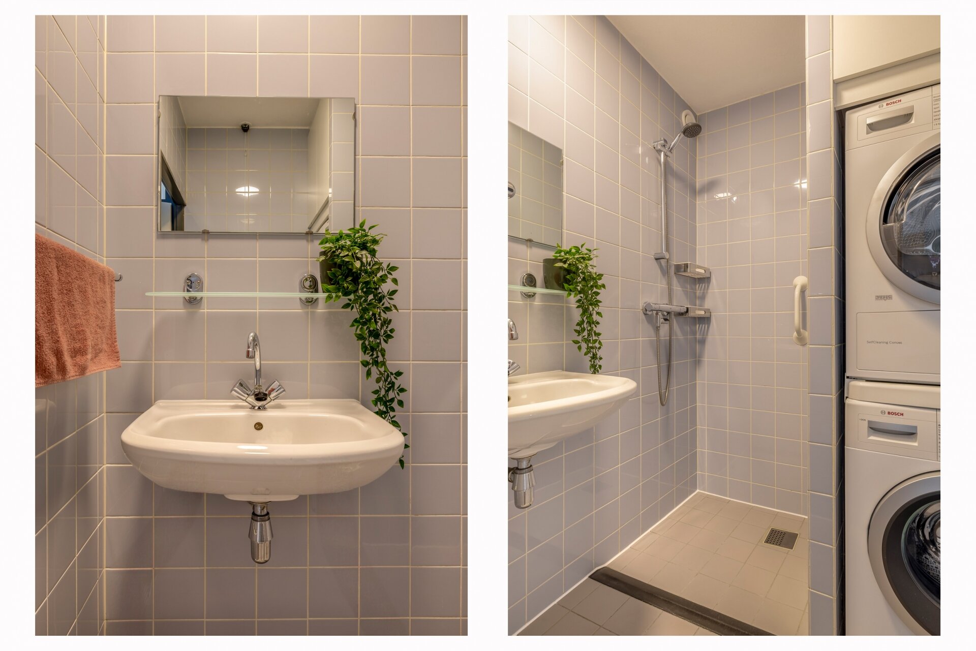 Vanuit de woonkamer zijn de 3 slaapkamers, de badkamer en het toilet toegankelijk. De slaapkamers hebben een oppervlakte van circa 13, 10 en 7 m². De inpandige badkamer is volledig betegeld en is voorzien van een douche, wastafel en de aansluiting voor de wasmachine en droger. Het toilet bevind zich separaat naast de badkamer en is uitgerust met een hangend toilet en fonteintje. Tevens is hier ook de elektrische boiler (50L, eigendom uit 2025) geplaatst. Het gehele appartement, m.u.v. de natte ruimtes, zijn voorzien van een fraaie laminaatvloer en een verlaagd plafond met spots.