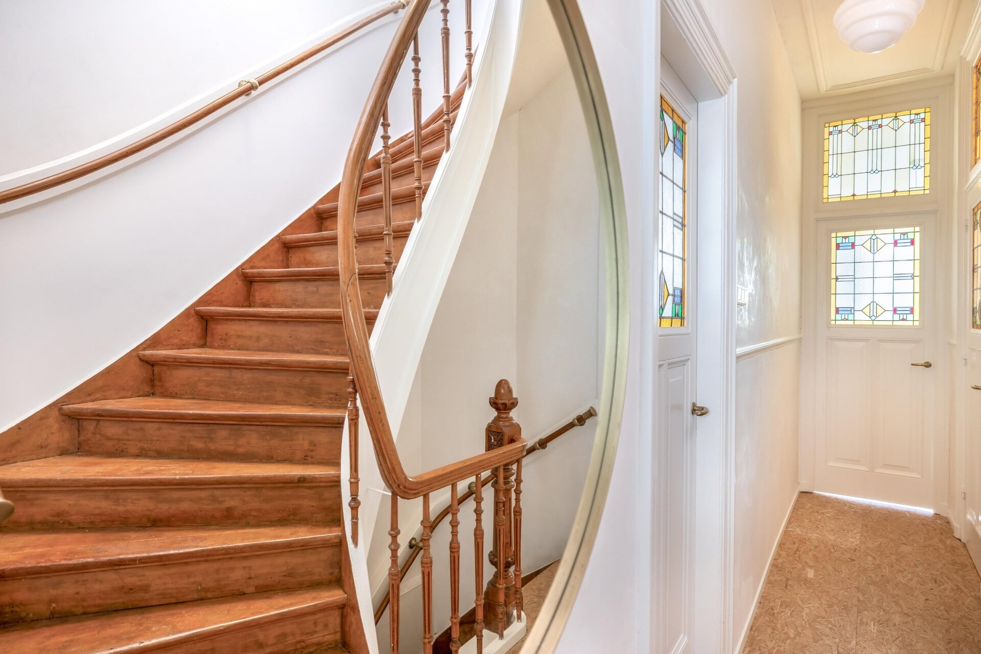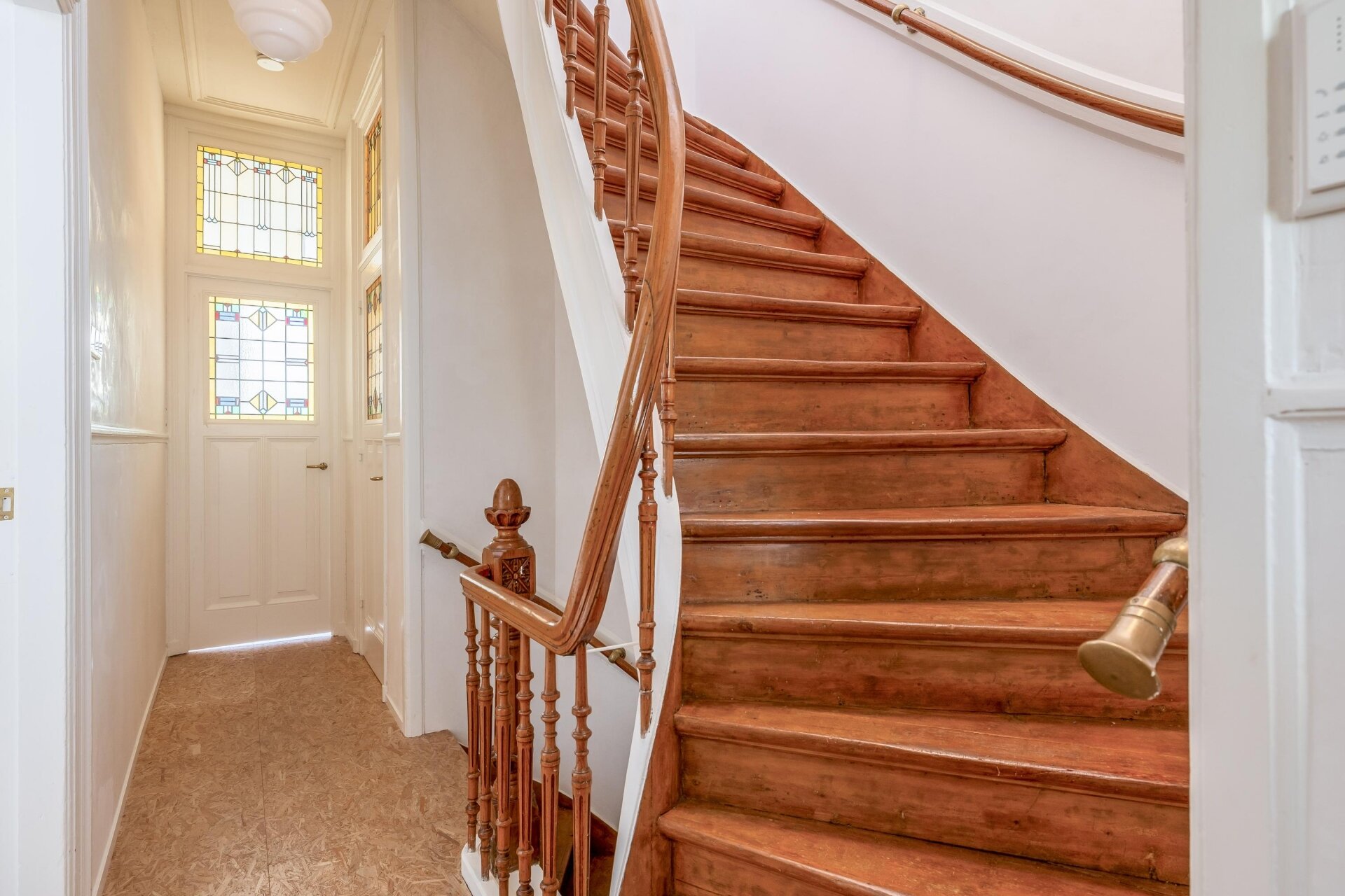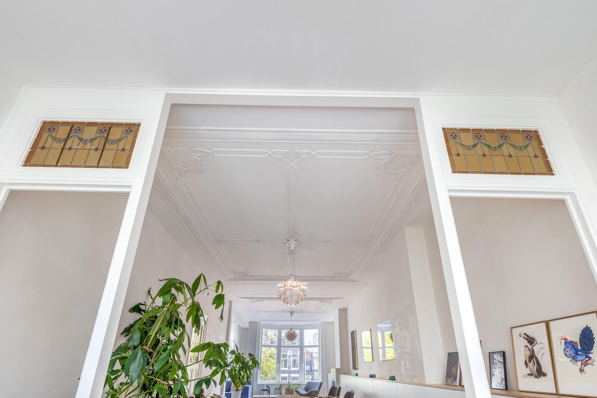 Wat meteen opvalt bij binnenkomst is het gevoel van ruimte. Op de tweede verdieping wordt je verrast door het karakter van deze woning vanuit vervlogen jaren met de prachtige ornamenten, glas-in-lood en paneeldeuren. Dit staat in prachtig contrast met de 2 verdiepingen erboven.