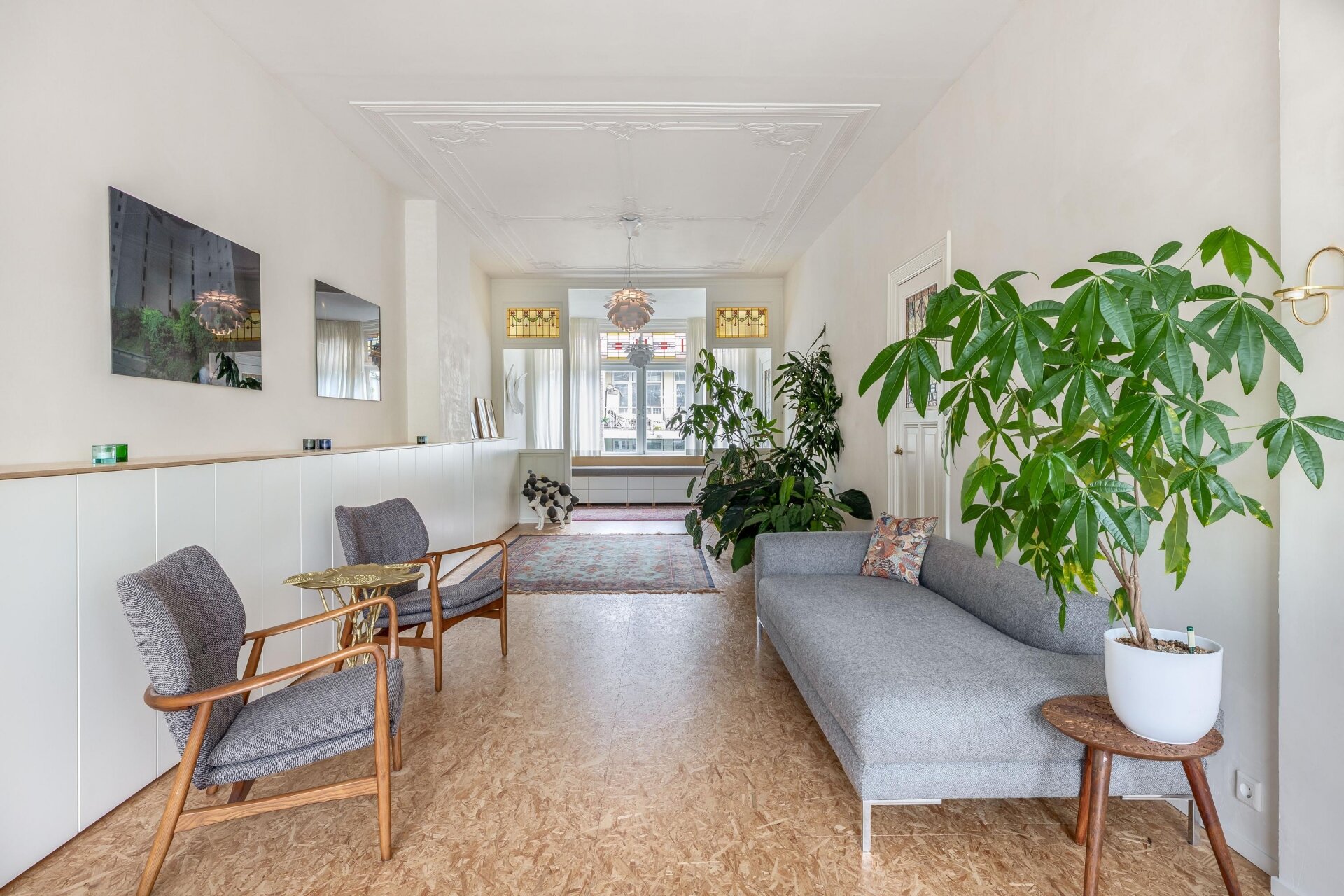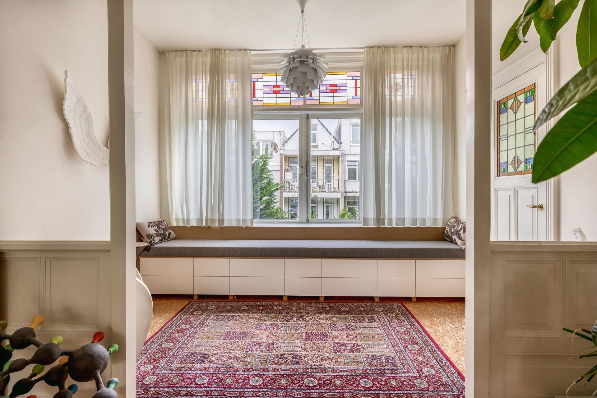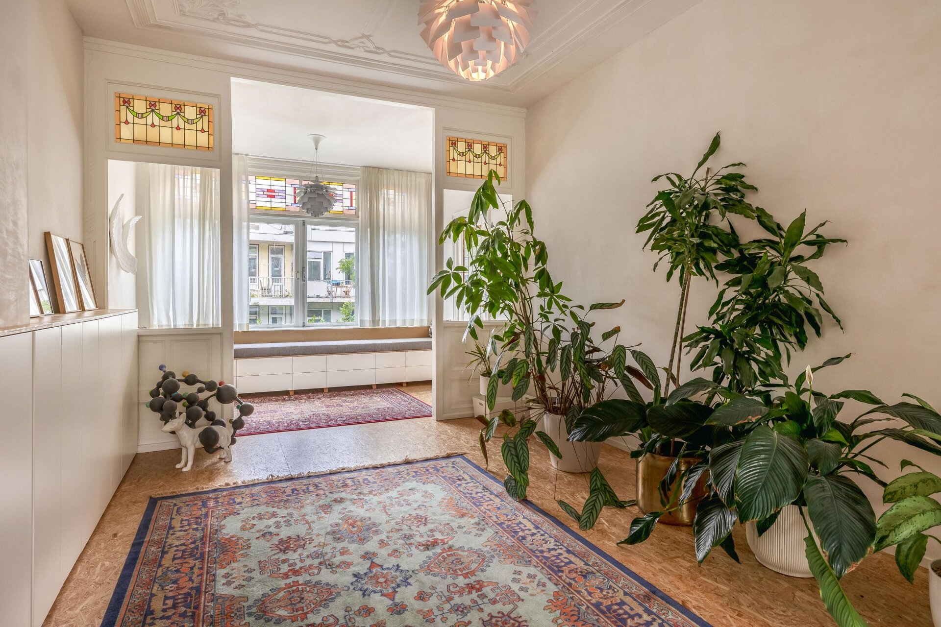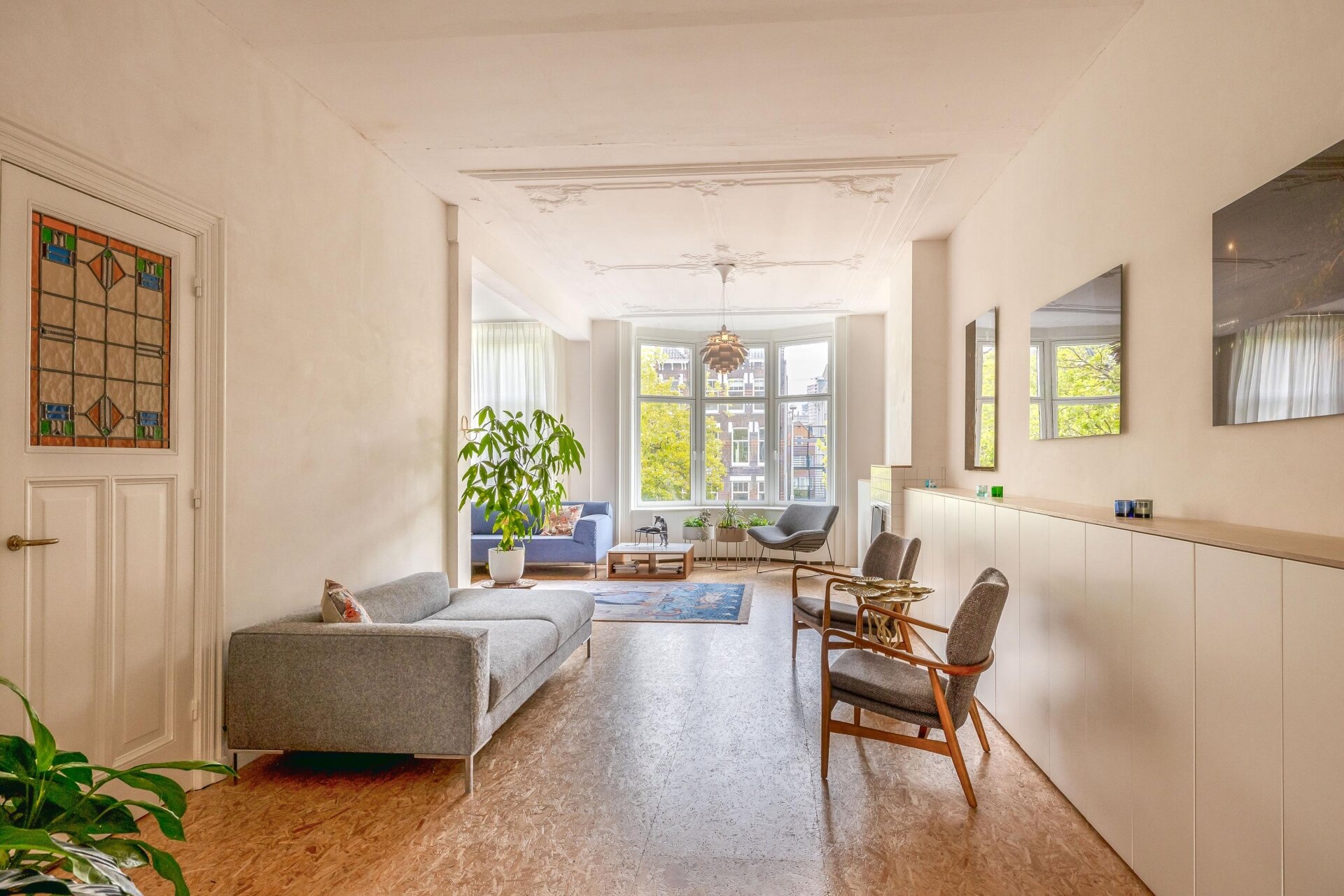 De woning is met veel liefde en visie verbouwd onder leiding van de huidige eigenaresse, die zelf architect is. Originele elementen zoals glas-in-loodramen, paneeldeuren en plafondornamenten zijn behouden gebleven en vormen een prachtig contrast met de moderne afwerking, slimme maatwerkkasten en open ruimtes.