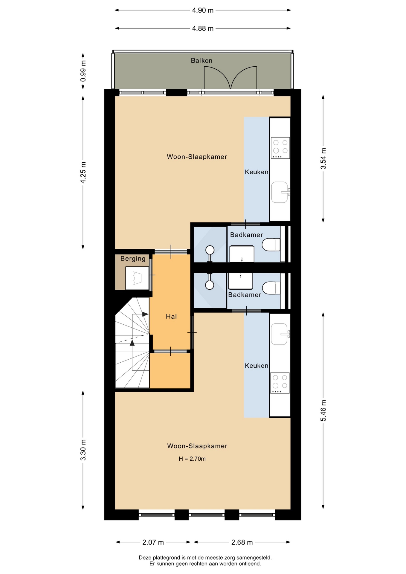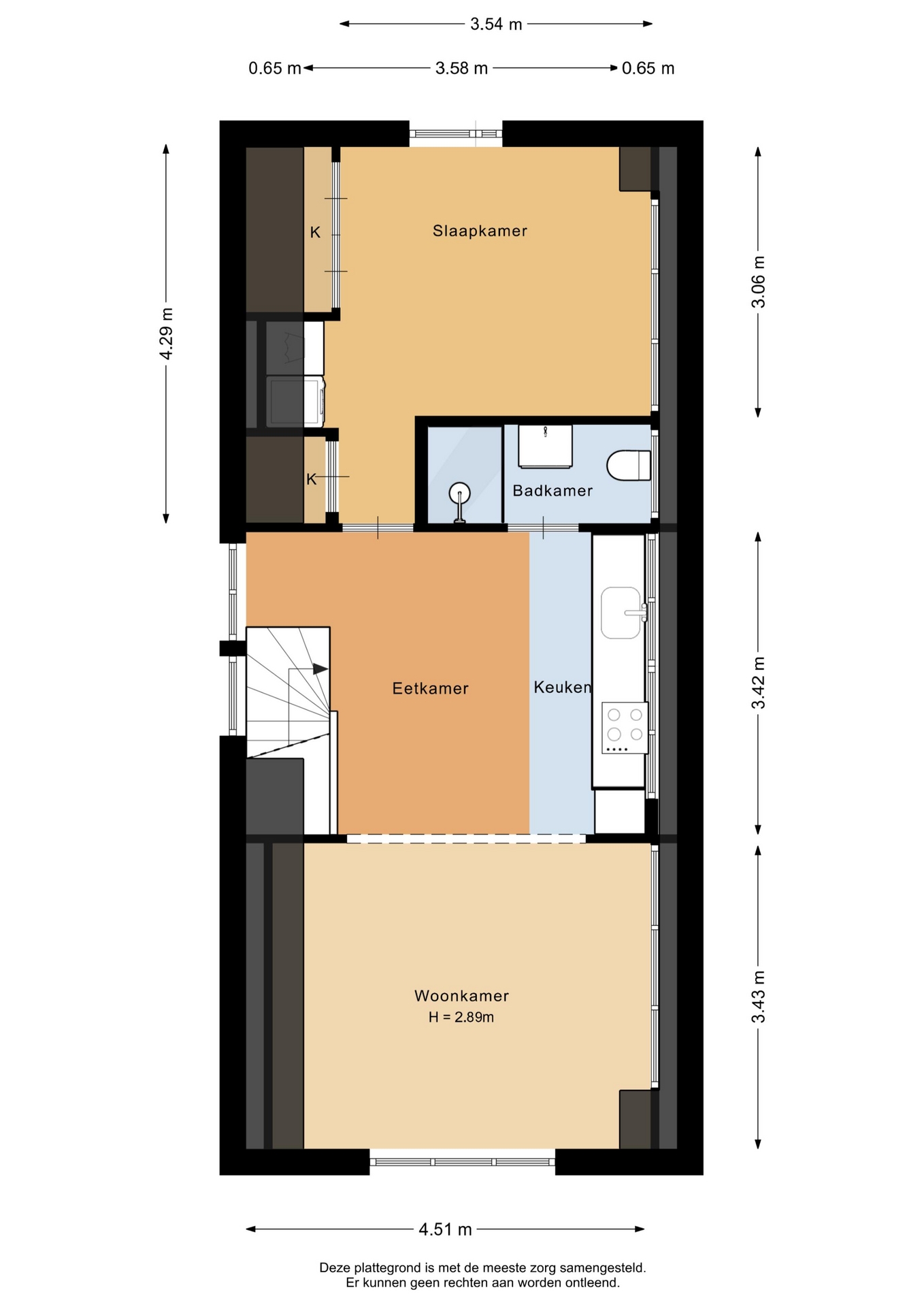 “Deze informatie is door ons met de nodige zorgvuldigheid samengesteld. Onzerzijds wordt echter geen enkele aansprakelijkheid aanvaard voor enige onvolledigheid, onjuistheid of anderszins, dan wel de gevolgen daarvan. Alle opgegeven maten en oppervlakten zijn indicatief.”