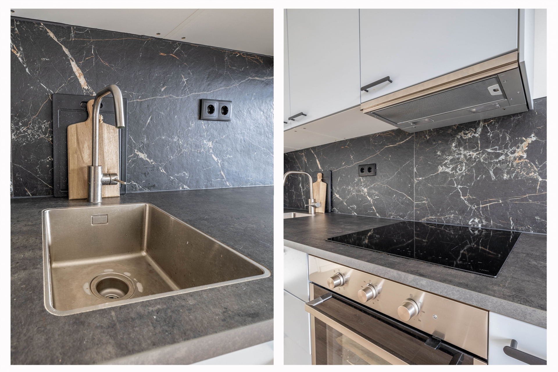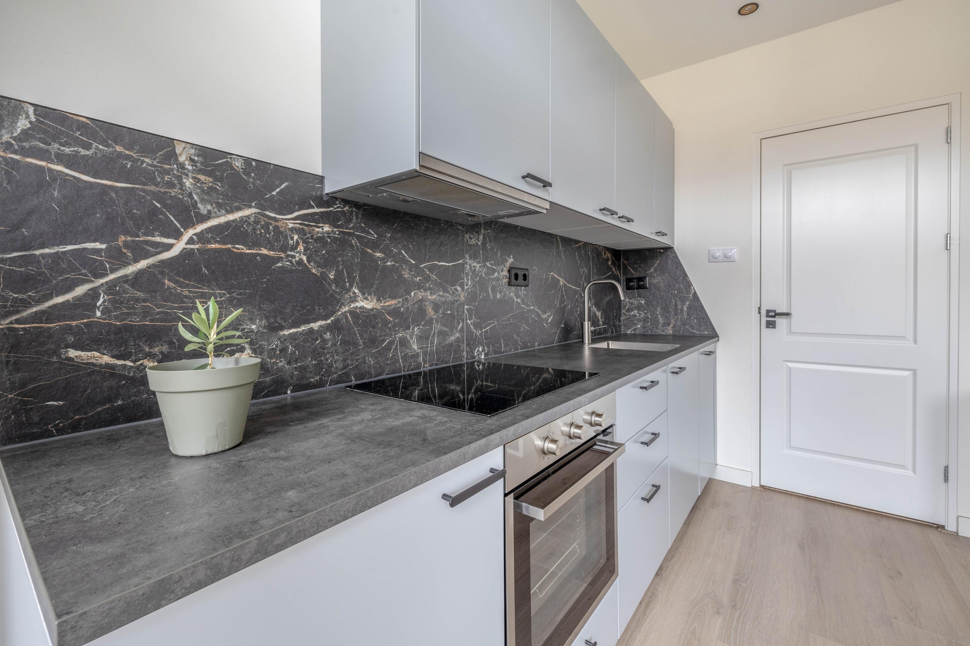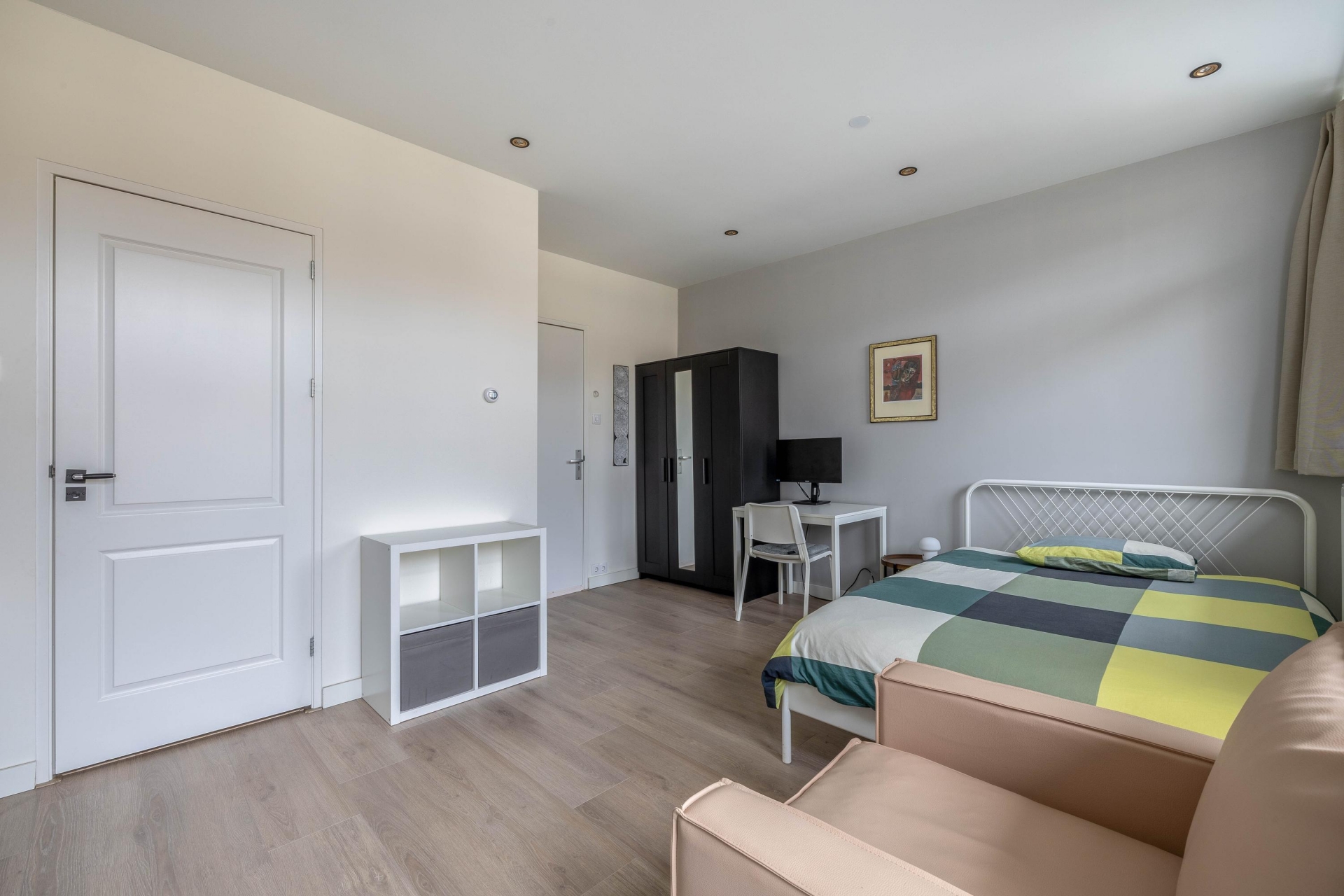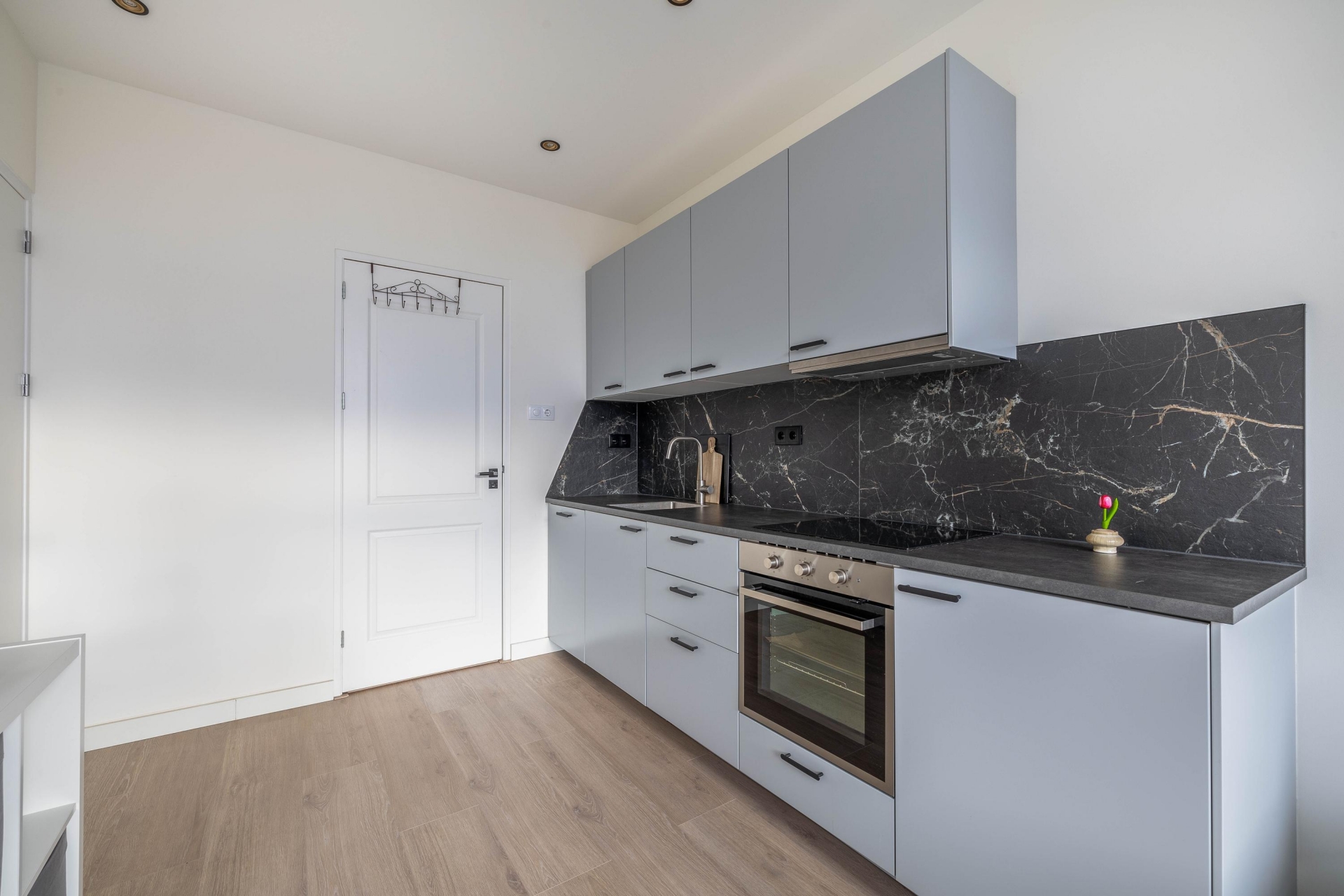 Slaapkamer/Studio 2 ligt aan de zuidwestzijde, waardoor er veel licht naar binnen valt. Ook hier is de afwerking hoogwaardig met een moderne keuken en een frisse badkamer.