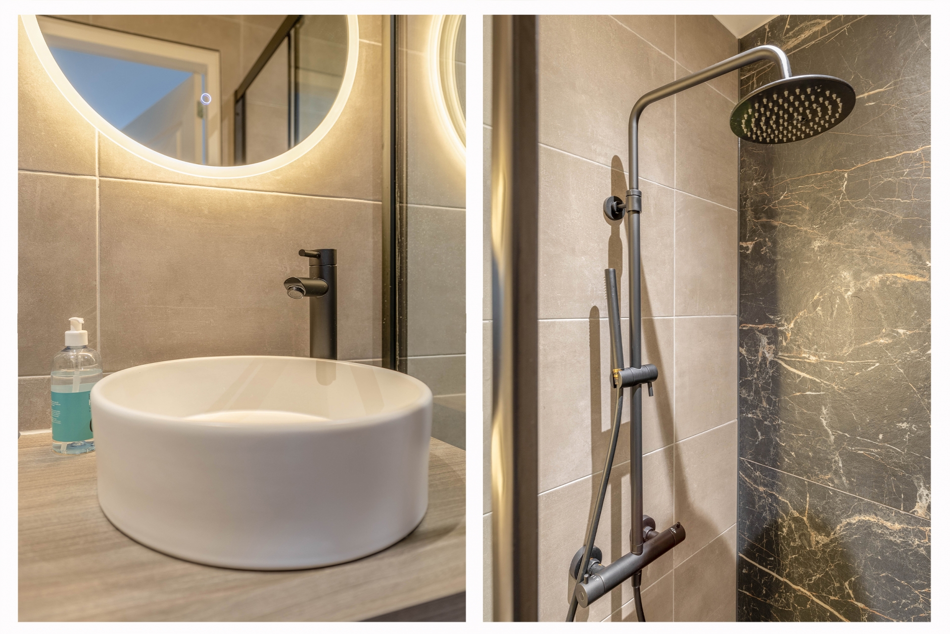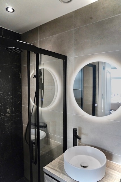 De etage eronder bestaat uit twee slaapkamers: beide zijn strak afgewerkt, modern ingericht en voorzien van een eigen badkamer en keuken. Deze hebben voorheen gediend als zelfstandige woonstudio’s voor verhuur. Ideaal voor mensen die kosteloos willen wonen boven, en beneden willen verhuren. De hypotheek is dan direct terugverdiend! Ook ideaal voor dubbele bewoning met studerende kinderen, voor een eigen werk-studioplek, mantelzorg of voor een belegger. Drie verhuur vergunningen zijn verleend voor de hele woning