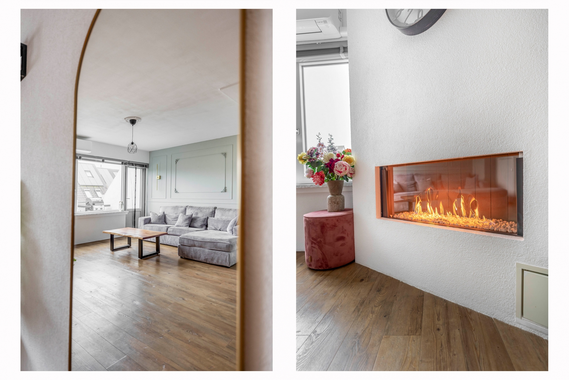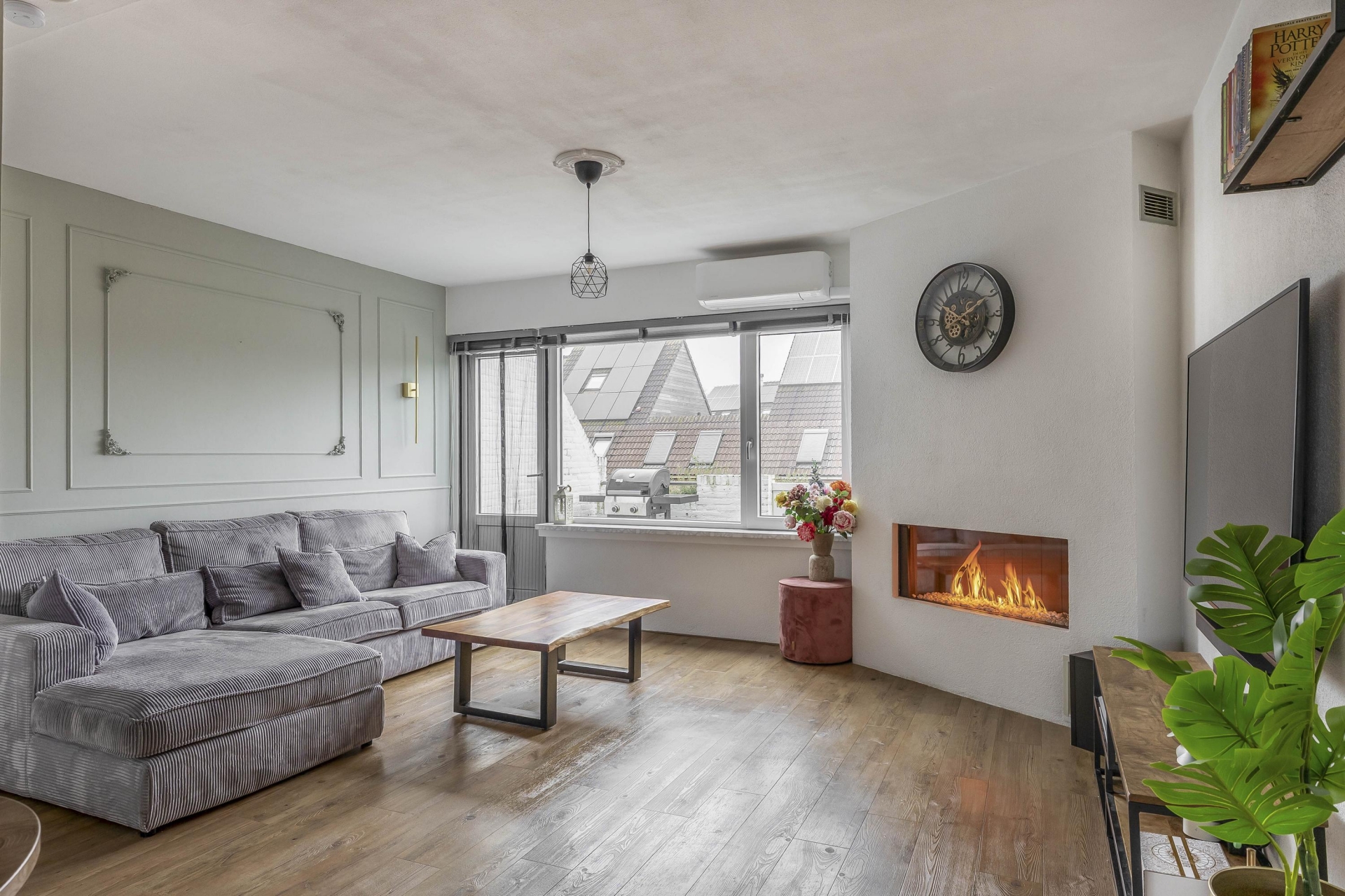 LICHTE WOONKAMER MET SFEERVOLLE GASKACHEL EN AIRCO