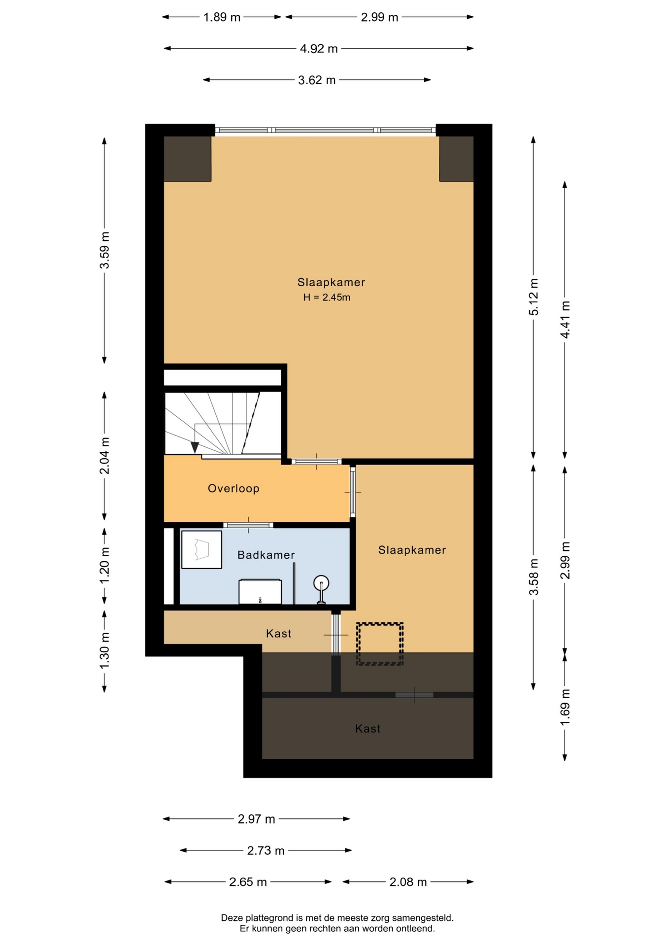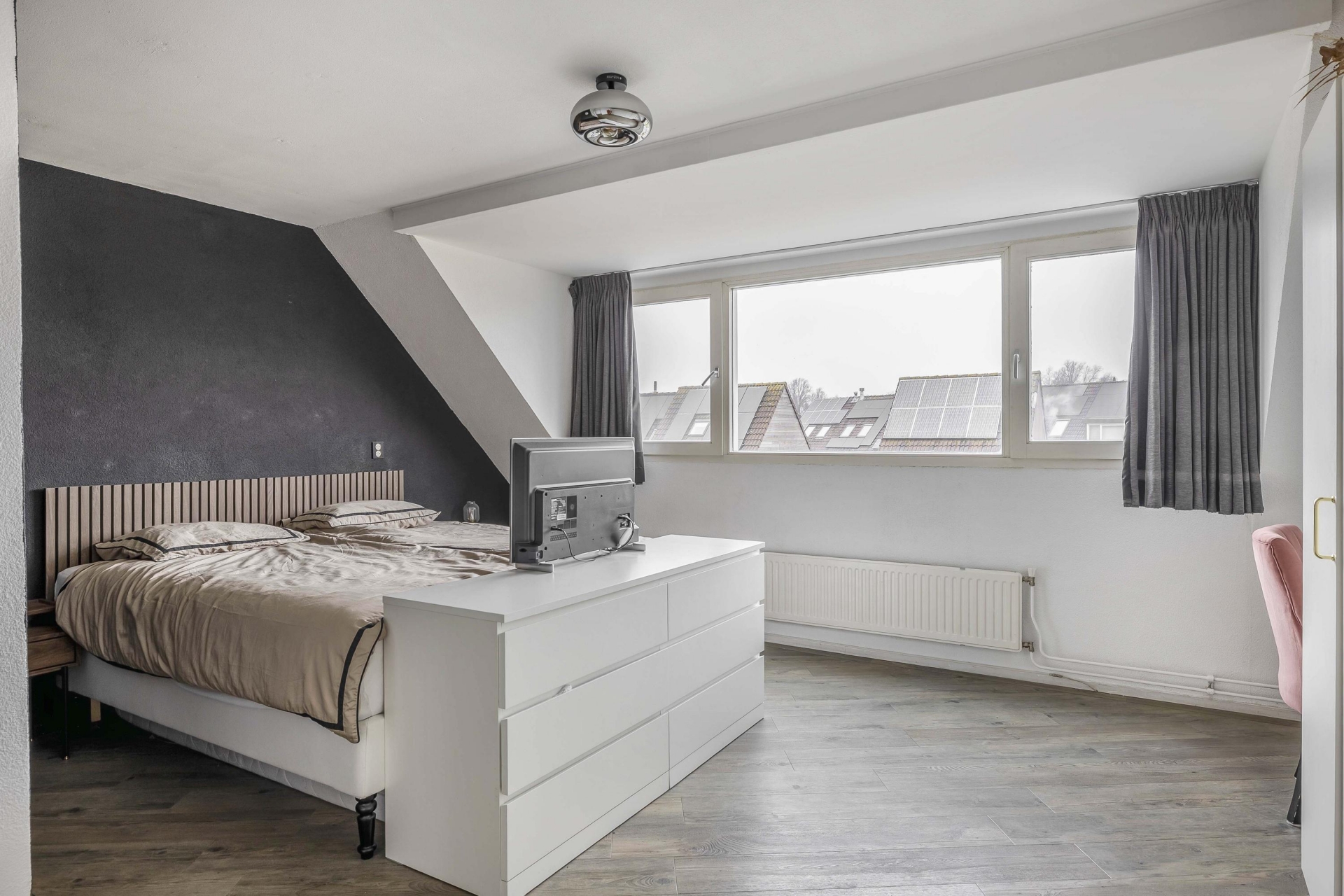 Op de bovenverdieping vind je twee goed bemeten slaapkamers. De grootste slaapkamer bevindt zich aan de achterzijde en is heerlijk licht dankzij de dakkapel. Ook de tweede slaapkamer is ruim genoeg voor bijvoorbeeld een thuiswerkplek, kinderkamer of logeerkamer. Dankzij de slimme indeling en extra bergruimte op deze verdieping is het ook mogelijk om relatief eenvoudig een derde slaapkamer te realiseren, mocht daar behoefte aan zijn.