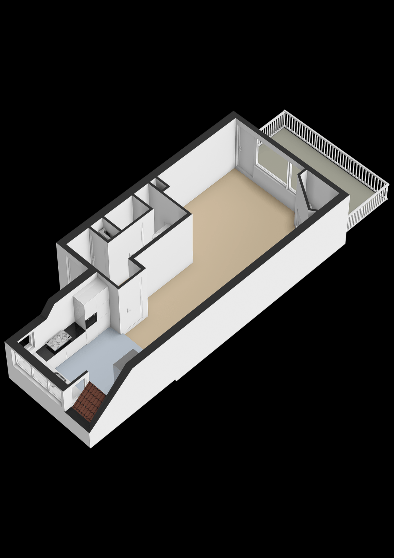 Dankzij de grote ramen komt er veel licht naar binnen en dat maakt het een fijne plek om thuis te komen na een drukke werkdag. Vanuit de woonkamer heb je directe toegang tot het balkon, dat op het noordwesten ligt. Hier kun je in de middag en avond heerlijk in de zon zitten met een goed boek of een borrel.