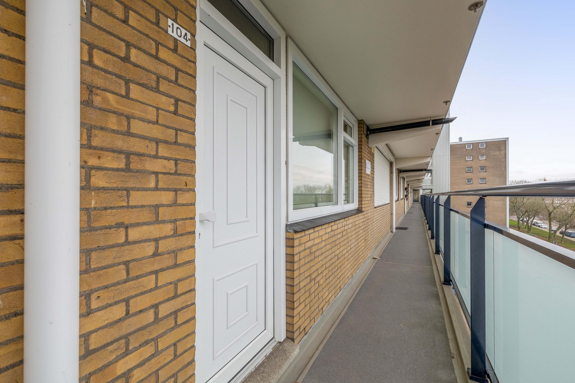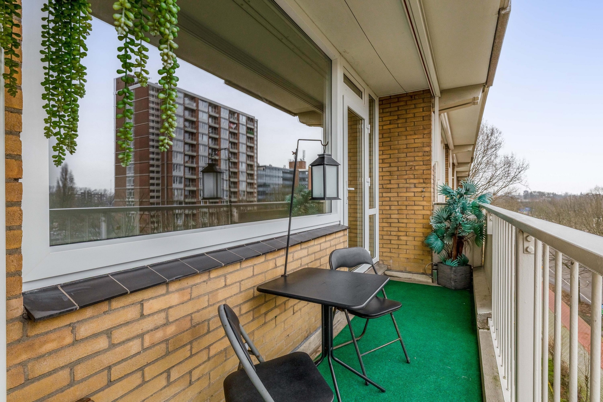De ruime woonkamer ligt aan de achterzijde en is dankzij de grote raampartij op het zuidwesten heerlijk licht. Vanuit hier heb je een vrij uitzicht en stap je direct het balkon op: een fijne verlenging van de leefruimte.