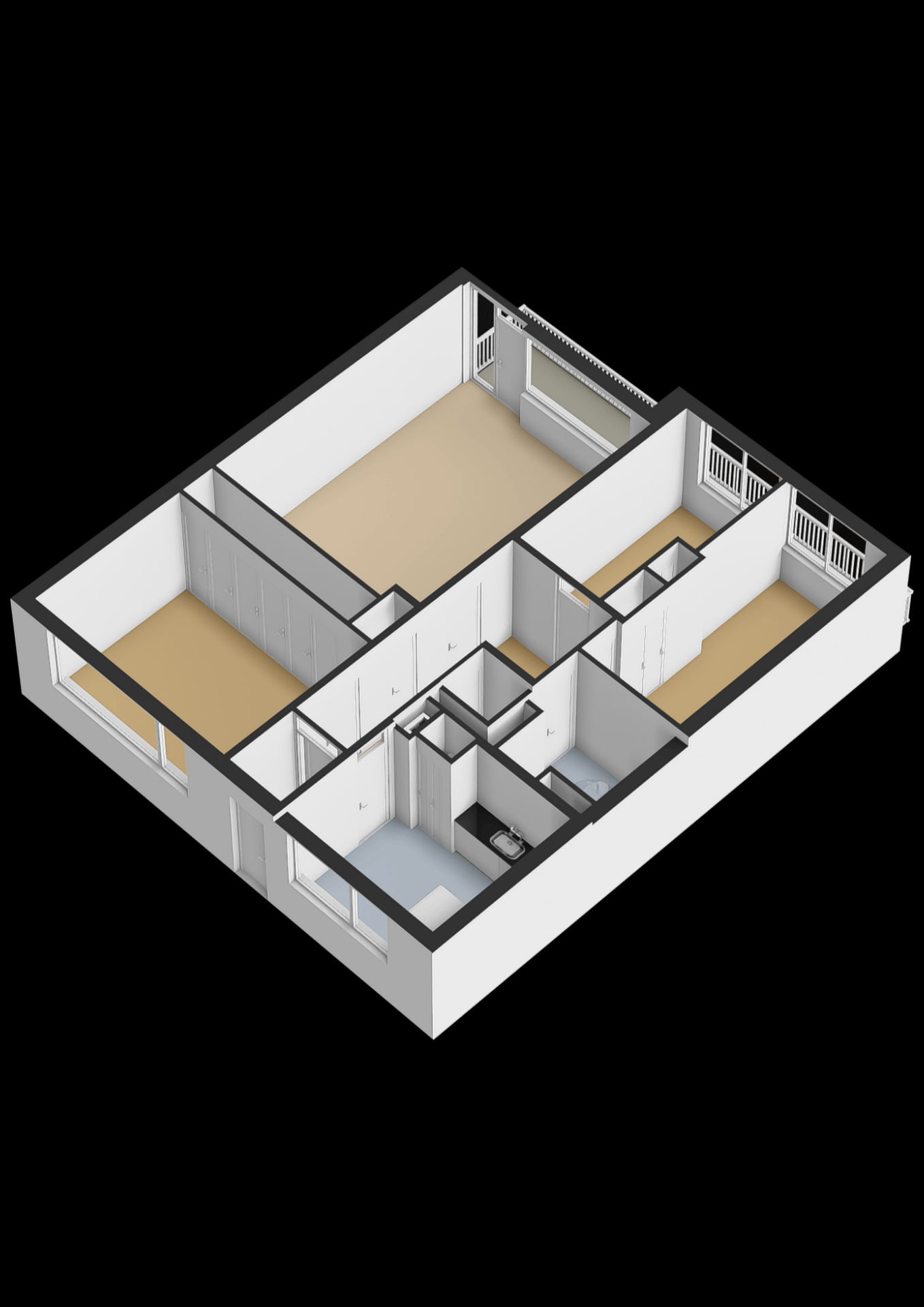 Het appartement beschikt over drie goed bemeten slaapkamers. De grootste slaapkamer bevindt zich aan de voorzijde en biedt ruimte voor een tweepersoonsbed en een grote kast.