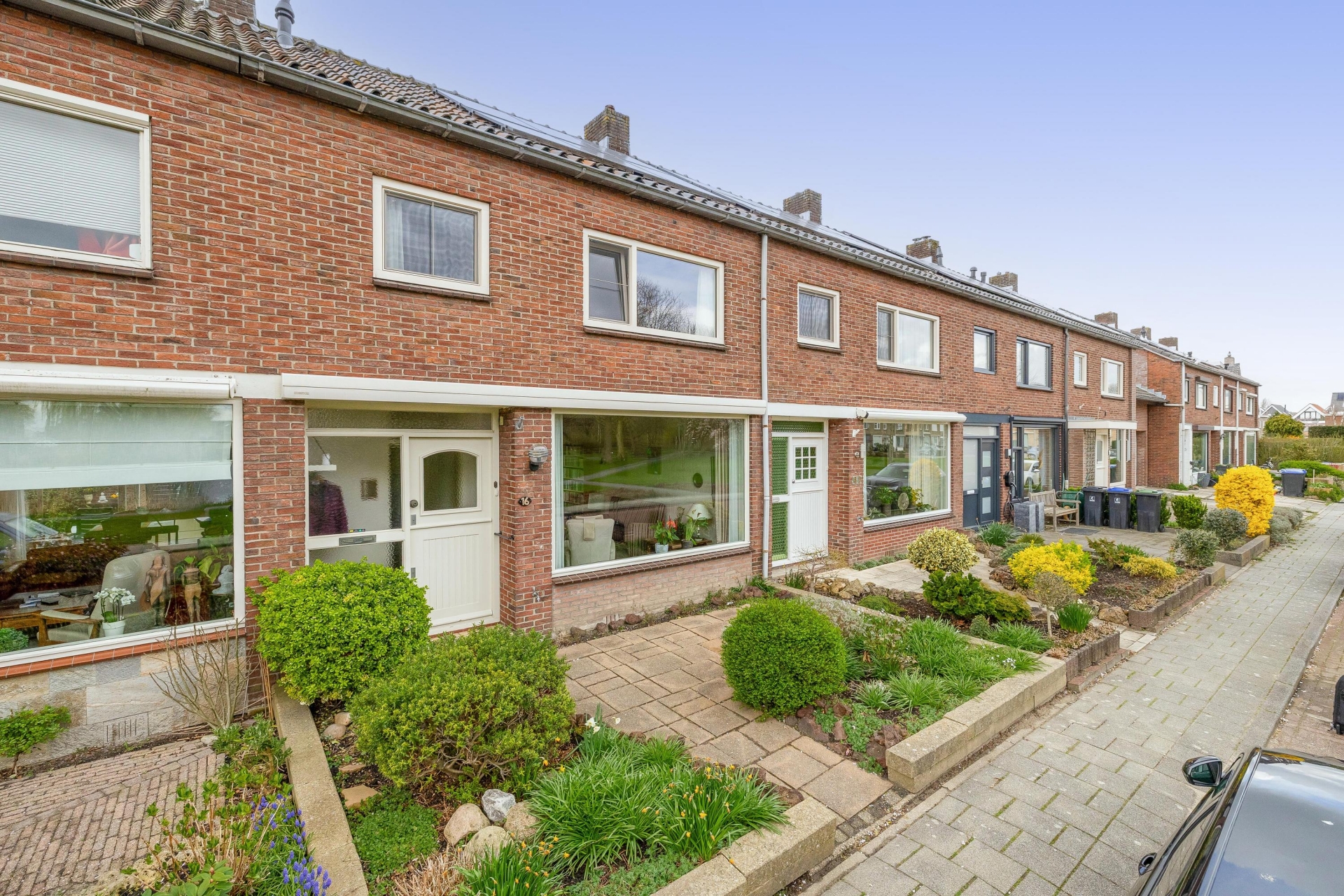 De straat zelf is netjes en verzorgd, met voornamelijk vergelijkbare eengezinswoningen. Parkeren kan in de directe omgeving en de voortuinen zorgen voor een vriendelijk straatbeeld.