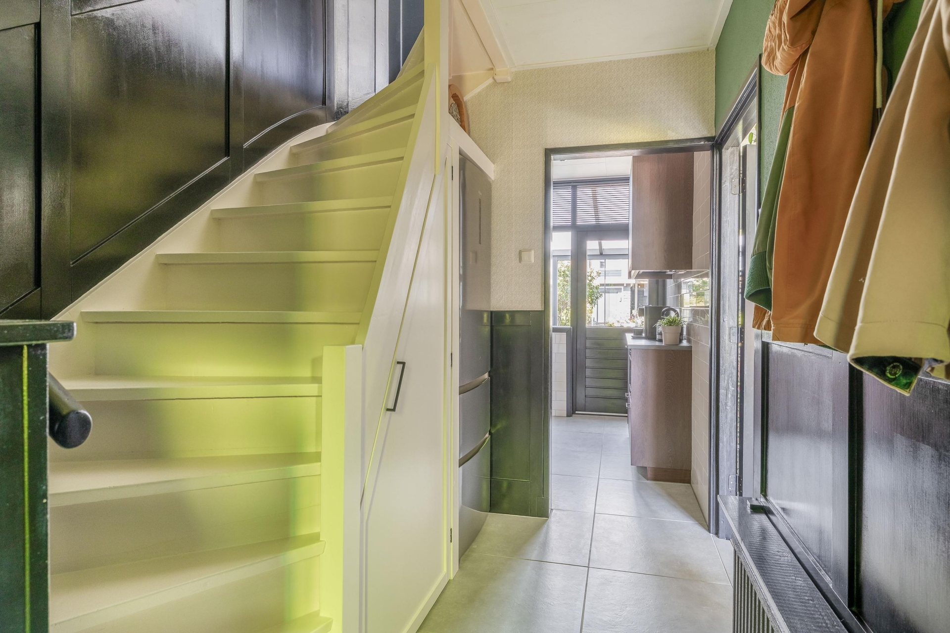 Via de entree kom je binnen in de hal met modern toilet, meterkast (vernieuwd in 2022) en trapopgang. Vanuit hier loop je door naar de woonkamer. Wat direct opvalt is de fijne lichtinval en de praktische indeling, waardoor je eenvoudig een gezellige zithoek en een aparte eethoek creëert.